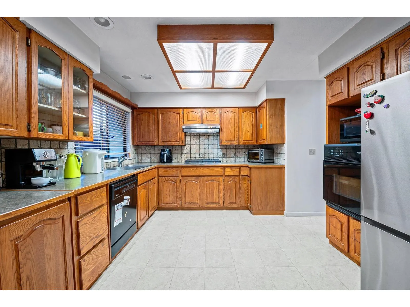 Beautifully maintained custom rancher situated on a 7,205 sqft lot, a private, quiet no-thru street in a highly desirable neighbourhood-just minutes from Highway 1 and Guildford Town Centre. This charming home offers an inviting open-concept layout with a spacious oak kitchen and eating area that flows seamlessly into the bright living room and fully finished sunroom, creating the perfect setting for family living and entertaining. Recent updates (2021-2023) include a new range hood, cooktop, fridge, and hot water tank and 7 yrs skylights. The south-facing backyard offers a gazebo, planter area for gardening enthusiasts, plus a storage shed and detached workshop-ideal for hobbies or additional storage. The extra-wide concrete driveway provides ample parking and perfect for your RV or boat. (id:27476)