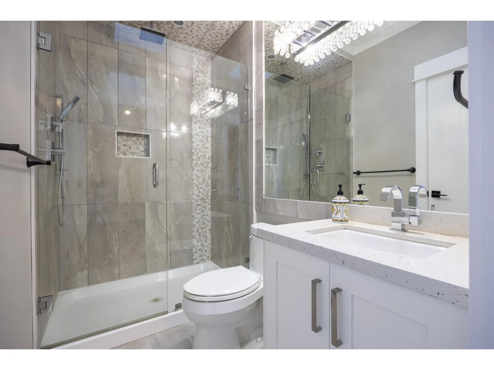 Beautiful contemporary home in South Surrey that blends luxory, functionality, and flexibility. Main floor features large family room and living room withvaulted ceilings. Both a wok kitchen and open-style kitchen are available to suit your culinary needs. Stairway leads to a generous landing on the secondfloor, featuring 4 bedrooms each with ensuite. Dens on both floors allowing dedicated space for work in comfort. Also contains a fully featured ground level10ft ceiling 2-bedroom suite with separate entrance. Jessie Lee Elementary school & Earl Marriott Secondary school catchment. Walking distance to theshopping mall, close to all the amenities. Part of the Semiahmoo towncentre OCP, development potential designated as townhouse residential. (id:27476)