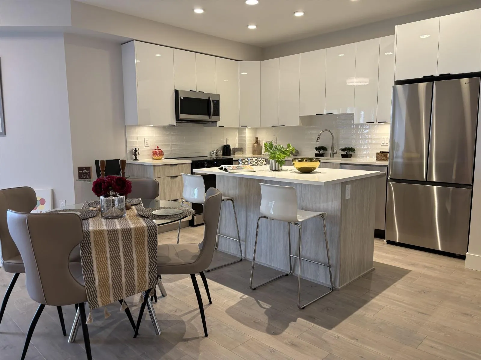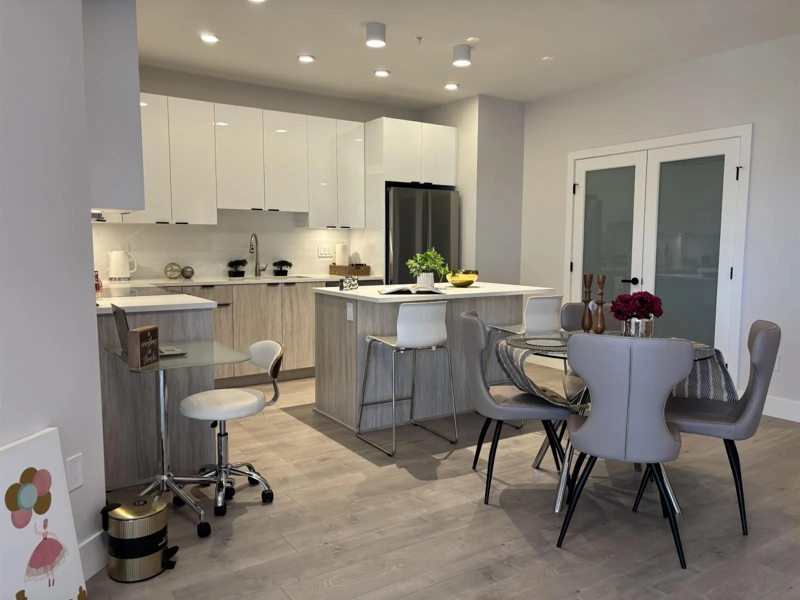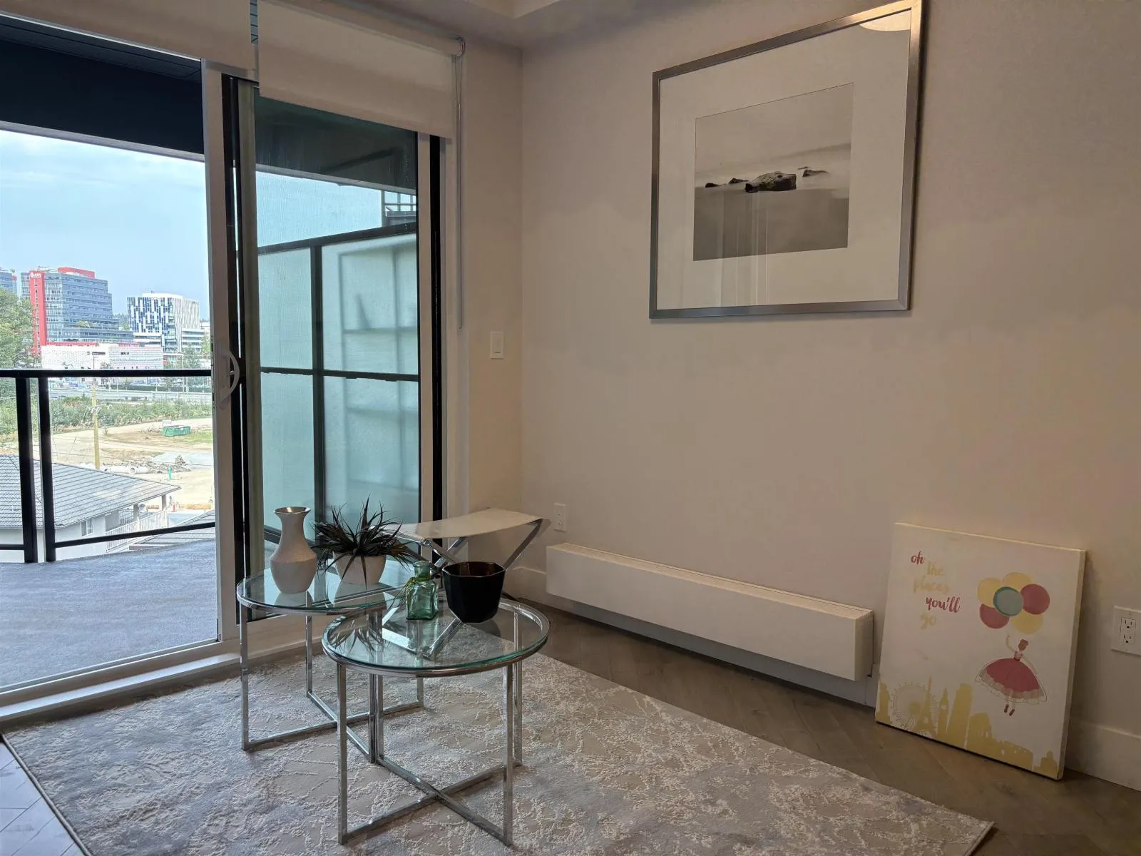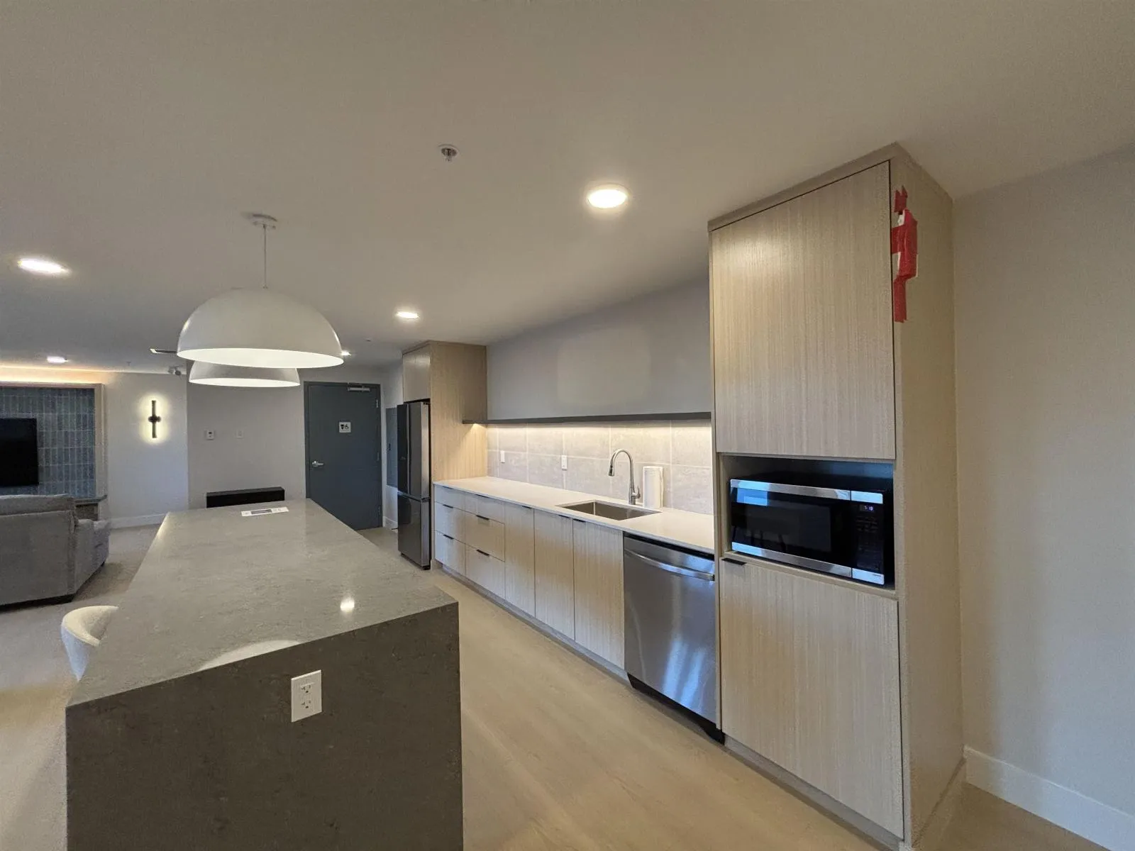 Galilea! HIGH Floor level MOVE in READY 02 BED unit 650 plus sq ft. Facing courtyard LARGE Balcony WALK TO SKYTRAIN. Designed with distinctive style, offers an exemplary collection of residencies. Located just South of Surrey Central, Galilea is minutes away from the city's shopping, entertainment, universities, and parks. A quiet residential neighborhood with central city vibes is right outside your door giving you the best of both worlds in this dynamic community. Impressive Kitchen with quartz stone countertops, crisp backsplashes, polished chrome fixtures, and stainless steel appliances coming together to create a stylish 9 foot ceilings, extra wide windows, as well as modern and textured laminate throughout. (id:27476)
