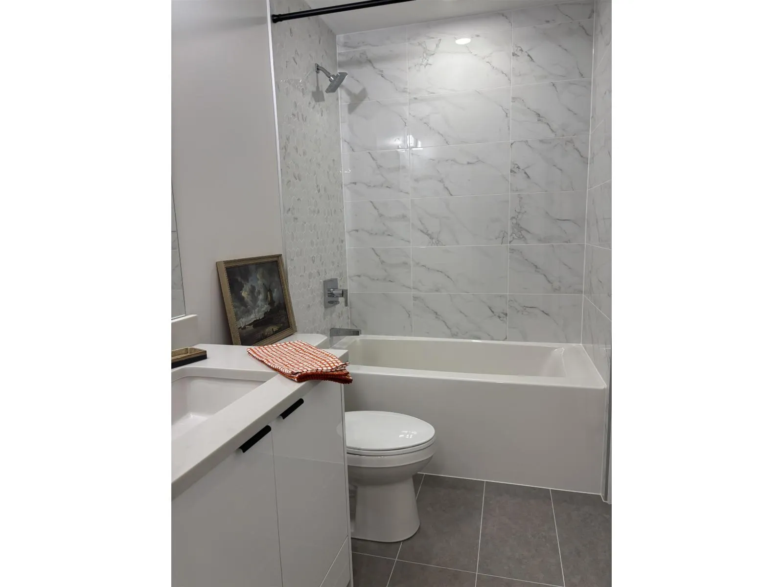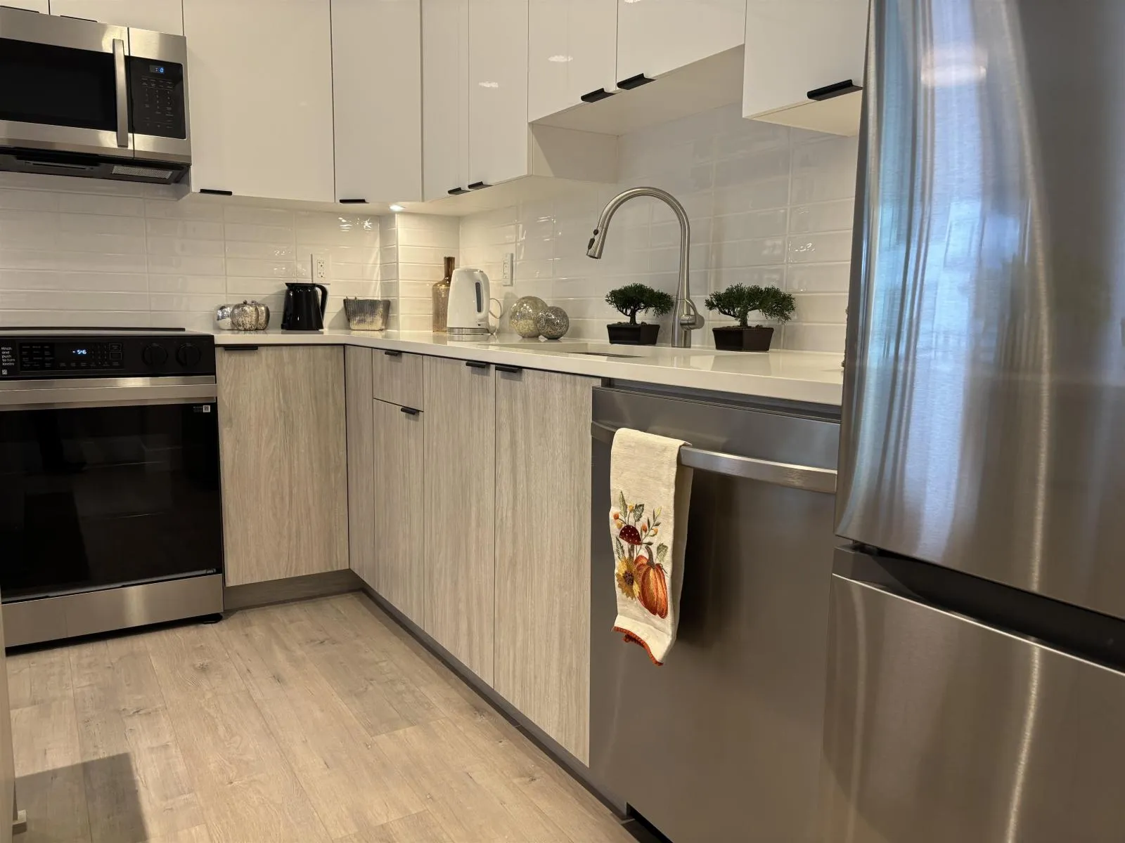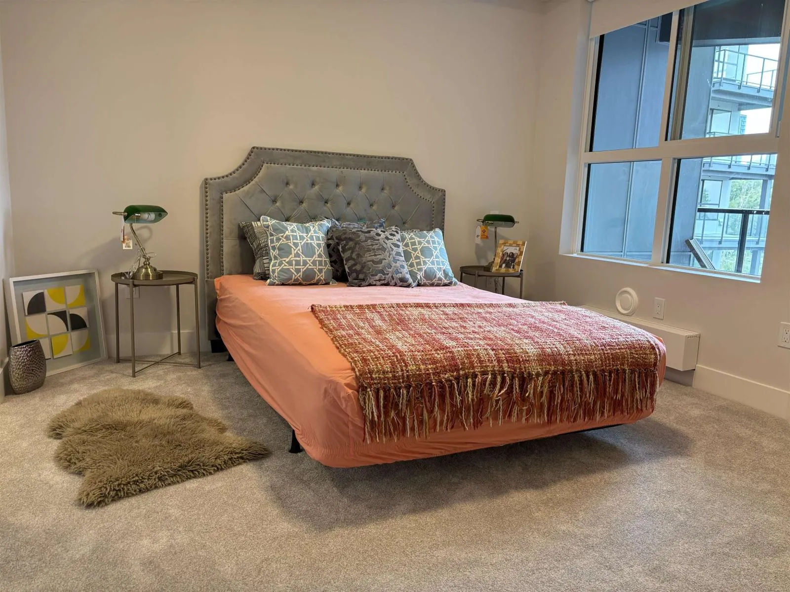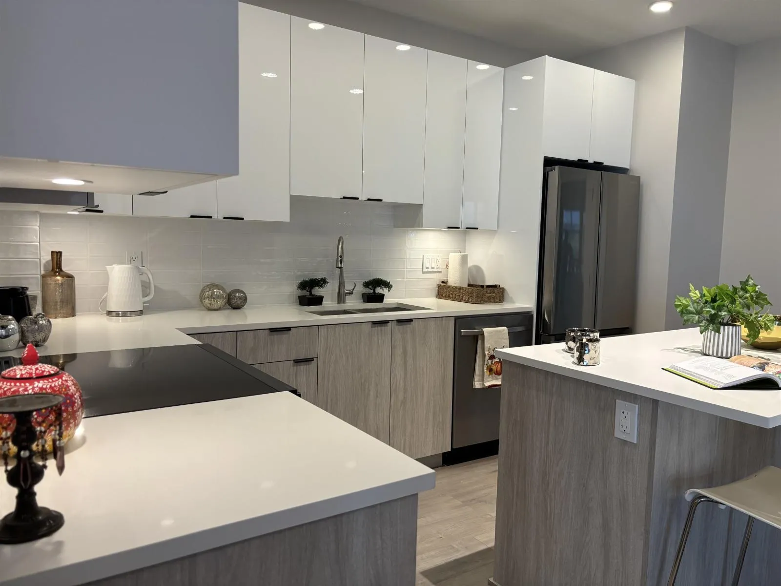 Galilea! HIGH Floor level MOVE in READY 02 BED unit 650 plus sq ft. Facing courtyard LARGE Balcony WALK TO SKYTRAIN. Designed with distinctive style, offers an exemplary collection of residencies. Located just South of Surrey Central, Galilea is minutes away from the city's shopping, entertainment, universities, and parks. A quiet residential neighborhood with central city vibes is right outside your door giving you the best of both worlds in this dynamic community. Impressive Kitchen with quartz stone countertops, crisp backsplashes, polished chrome fixtures, and stainless steel appliances coming together to create a stylish 9 foot ceilings, extra wide windows, as well as modern and textured laminate throughout. (id:27476)