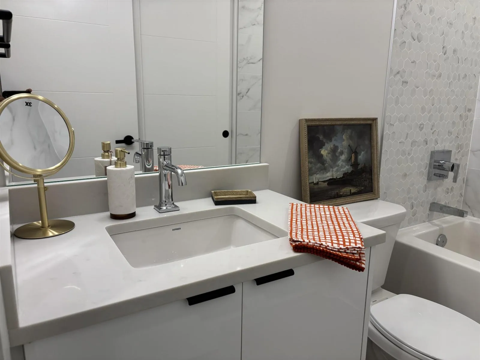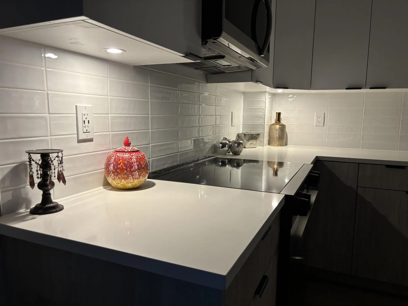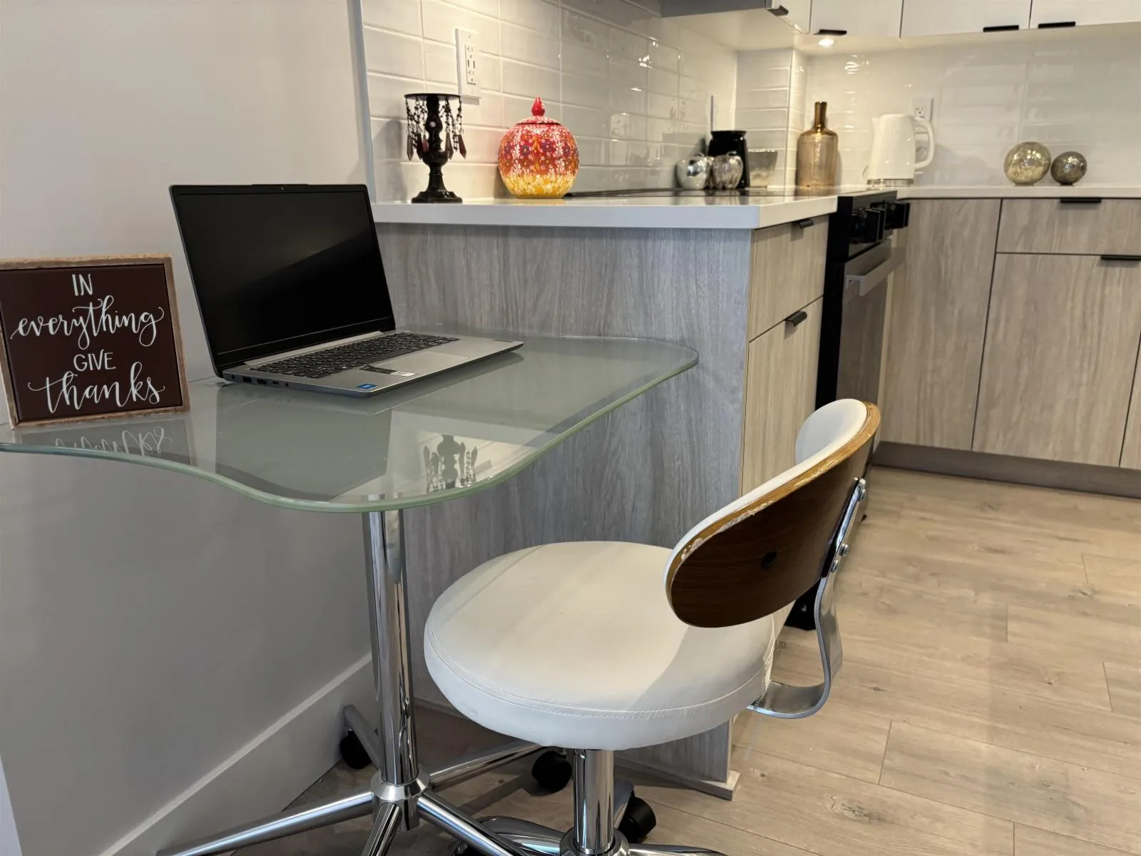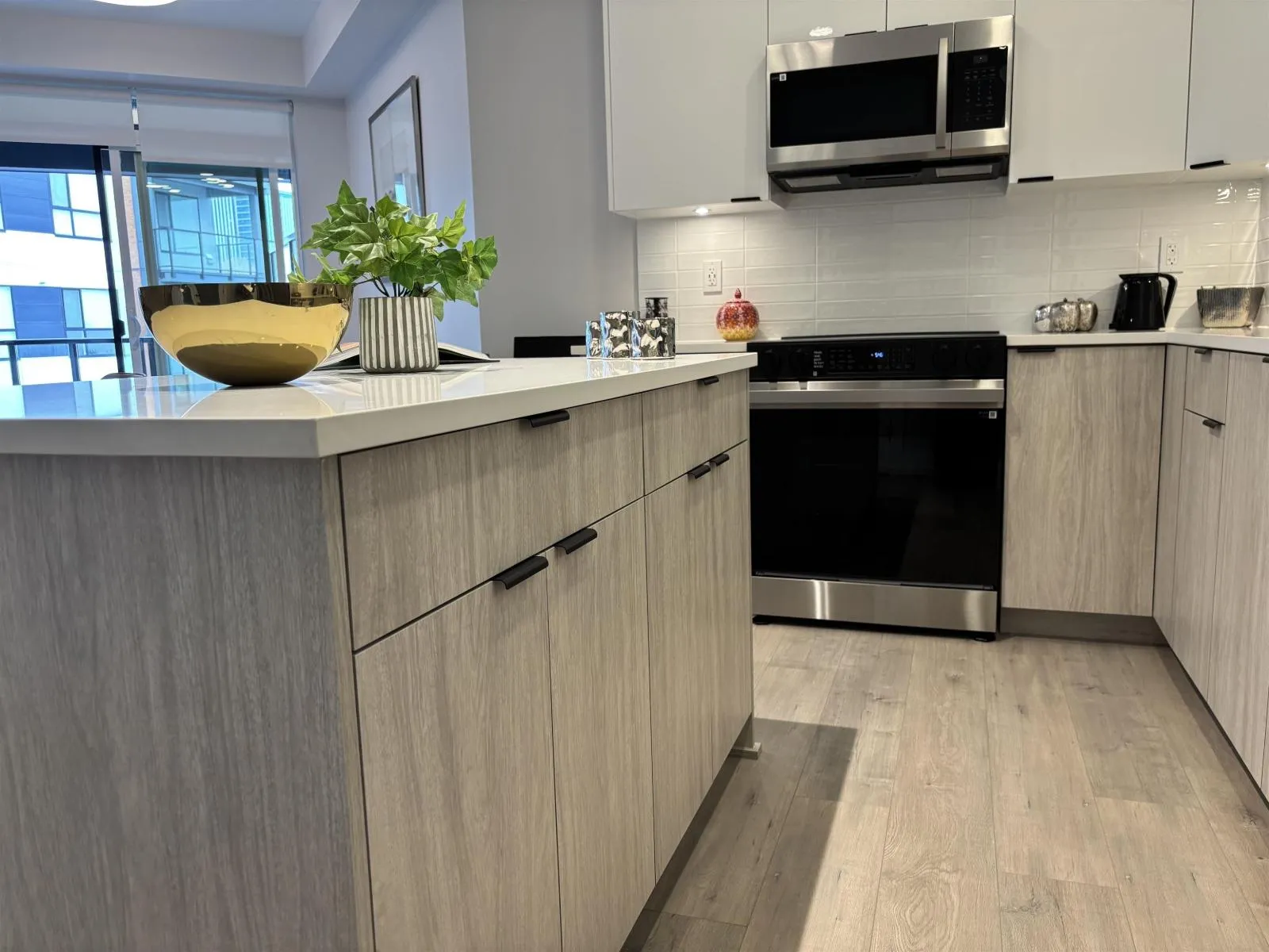 Galilea! HIGH Floor level MOVE in READY 02 BED unit 650 plus sq ft. Facing courtyard LARGE Balcony WALK TO SKYTRAIN. Designed with distinctive style, offers an exemplary collection of residencies. Located just South of Surrey Central, Galilea is minutes away from the city's shopping, entertainment, universities, and parks. A quiet residential neighborhood with central city vibes is right outside your door giving you the best of both worlds in this dynamic community. Impressive Kitchen with quartz stone countertops, crisp backsplashes, polished chrome fixtures, and stainless steel appliances coming together to create a stylish 9 foot ceilings, extra wide windows, as well as modern and textured laminate throughout. (id:27476)
