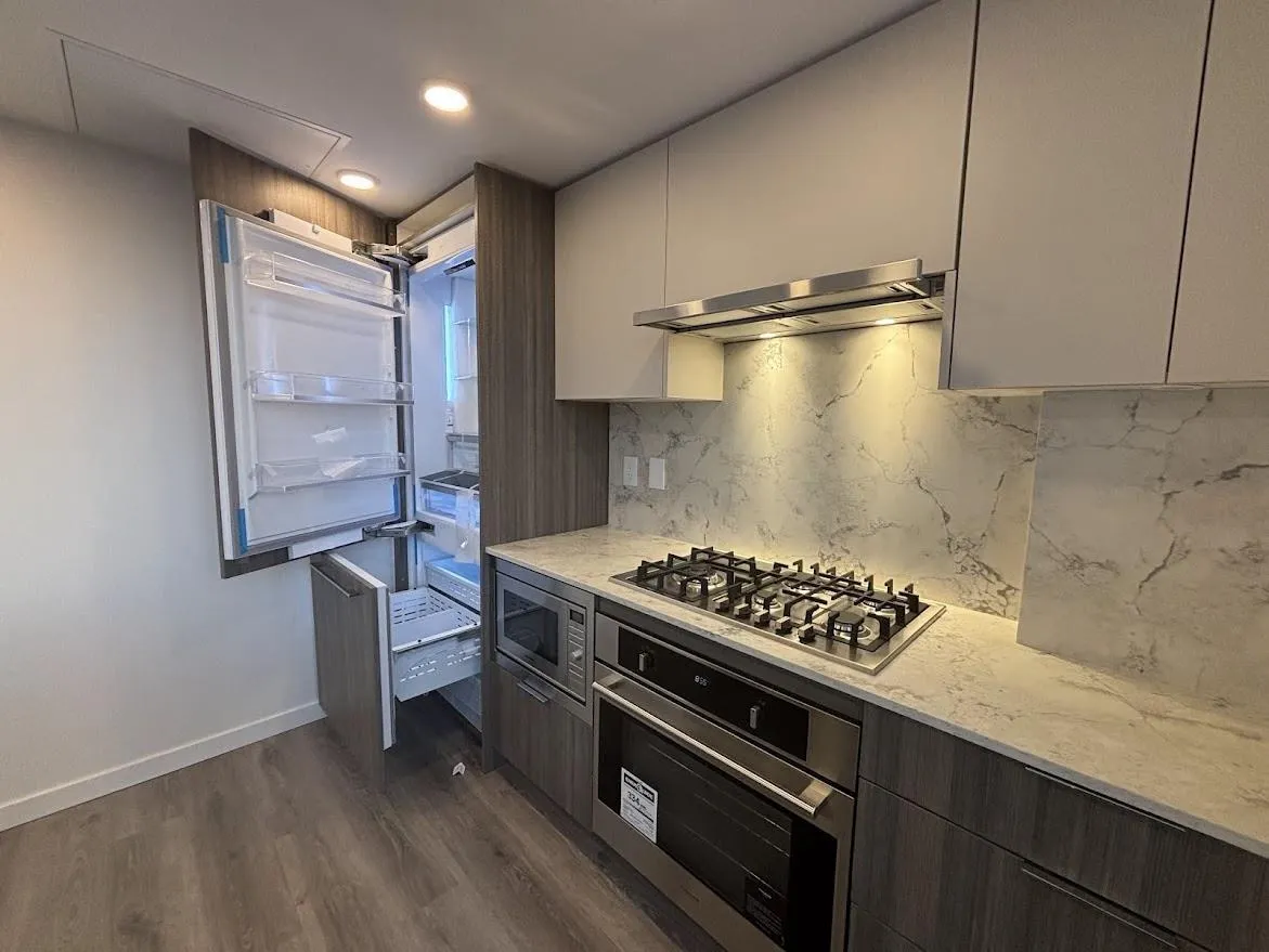 Requires: One-year lease minimum. Tenant insurance and credit checks are required. Tenants pay utilities and move in/out fee if required by the strata. Details: Welcome to your new home at the Melrose complex! Features high 9' ceiling, sleek two-toned cabinetry, premium Italian Fulgor-Milano appliances with gas cooktop and spa bathroom. Ideally located in the West Village, Melrose is a 5 min walk to Surrey Central SkyTrain, delectable dining, parks and more! Amenities include rooftop lounge, fully equipped kitchen with BBQ/outdoor pits, games room, children's play area, private co-work space and fitness facility complete with infrared sauna rooms, gym, yoga studio, spin room, outdoor tai chi studio. Please contact Teng Li 778-883-6886 with your full name, move in date and brief (id:27476)
