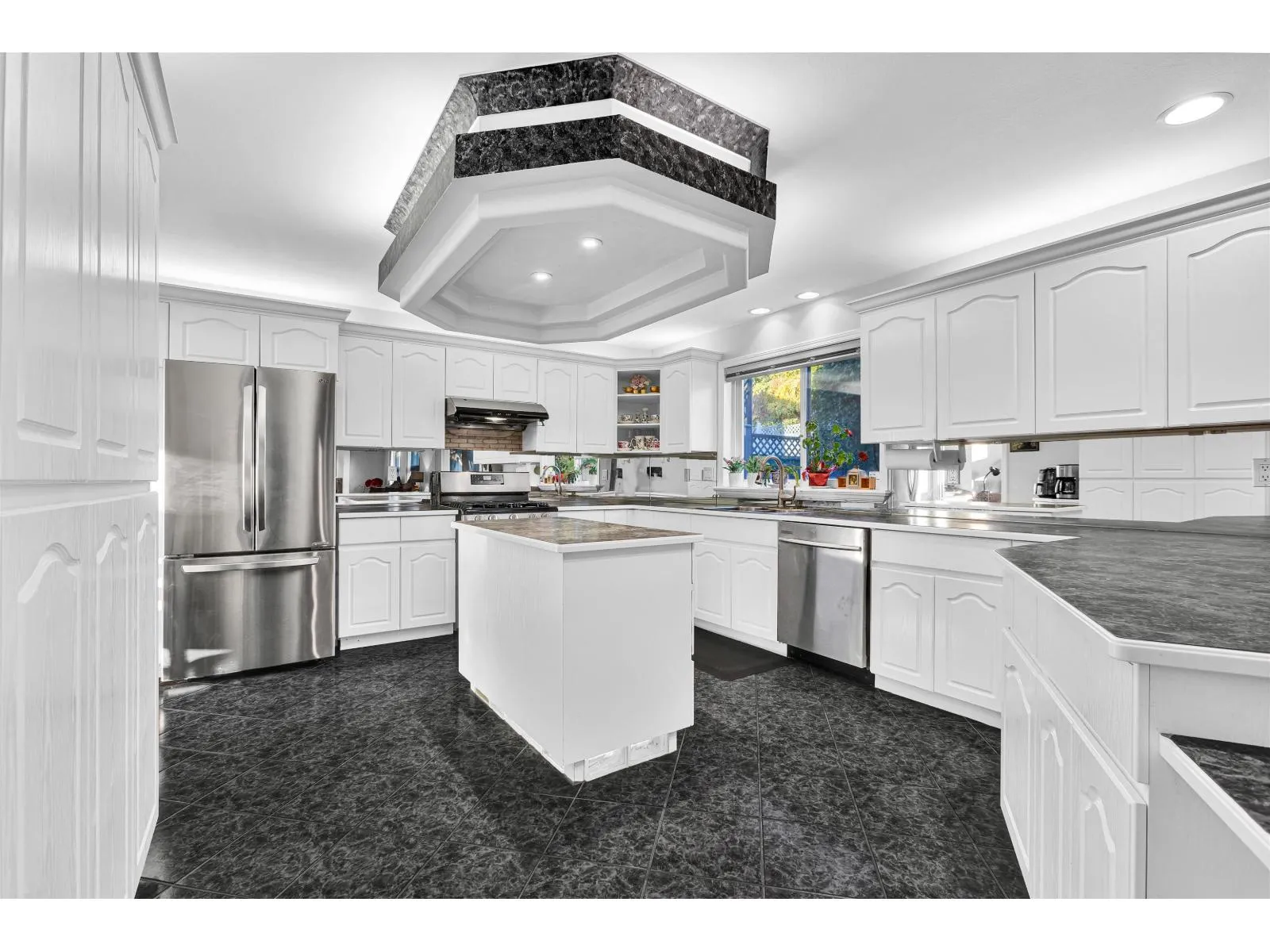 Welcome to this stunning 3-level, Over 4000 sqft home in the heart of the sought-after Fleetwood Secondary neighborhood. This elegant residence features an open foyer, spacious living and dining rooms, and a gourmet kitchen with white cabinetry, gas stove, and stainless steel appliances. Enjoy a cozy family room with two fireplaces and a convenient main-floor bedroom. Upstairs offers a luxurious primary suite with a 5-piece whirlpool bath, two additional bedrooms, two baths, and a bright sunroom. The finished basement includes a 2-bedroom suite with separate entry-ideal as a mortgage helper. Situated on a beautifully landscaped 12,614 sqft lot, perfect for outdoor gatherings and family fun. (id:27476)