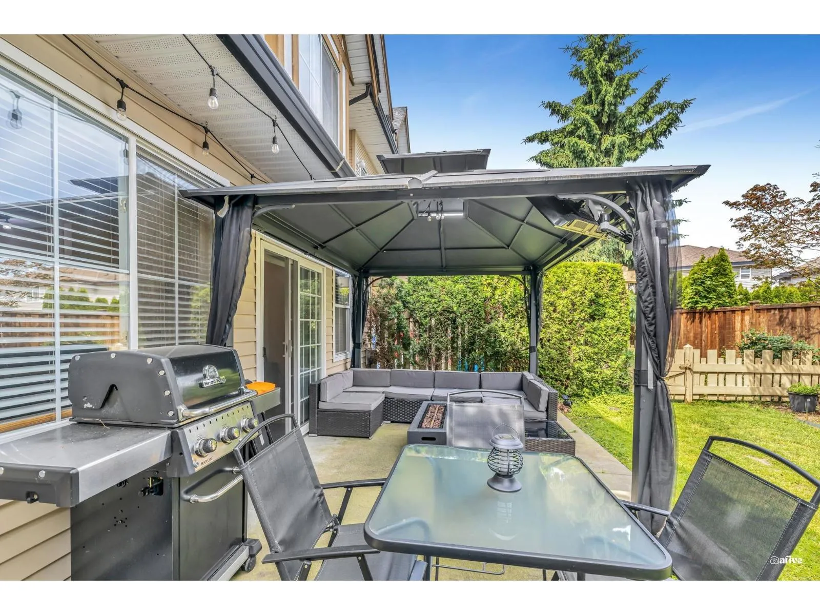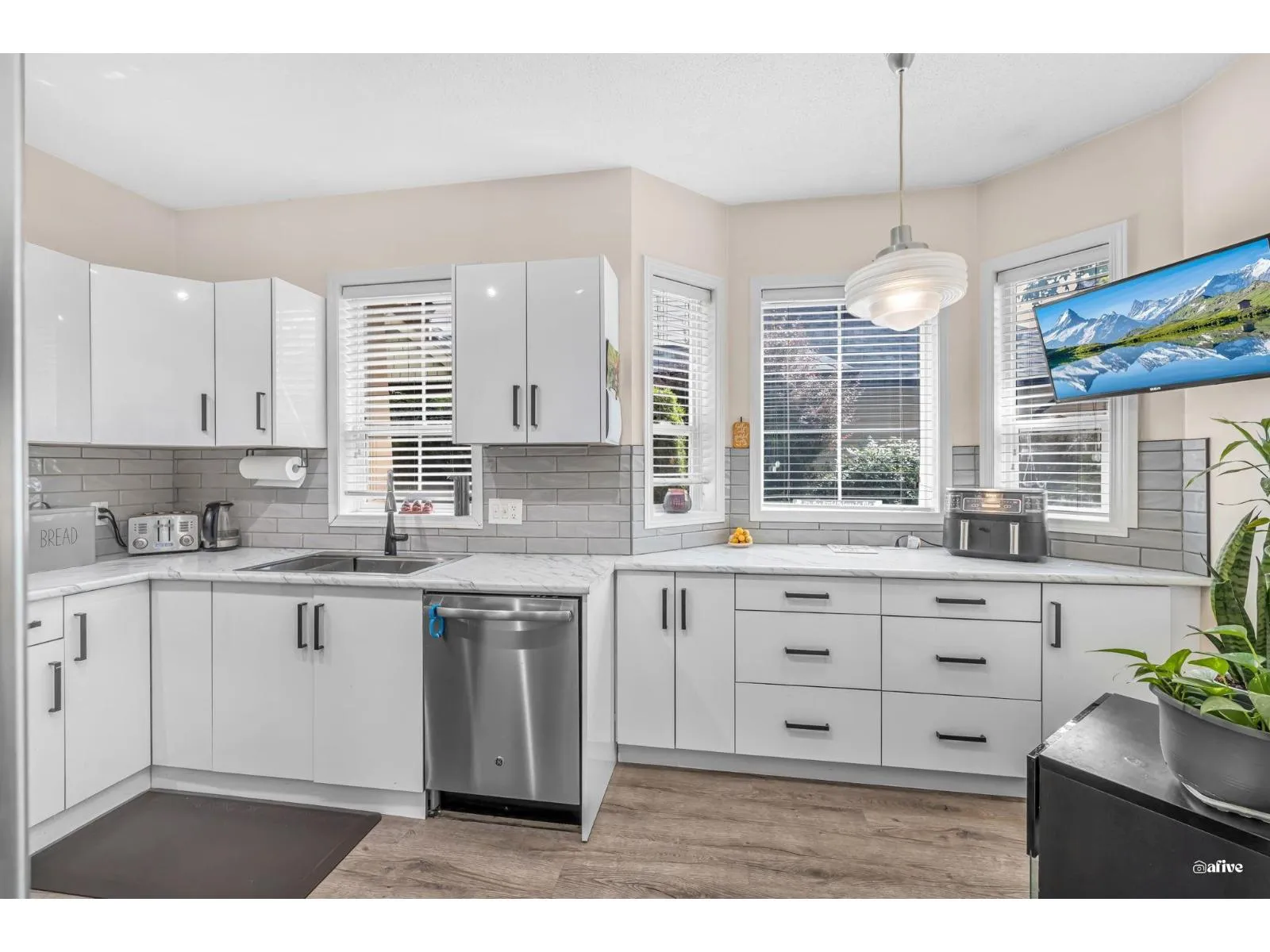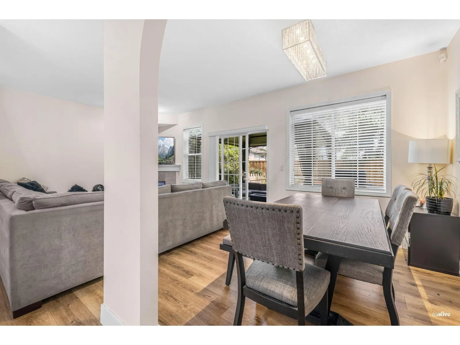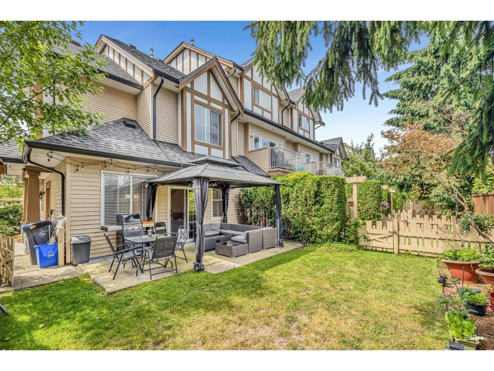 LEGENDS! Warm & Inviting End Unit Townhome! This 2 storey corner unit features a double side by side garage and a private fenced backyard perfect for family living. Step inside to a bright open layout with large windows, updated kitchen, new blinds and easy garage access. The cozy living and dining areas open to a spacious patio and yard ideal for relaxing or entertaining. Upstairs offers 3 comfortable bedrooms including a generous primary with walk in closet and spa inspired 5 piece ensuite. Updated baths, new flooring, carpet, paint, hot water tank and roof. Affordable strata fees and close to schools, shopping and the new SkyTrain. (id:27476)