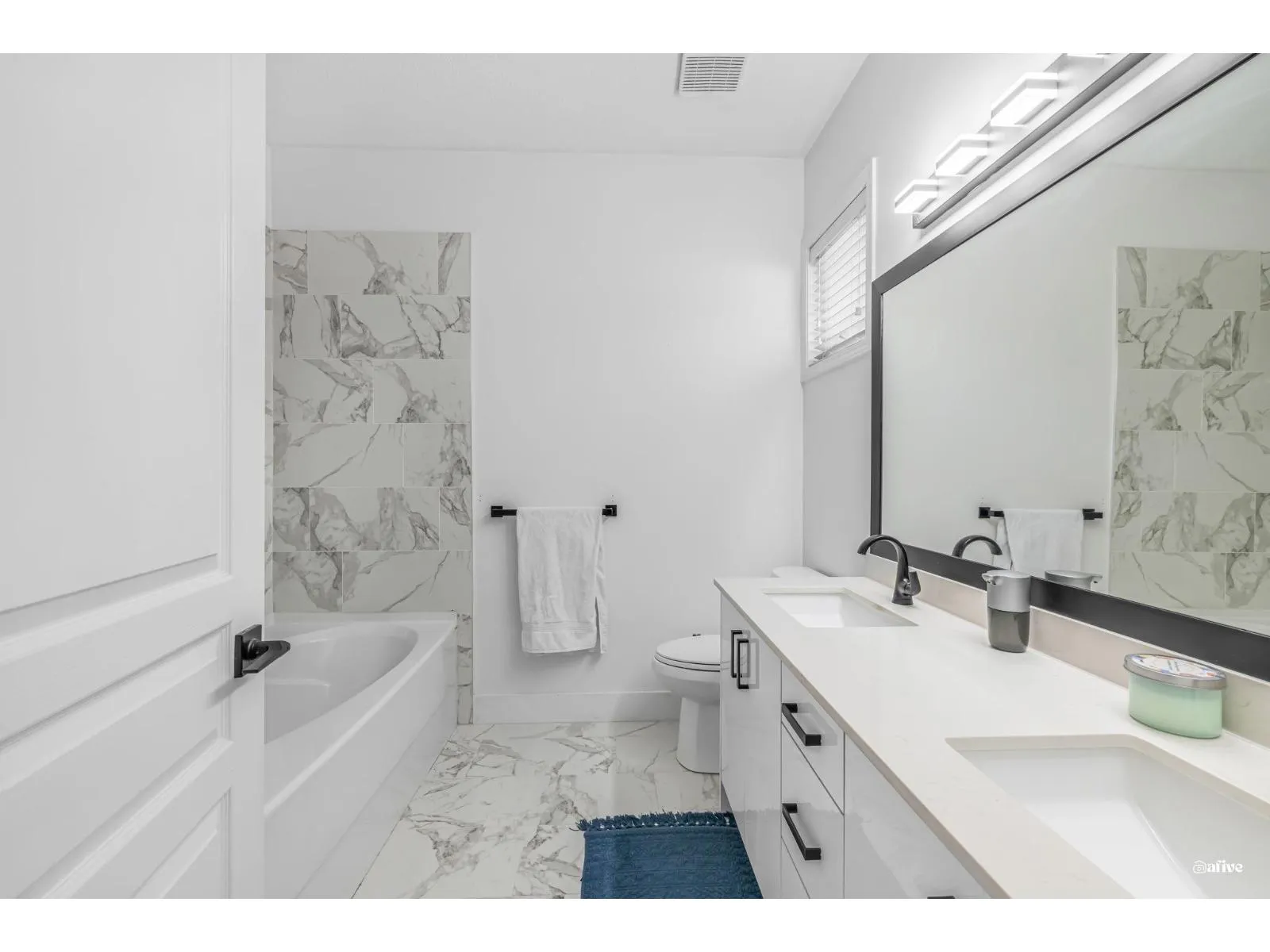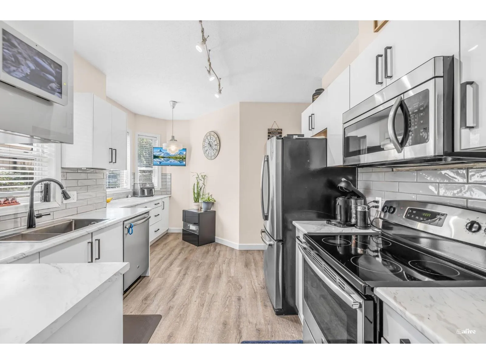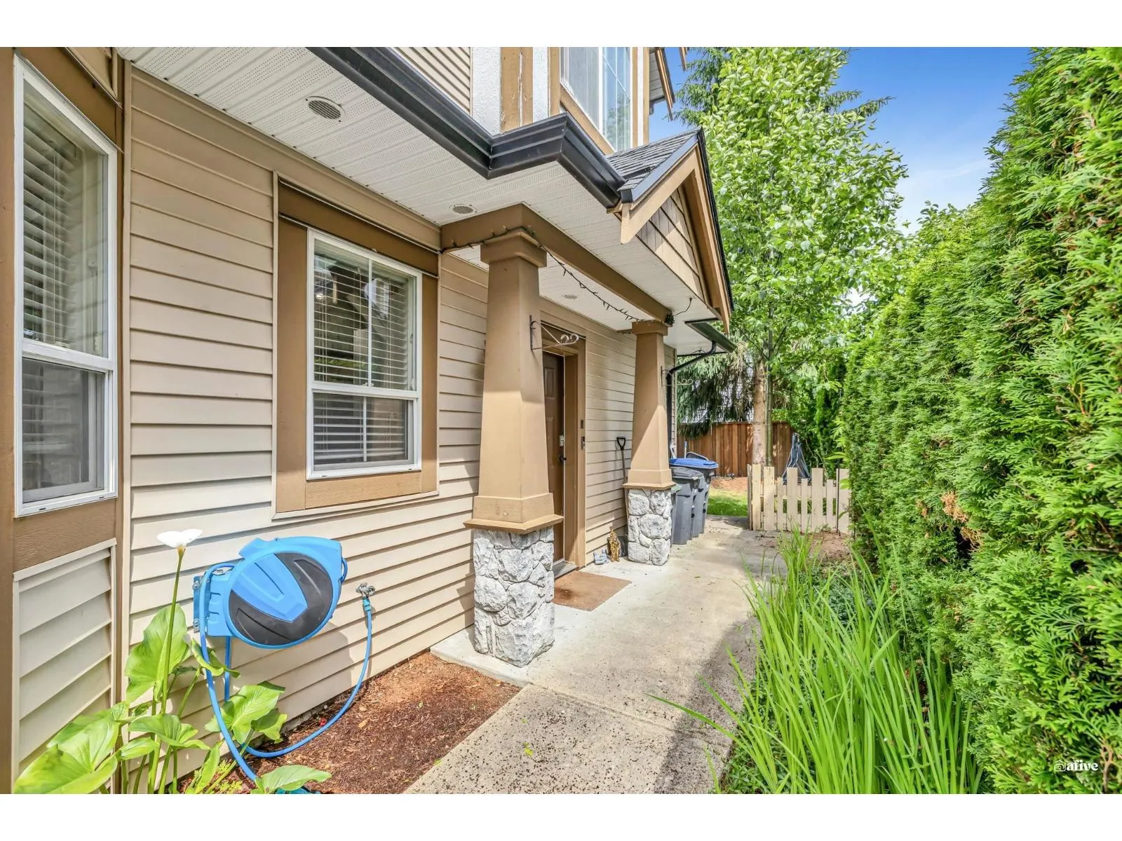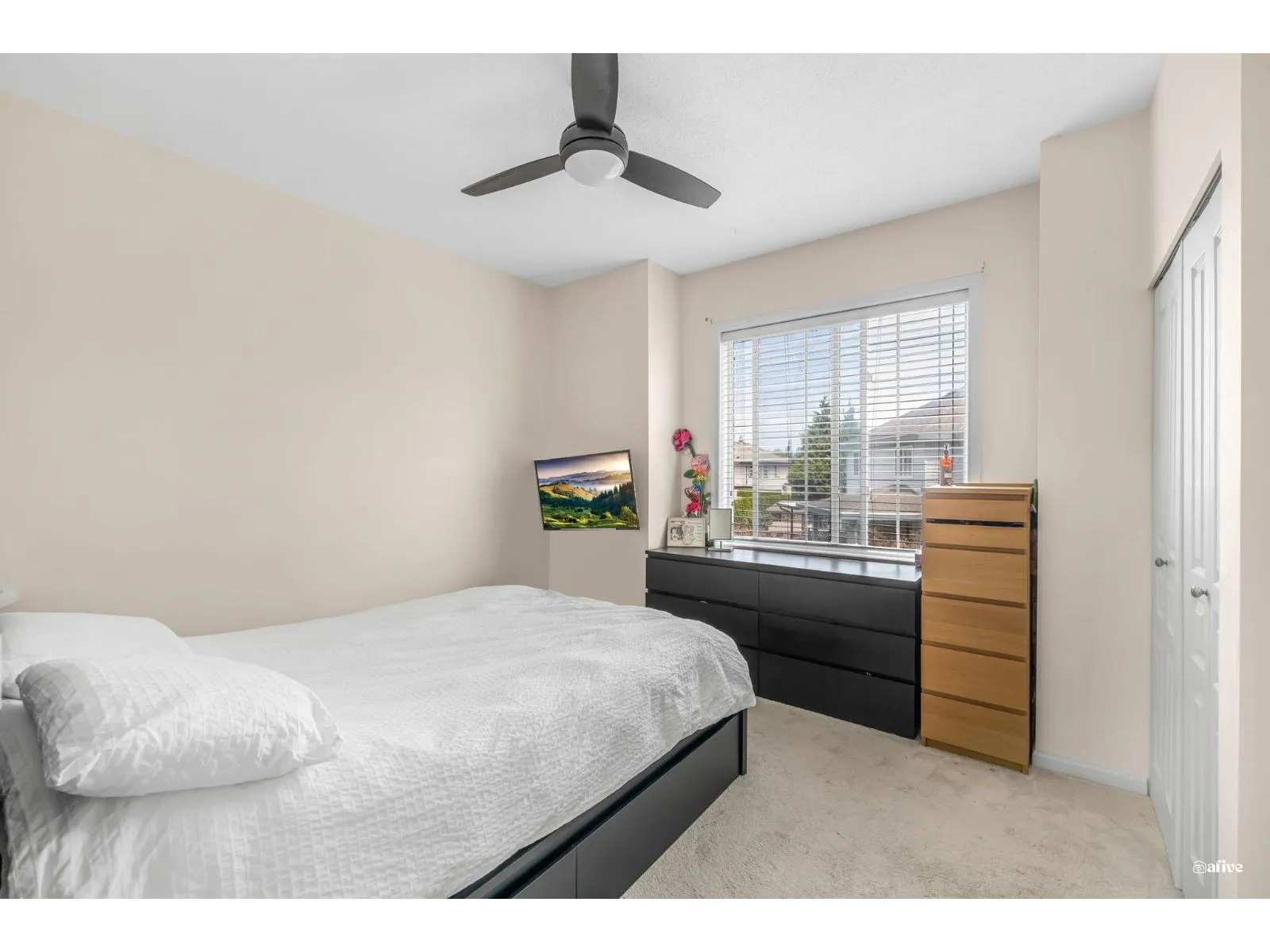 LEGENDS! Warm & Inviting End Unit Townhome! This 2 storey corner unit features a double side by side garage and a private fenced backyard perfect for family living. Step inside to a bright open layout with large windows, updated kitchen, new blinds and easy garage access. The cozy living and dining areas open to a spacious patio and yard ideal for relaxing or entertaining. Upstairs offers 3 comfortable bedrooms including a generous primary with walk in closet and spa inspired 5 piece ensuite. Updated baths, new flooring, carpet, paint, hot water tank and roof. Affordable strata fees and close to schools, shopping and the new SkyTrain. (id:27476)