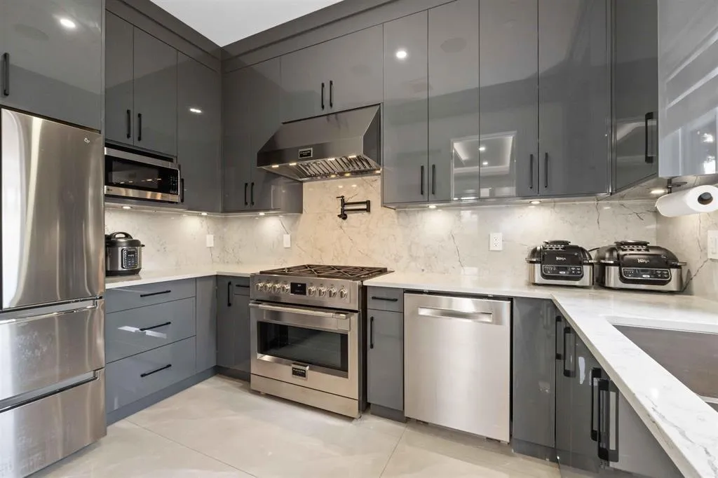 2- YEAR OLD Experience luxury living in this stunning 9 bed, 8 bath home with 2+1+1 suites. Featuring high-end finishes, top-of-the-line appliances, and designer fixtures throughout, this home offers unmatched quality and elegance. With 4 master bedrooms, each with its own ensuite, comfort and privacy are built in. Open concept great room at top floor. rare opportunity with significant mortgage helper potential. Ideally located near top schools, transit, shopping, and major highways. A true dream home and investment in one! (id:27476)
