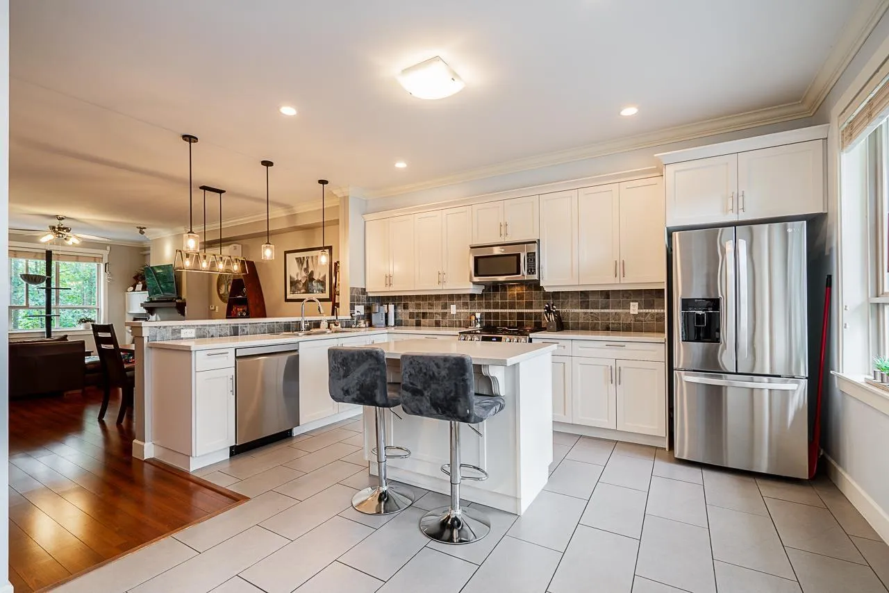 SPACIOUS BACK YARD BACKING A GREENBELT! This nearly 1,800sqft home tucked at the quiet back of the Solana complex offers an open-concept layout with a bright, inviting main level and a generous kitchen perfect for entertaining. Enjoy cozy evenings by the gas fireplace or step outside to your private 12x11 deck-ideal for barbecues and outdoor dining. Backing onto a peaceful greenbelt, this home also features a private yard for added tranquility. Three bedrooms and two full bathrooms upstairs, powder room on the main level and a lower level with a large, versatile bedroom that can double as a fantastic rec or games room. Oversized 400+sqft garage provides plenty of storage and parking space. And bonus: this one is air-conditioned! (id:27476)