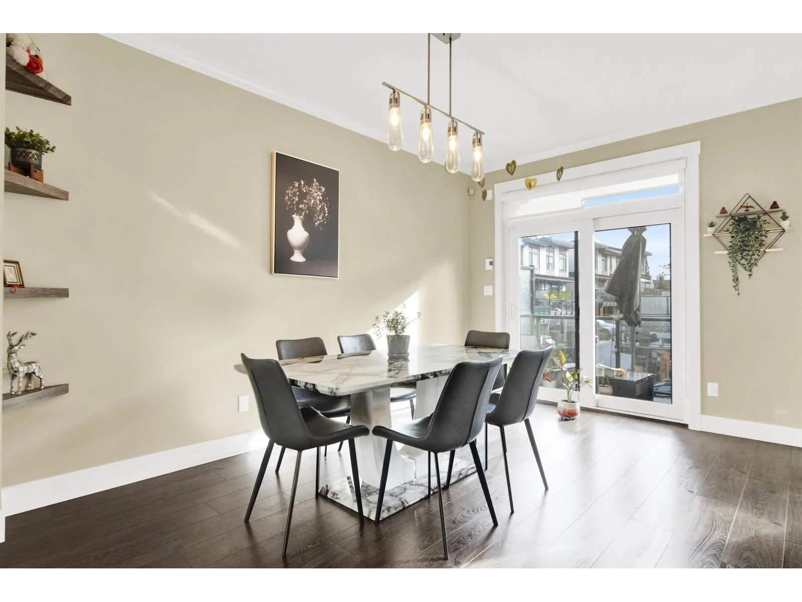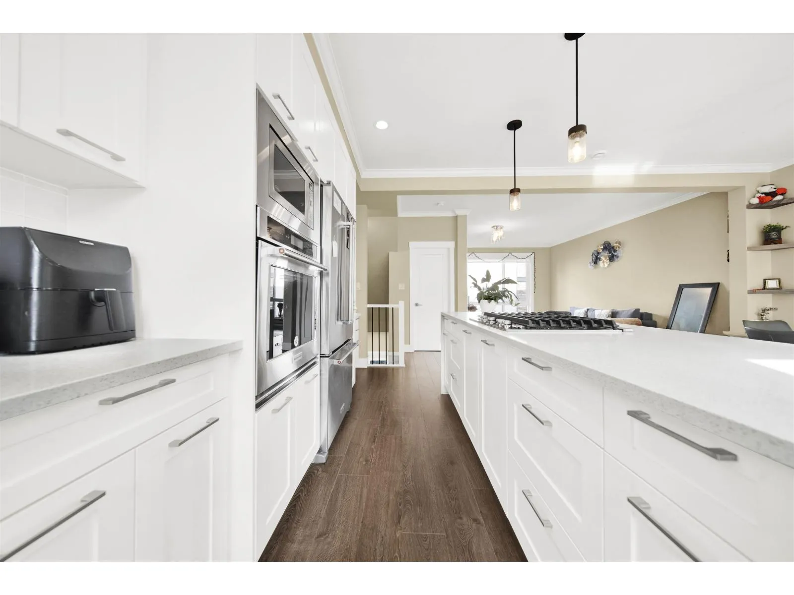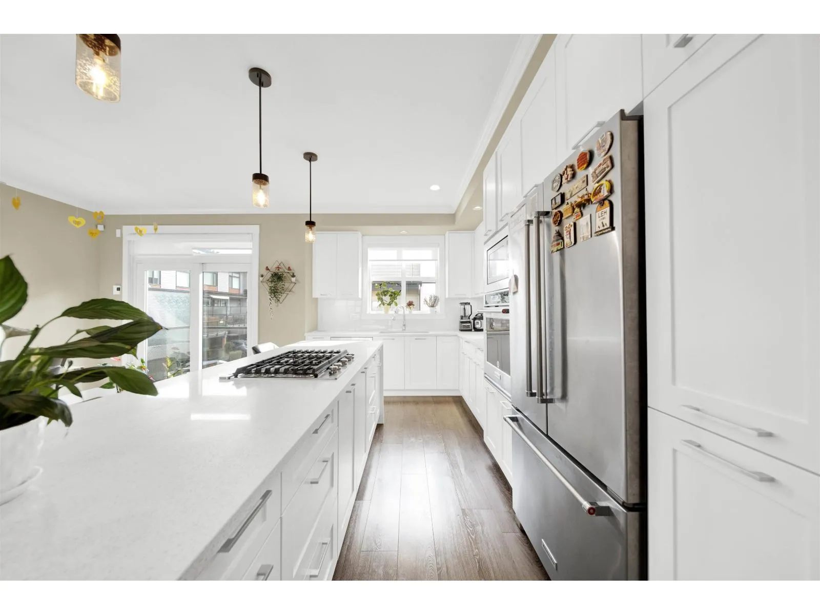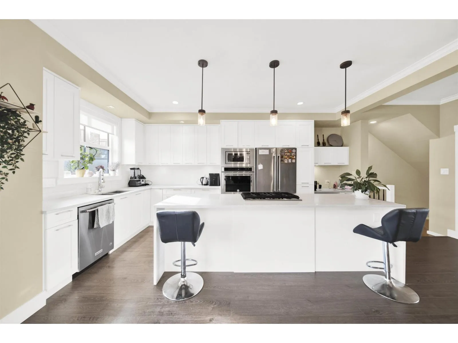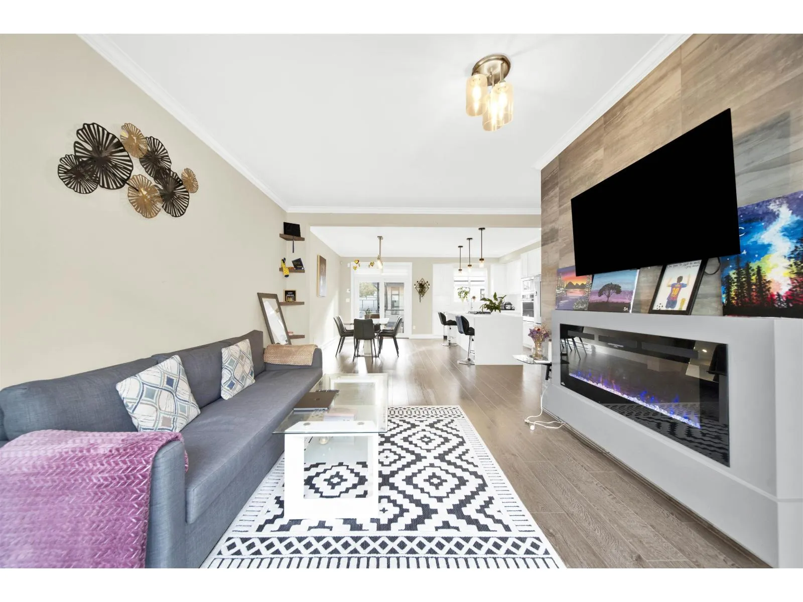 Stunning 3 Bed + Flex, 2.5 Bath townhouse by the award-winning Platinum Group. This modern home features an open-concept main floor with 9-ft ceilings, large windows for abundant natural light, and a gourmet kitchen with KitchenAid stainless steel appliances, oversized island with gas cooktop, and sleek finishes. Enjoy a cozy linear fireplace in the living room and a south-facing patio with a built-in gas BBQ hookup. Upstairs offers 3 spacious bedrooms including a primary suite with walk-in closet and double-sink ensuite. Side-by-side 2-car garage with ceiling storage and a versatile flex room perfect for an office, gym, or playroom. Additional features include under-stair storage, tankless hot water, central vacuum, smart thermostats, and upgraded LED lighting. Open House 25-26 Oct 2-4pm. (id:27476)