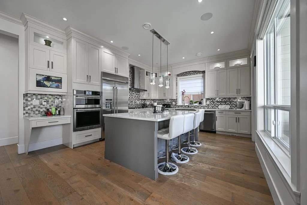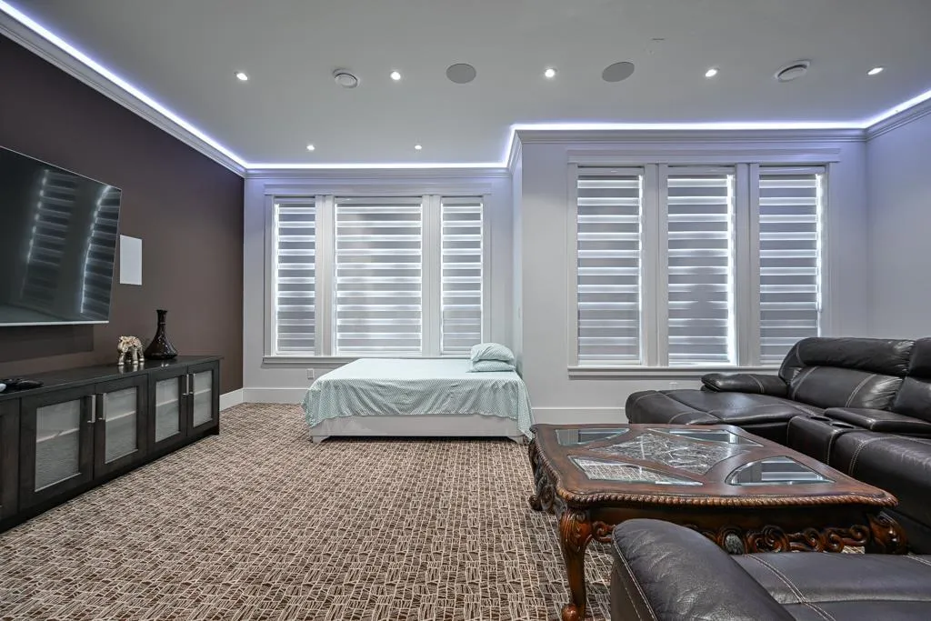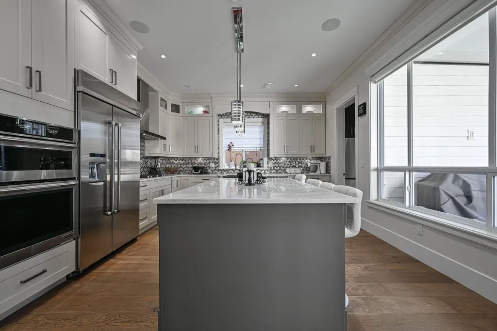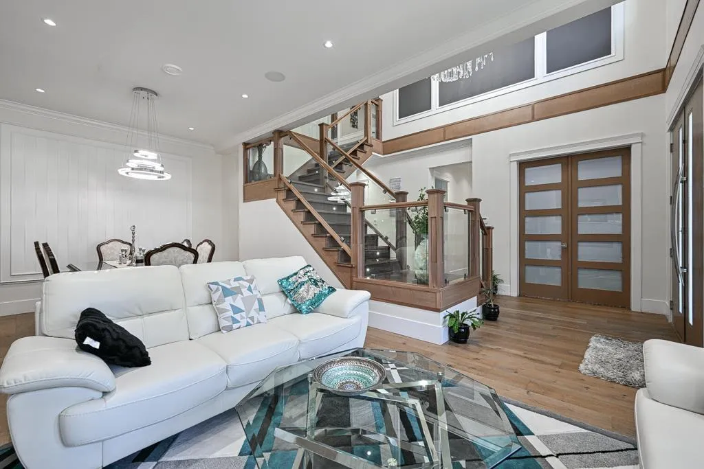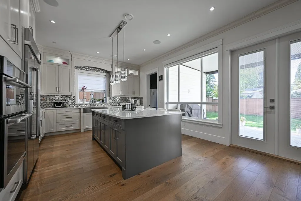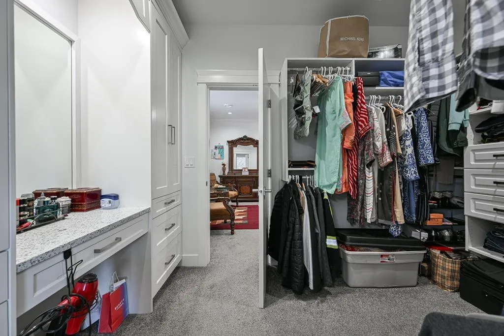 Exquisite custom-built mansion in South Surrey's King George Corridor featuring dual driveways and triple garage with drive-through access. Main floor offers living, dining, family room, gourmet kitchen with spice kitchen, theatre room, and large covered patio. Upstairs includes 7 spacious bedrooms all with walk-in closets and 6 bathrooms. Legal 2-bedroom suite is a great mortgage helper. Radiant heat, A/C, and high-end finishes throughout. Prime location close to top schools, shopping, and all amenities. (id:27476)