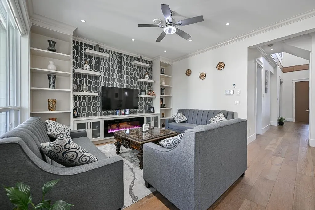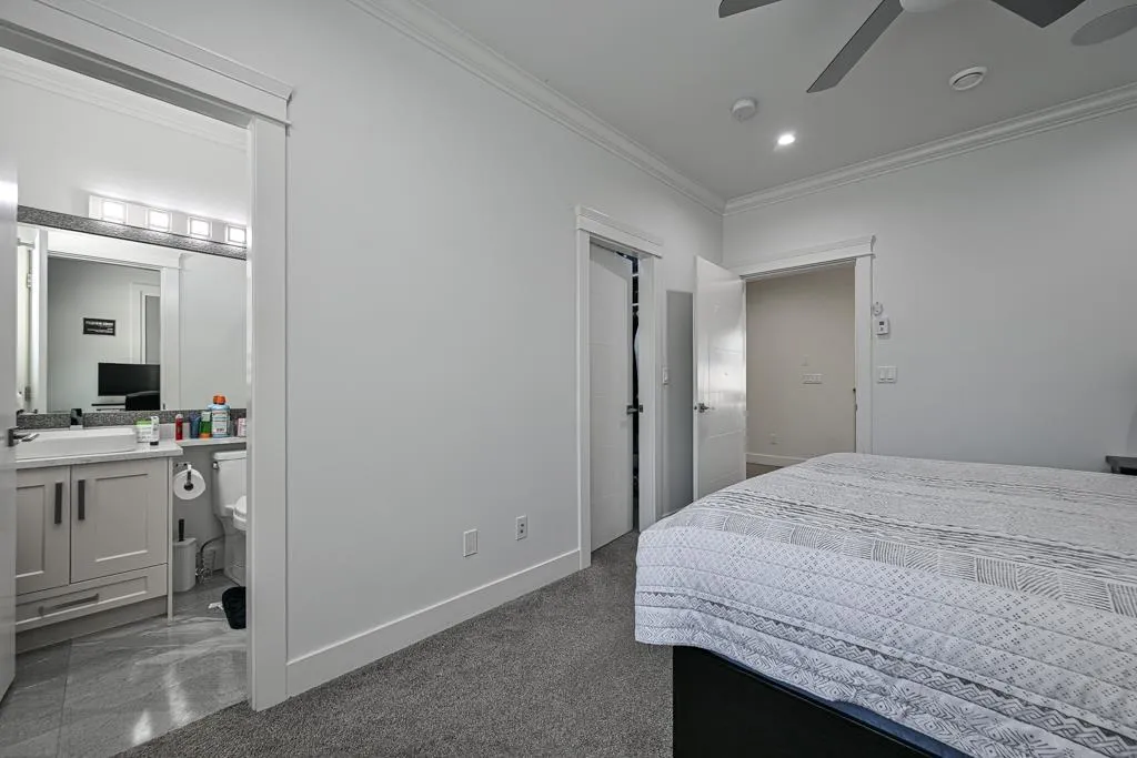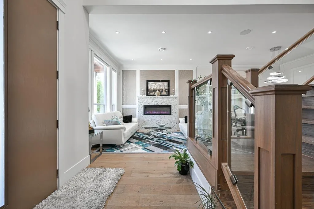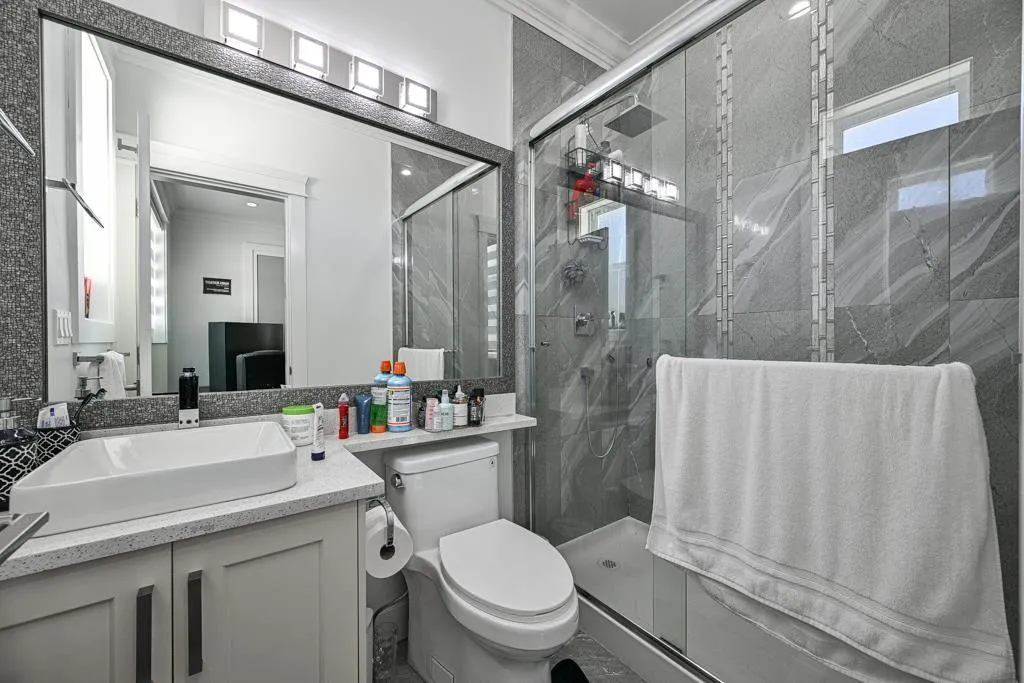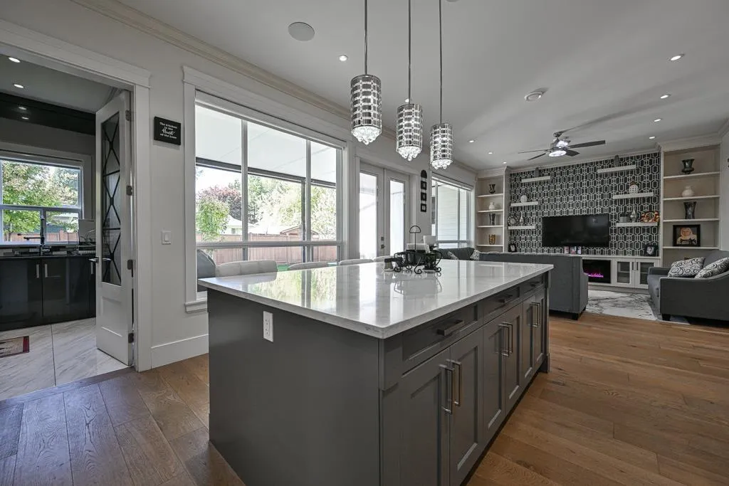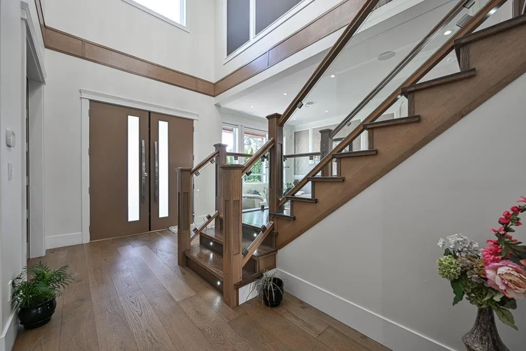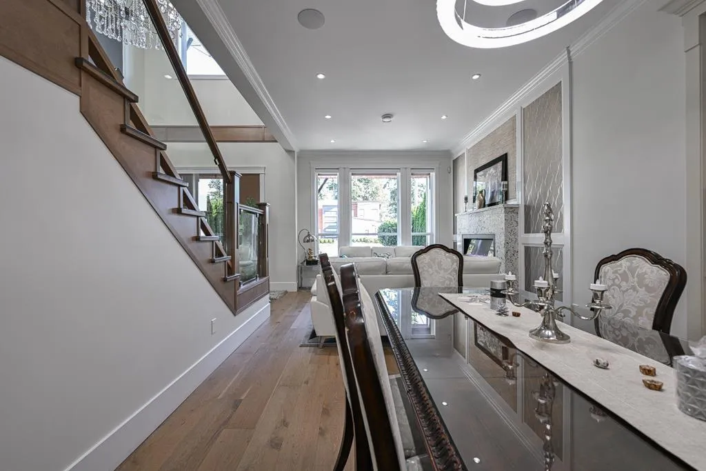 Exquisite custom-built mansion in South Surrey's King George Corridor featuring dual driveways and triple garage with drive-through access. Main floor offers living, dining, family room, gourmet kitchen with spice kitchen, theatre room, and large covered patio. Upstairs includes 7 spacious bedrooms all with walk-in closets and 6 bathrooms. Legal 2-bedroom suite is a great mortgage helper. Radiant heat, A/C, and high-end finishes throughout. Prime location close to top schools, shopping, and all amenities. (id:27476)