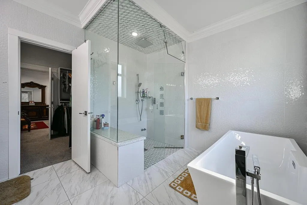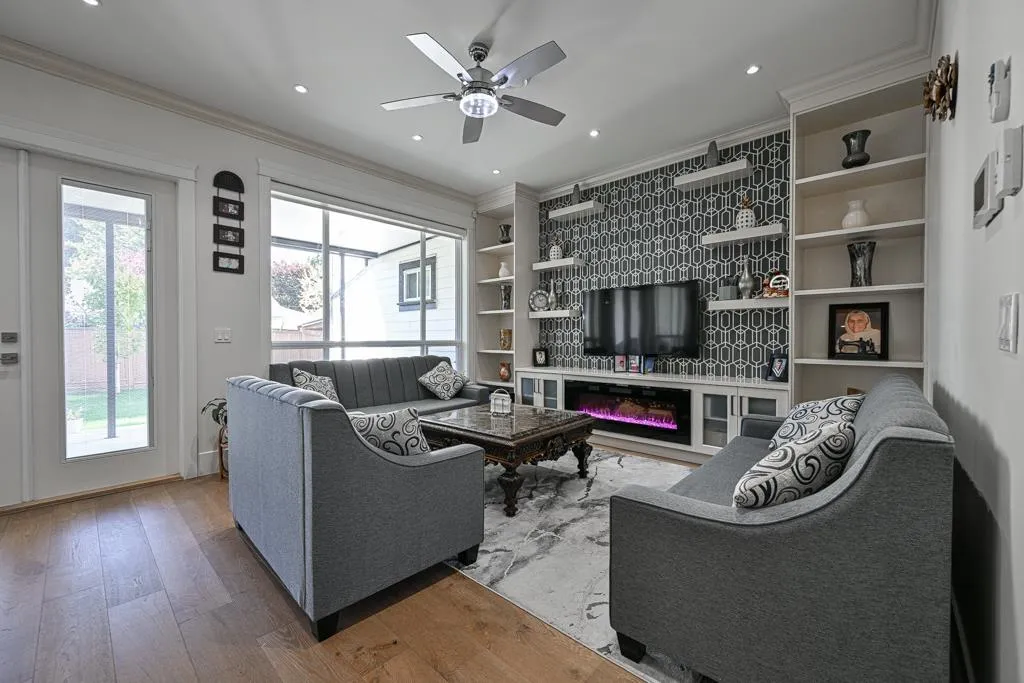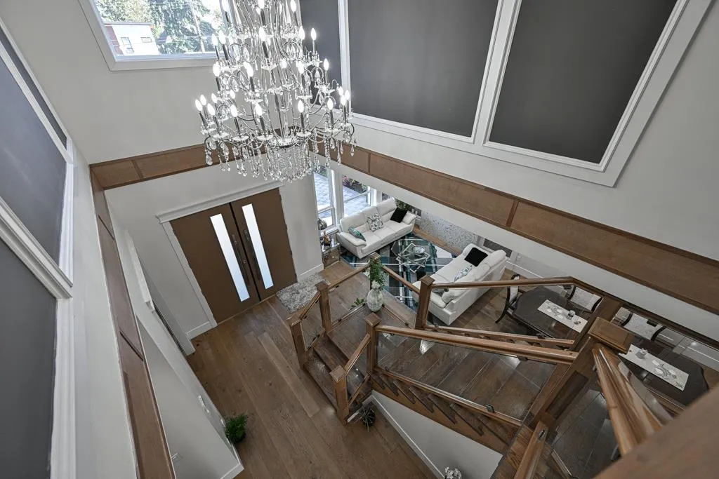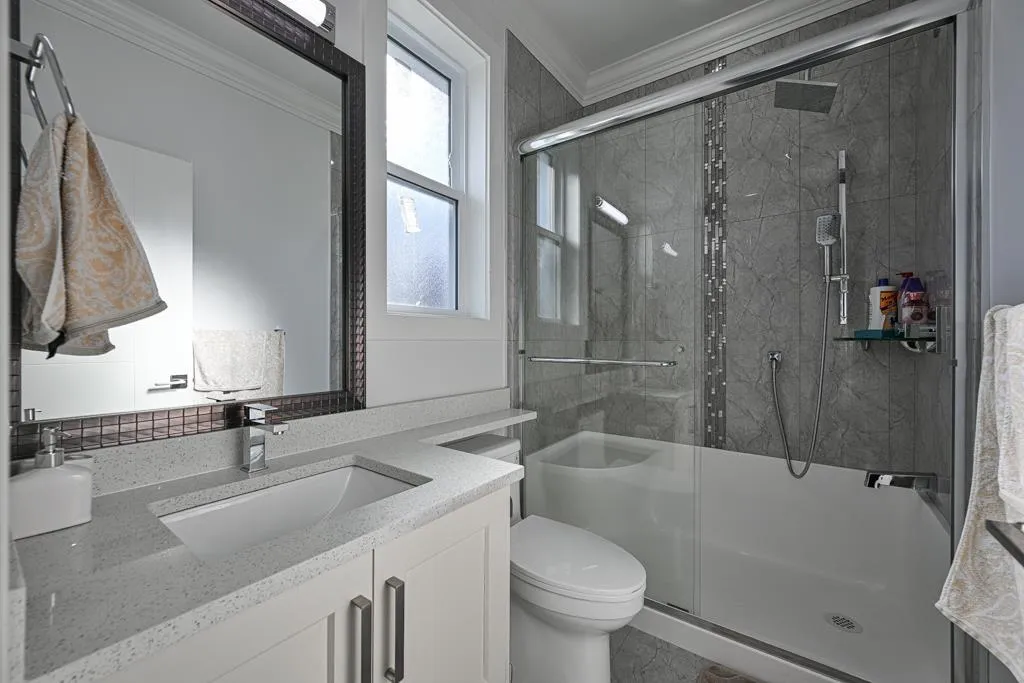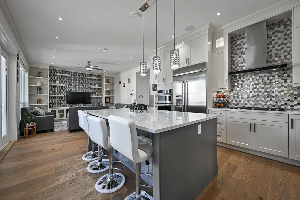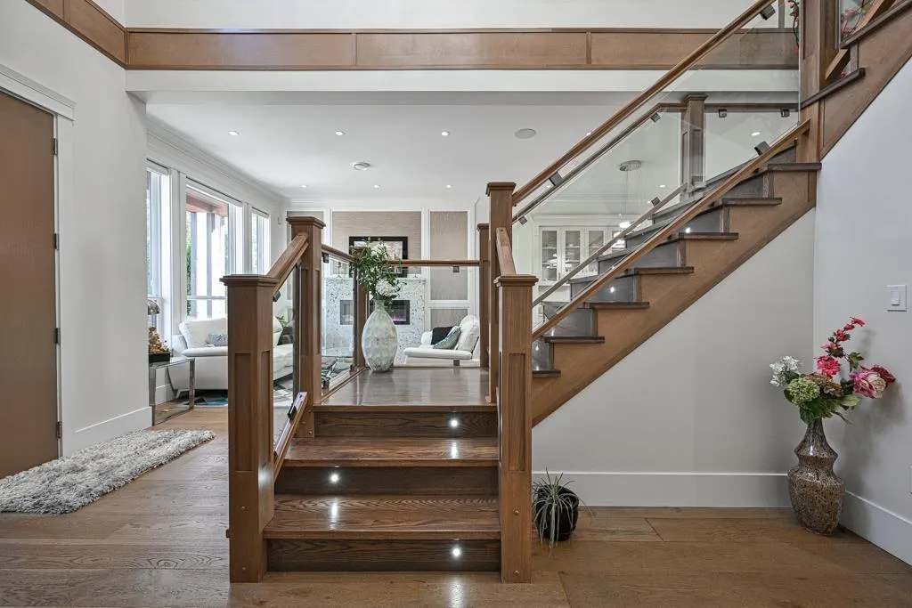 Exquisite custom-built mansion in South Surrey's King George Corridor featuring dual driveways and triple garage with drive-through access. Main floor offers living, dining, family room, gourmet kitchen with spice kitchen, theatre room, and large covered patio. Upstairs includes 7 spacious bedrooms all with walk-in closets and 6 bathrooms. Legal 2-bedroom suite is a great mortgage helper. Radiant heat, A/C, and high-end finishes throughout. Prime location close to top schools, shopping, and all amenities. (id:27476)