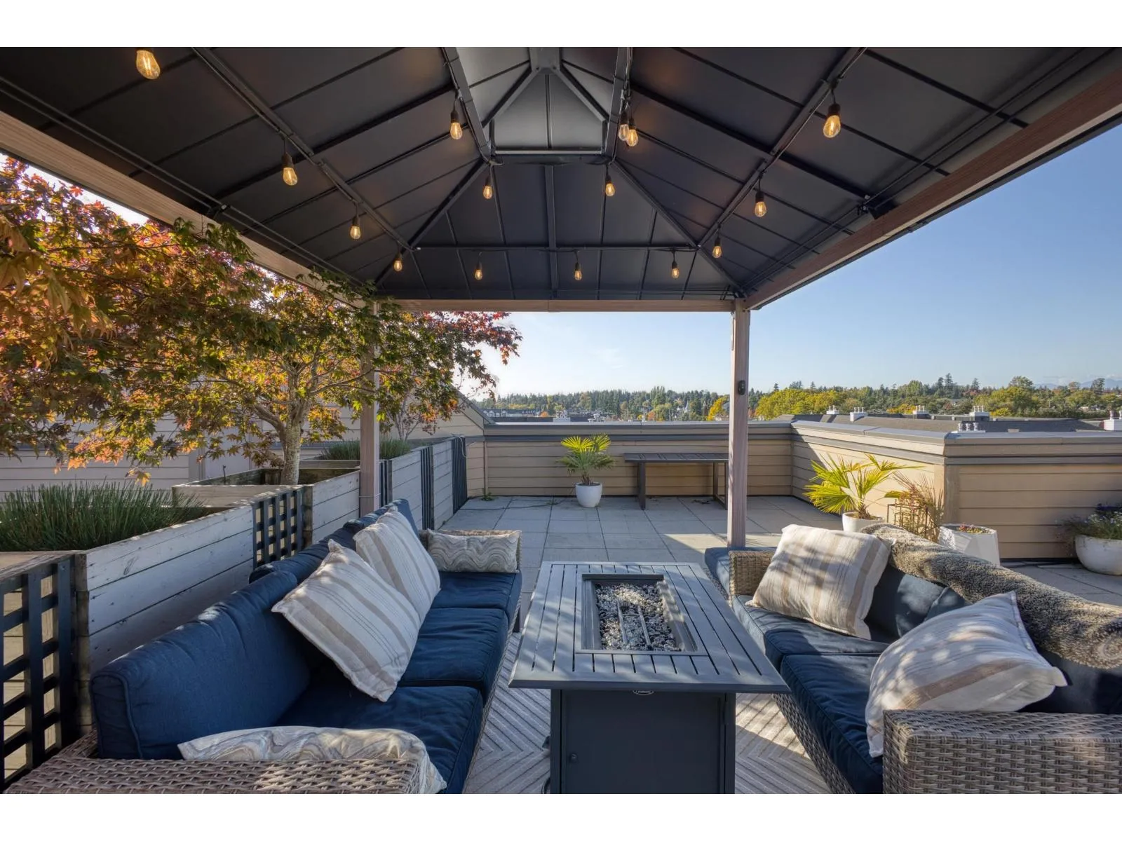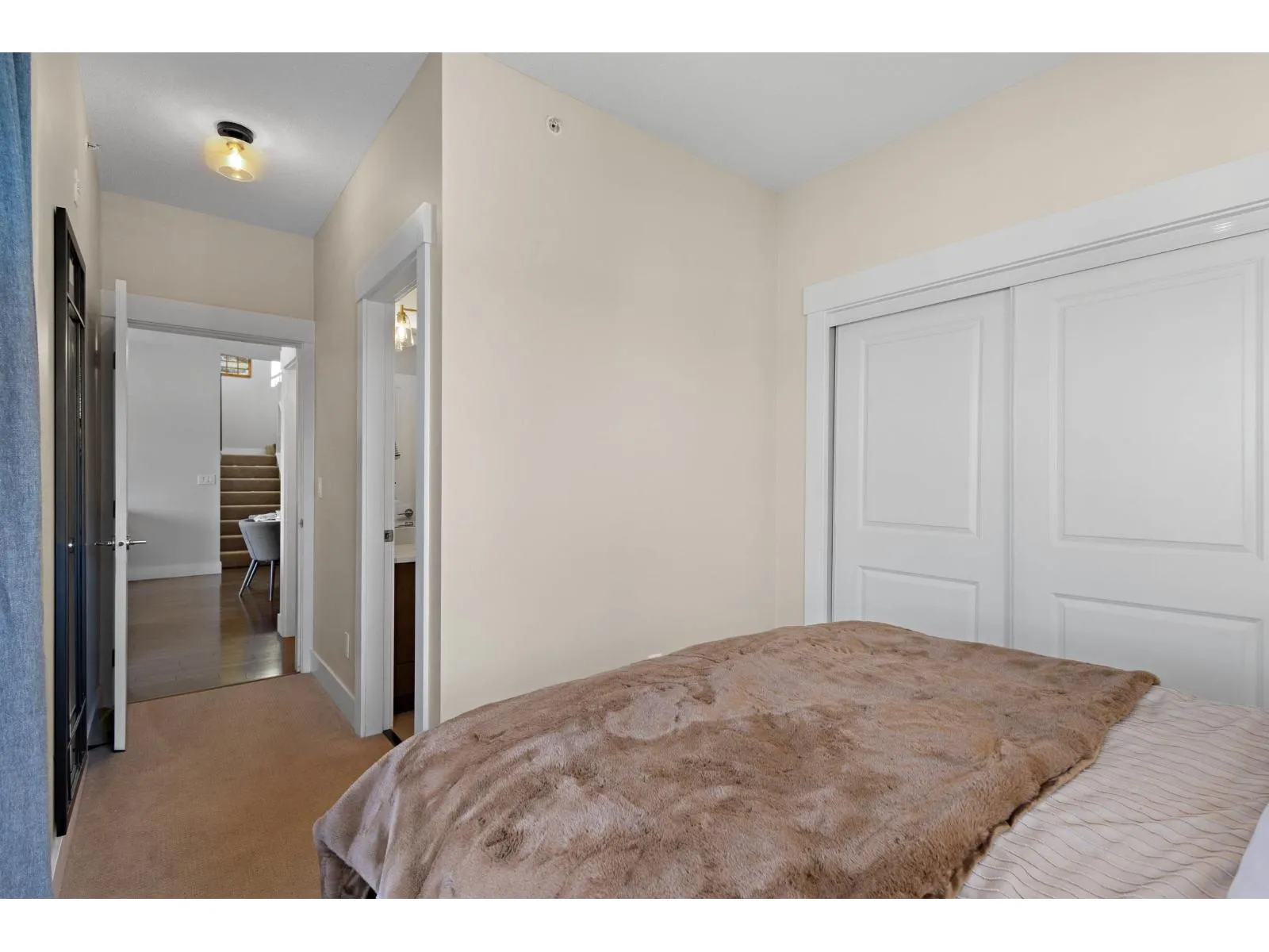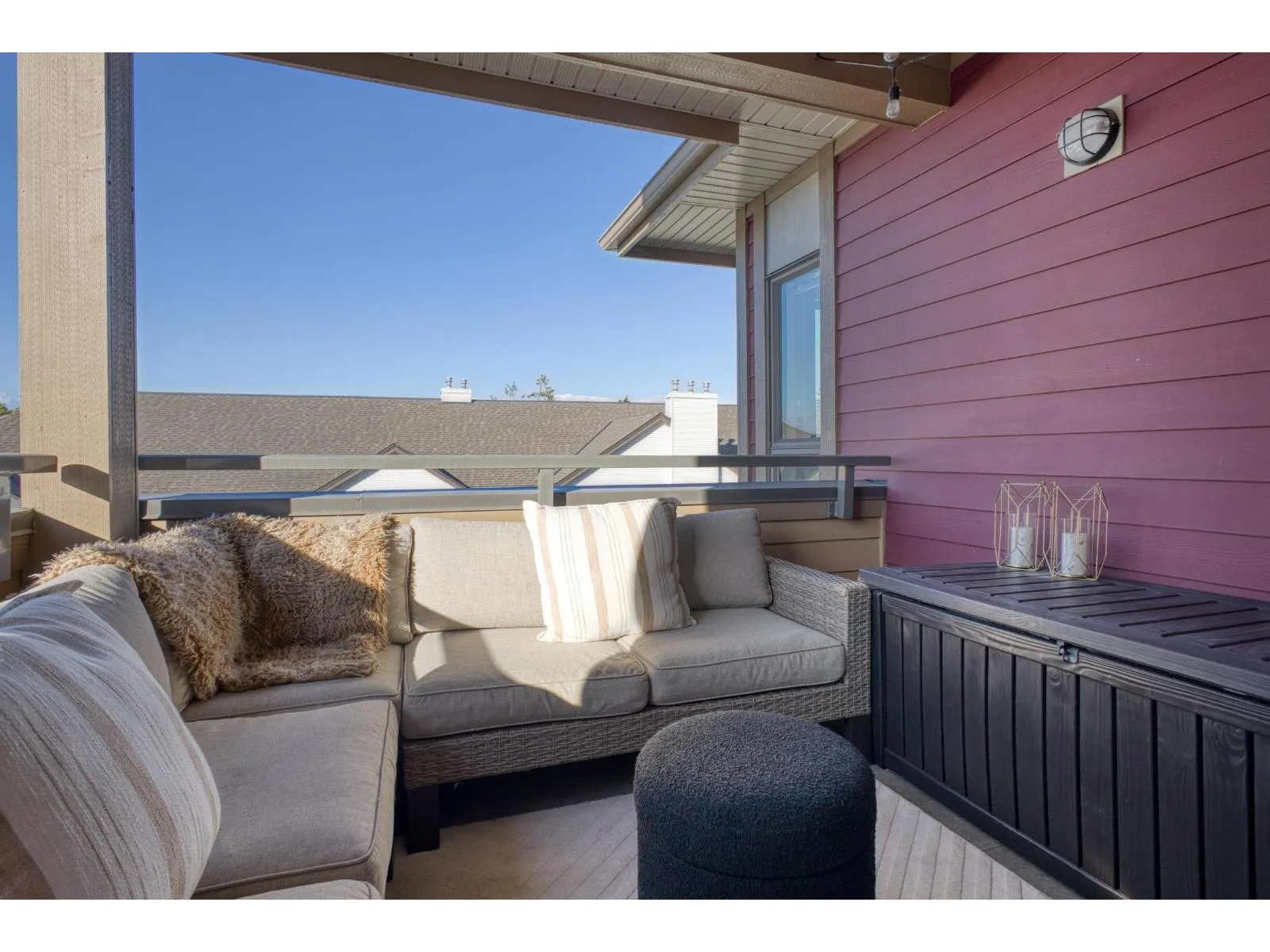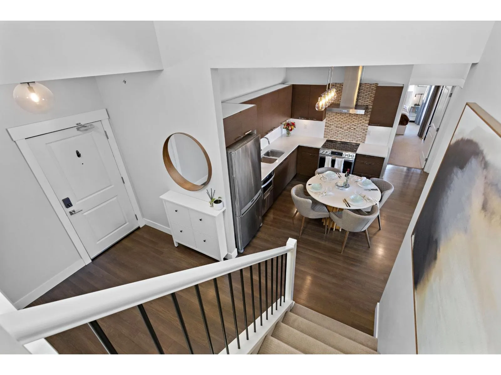 Spacious, bright and unique two level residence featuring 2 bedrooms and 2 full bathrooms. This home offers soaring ceilings, expansive windows and a abundance of natural light throughout. Thoughtfully curated from custom built-in closets, detailed bathroom features to generous in-suite storage and convenient same floor additional storage area. Enjoy 3 private outdoor spaces, including a spectacular rooftop patio with panoramic mountain views - perfect for entertaining, gardening, or just relaxing in complete privacy. Additional balconies extend your living space and invite indoor/outdoor living. Parking includes 2 underground side-by-side spots. Perfectly situated near the Cloverdale Core, Fairgrounds, Polytechnic University and future Hospital. (id:27476)