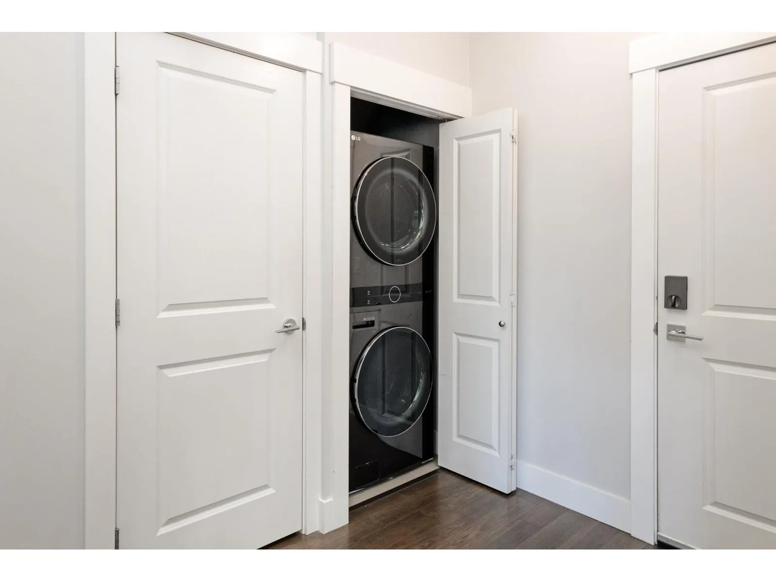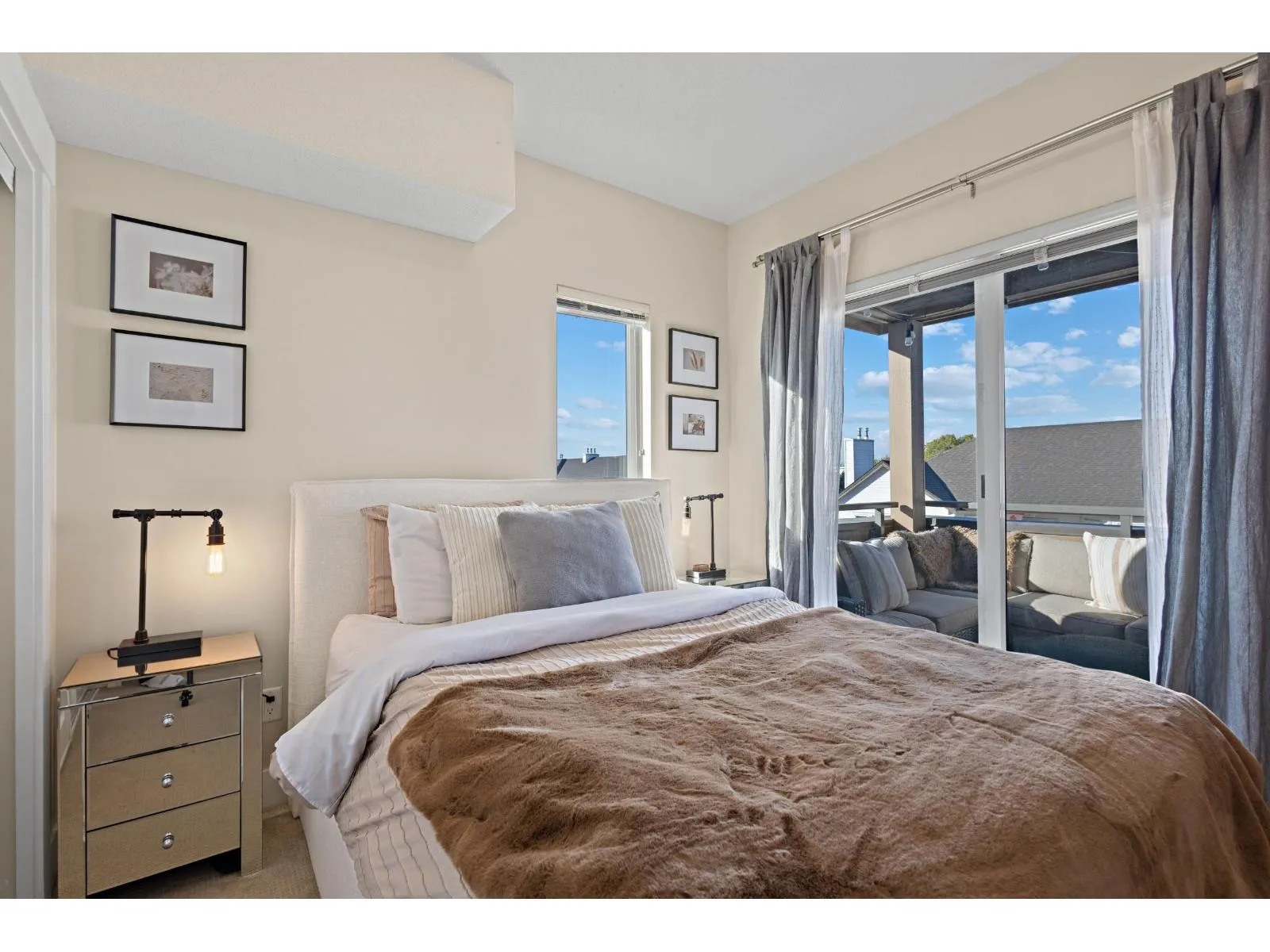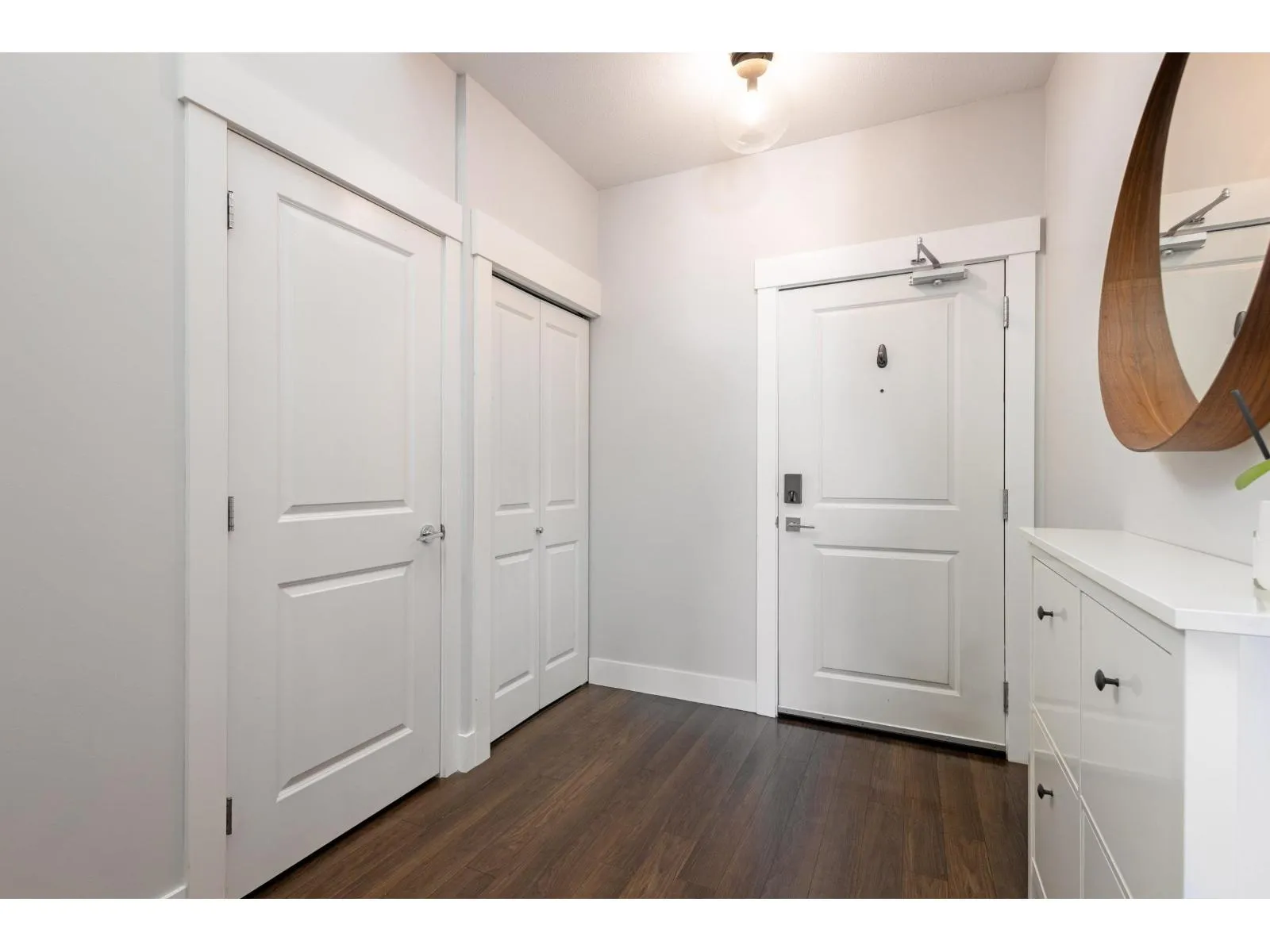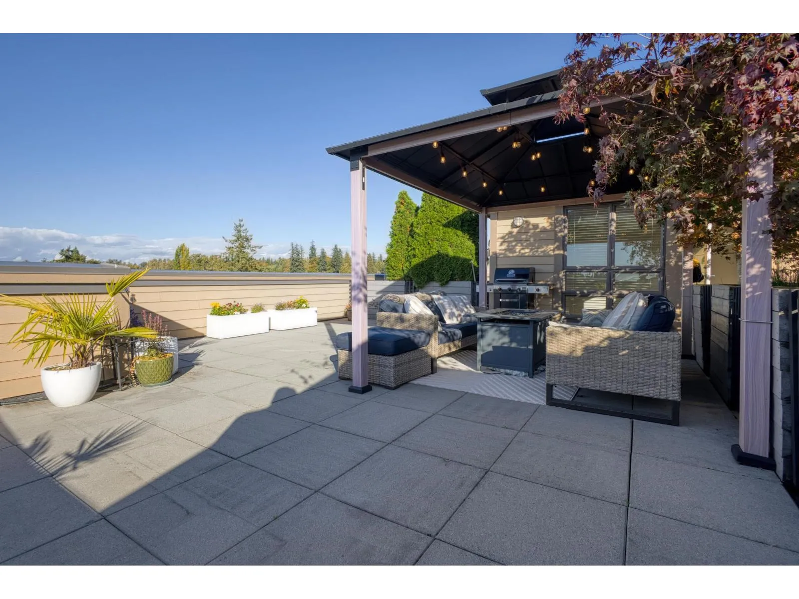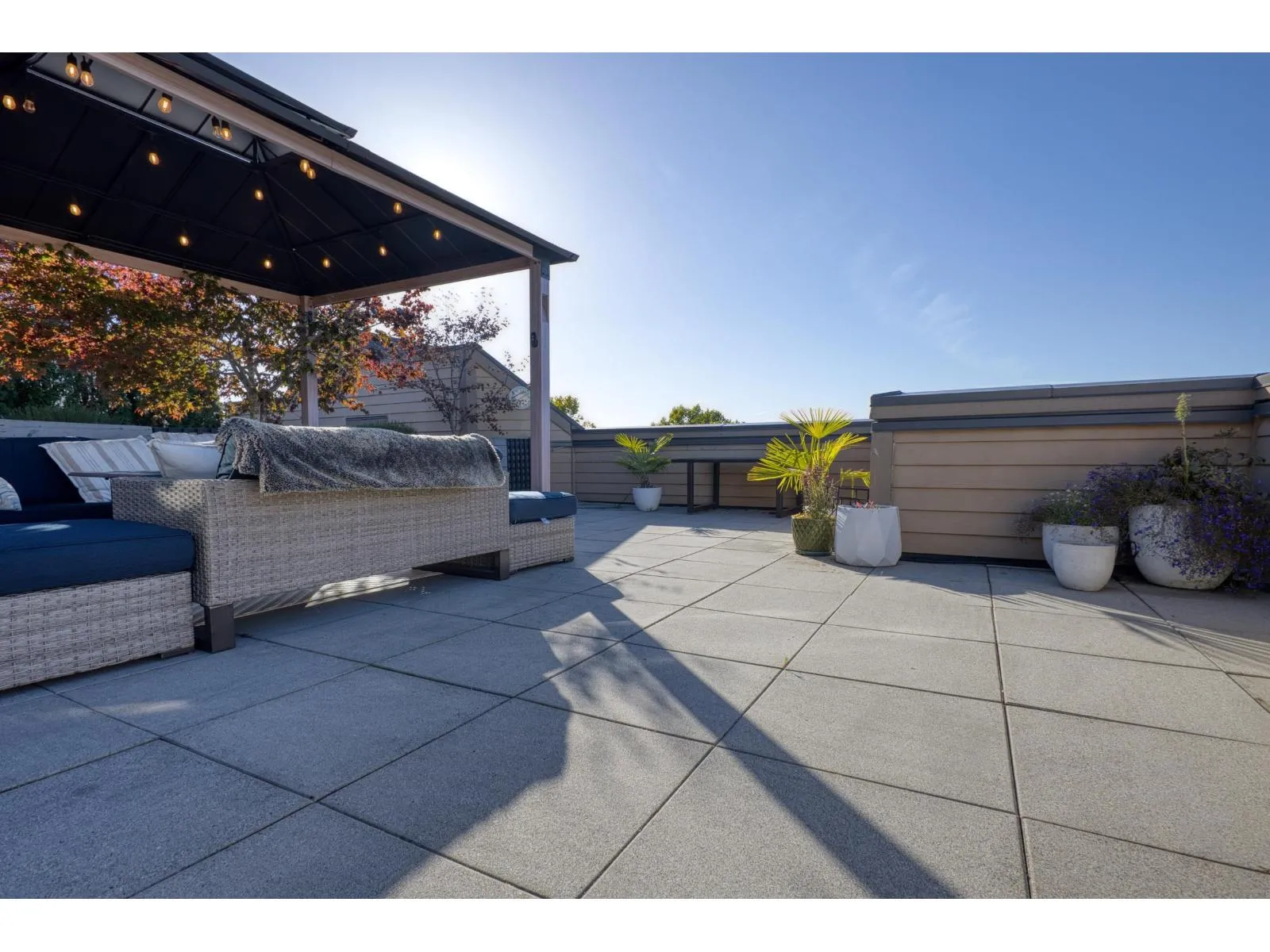 Spacious, bright and unique two level residence featuring 2 bedrooms and 2 full bathrooms. This home offers soaring ceilings, expansive windows and a abundance of natural light throughout. Thoughtfully curated from custom built-in closets, detailed bathroom features to generous in-suite storage and convenient same floor additional storage area. Enjoy 3 private outdoor spaces, including a spectacular rooftop patio with panoramic mountain views - perfect for entertaining, gardening, or just relaxing in complete privacy. Additional balconies extend your living space and invite indoor/outdoor living. Parking includes 2 underground side-by-side spots. Perfectly situated near the Cloverdale Core, Fairgrounds, Polytechnic University and future Hospital. (id:27476)
