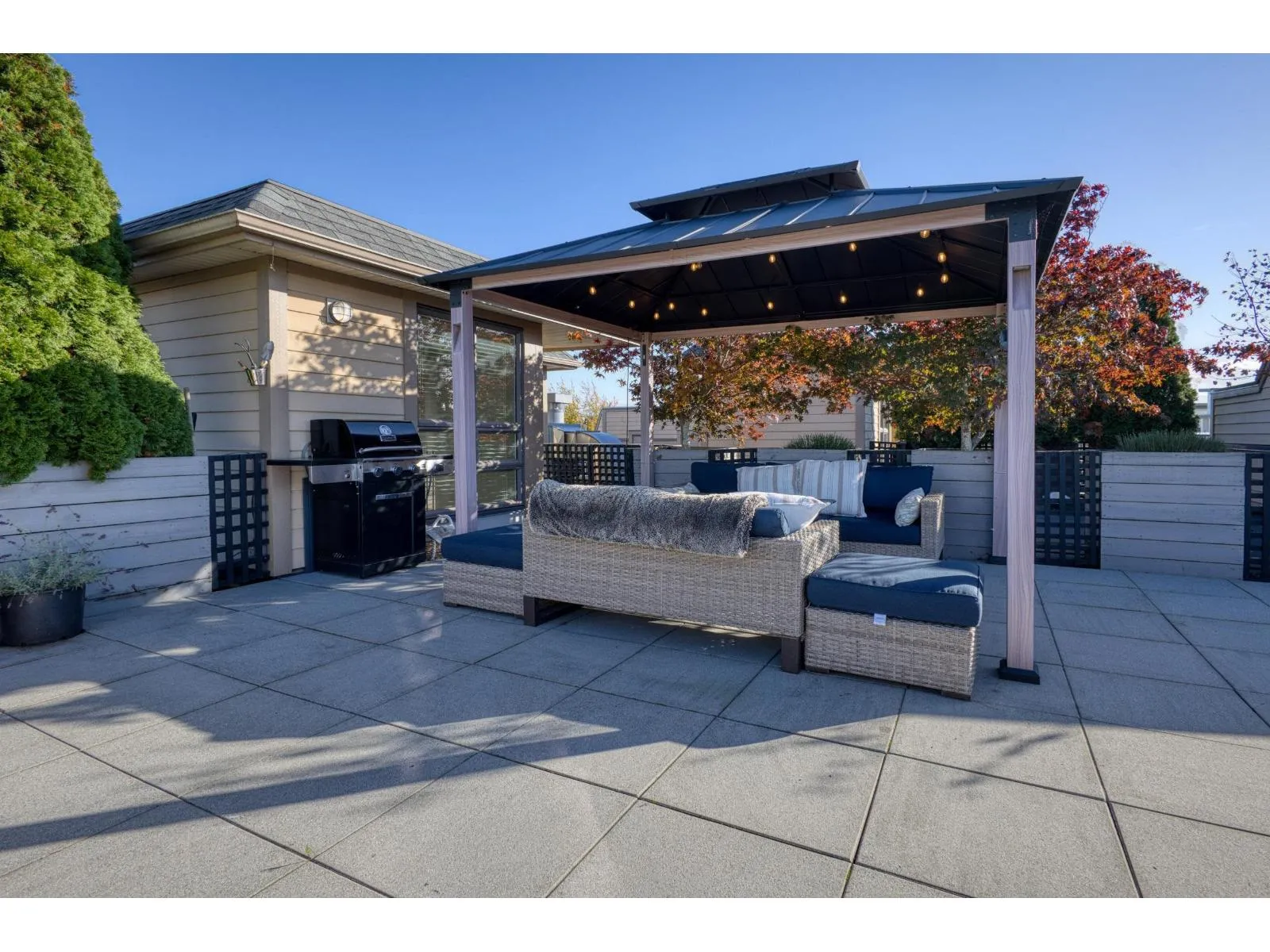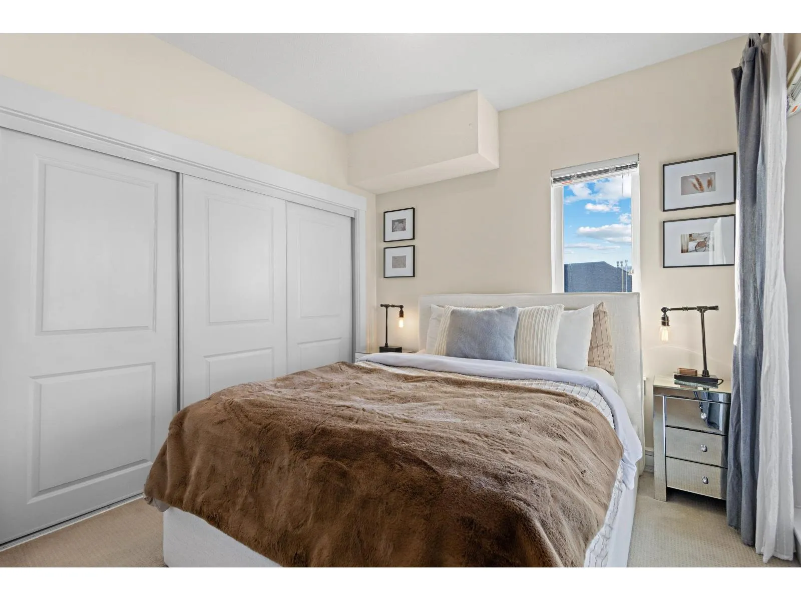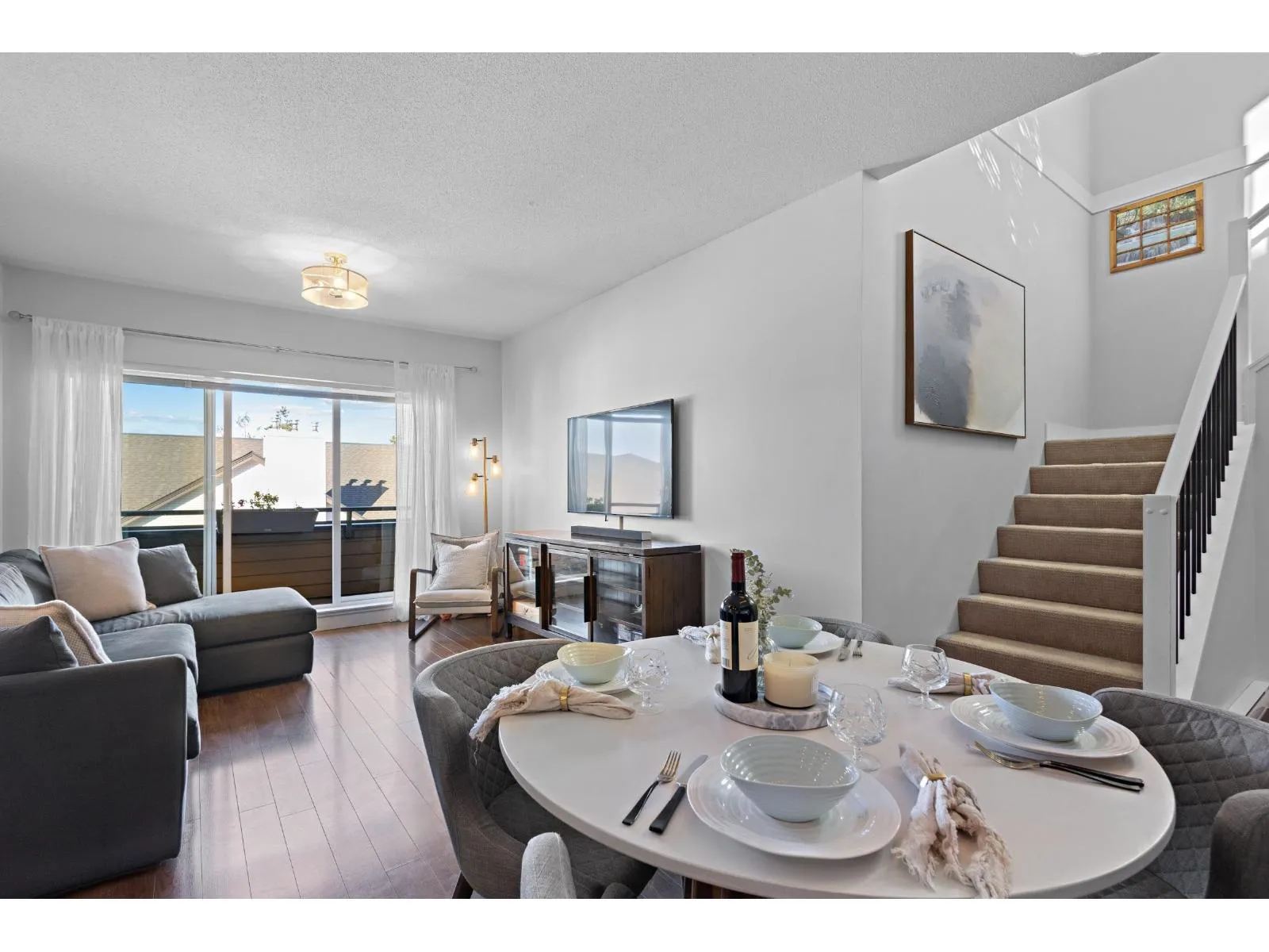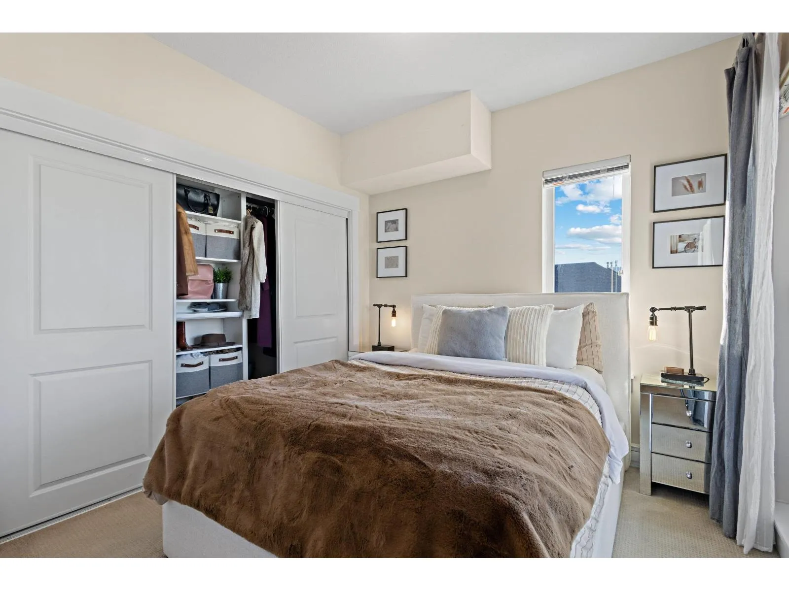Spacious, bright and unique two level residence featuring 2 bedrooms and 2 full bathrooms. This home offers soaring ceilings, expansive windows and a abundance of natural light throughout. Thoughtfully curated from custom built-in closets, detailed bathroom features to generous in-suite storage and convenient same floor additional storage area. Enjoy 3 private outdoor spaces, including a spectacular rooftop patio with panoramic mountain views - perfect for entertaining, gardening, or just relaxing in complete privacy. Additional balconies extend your living space and invite indoor/outdoor living. Parking includes 2 underground side-by-side spots. Perfectly situated near the Cloverdale Core, Fairgrounds, Polytechnic University and future Hospital. (id:27476)