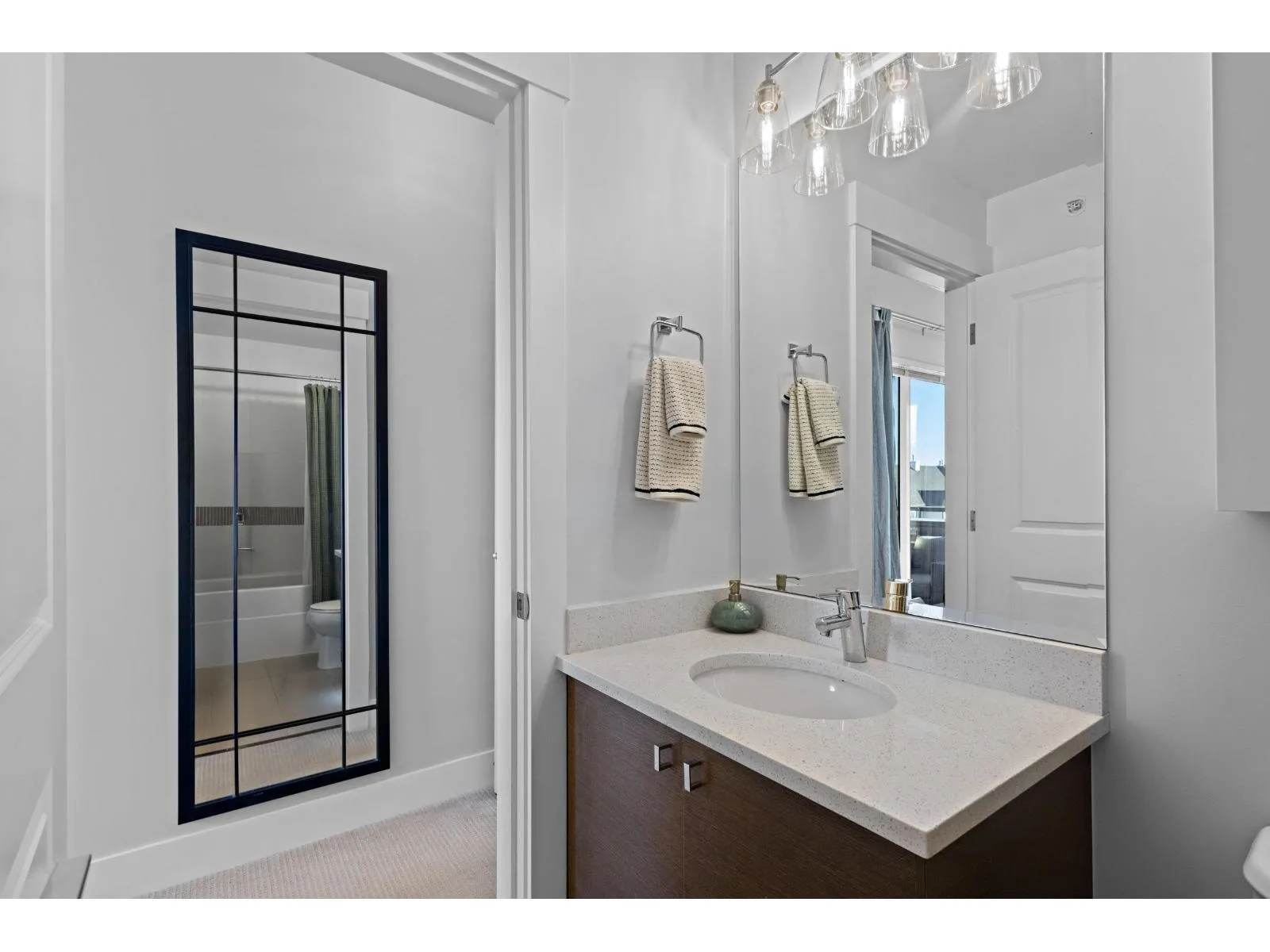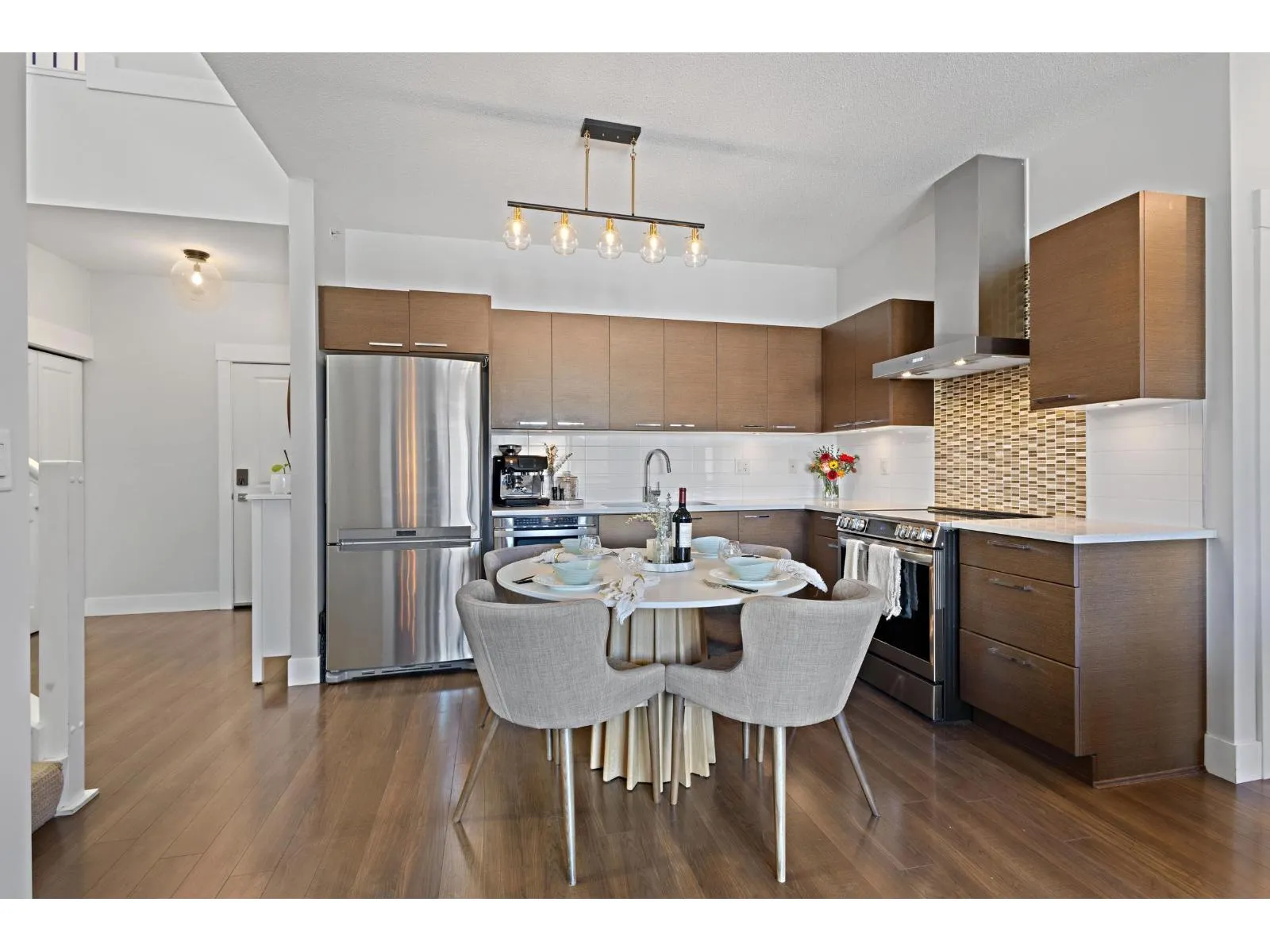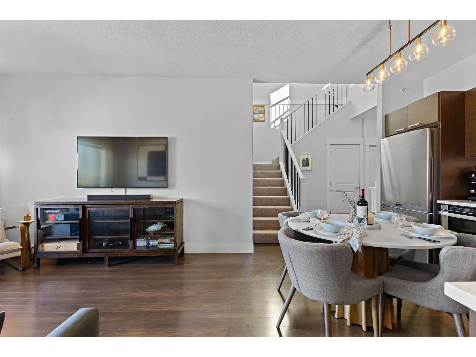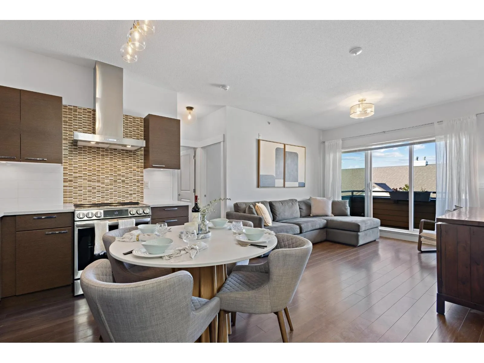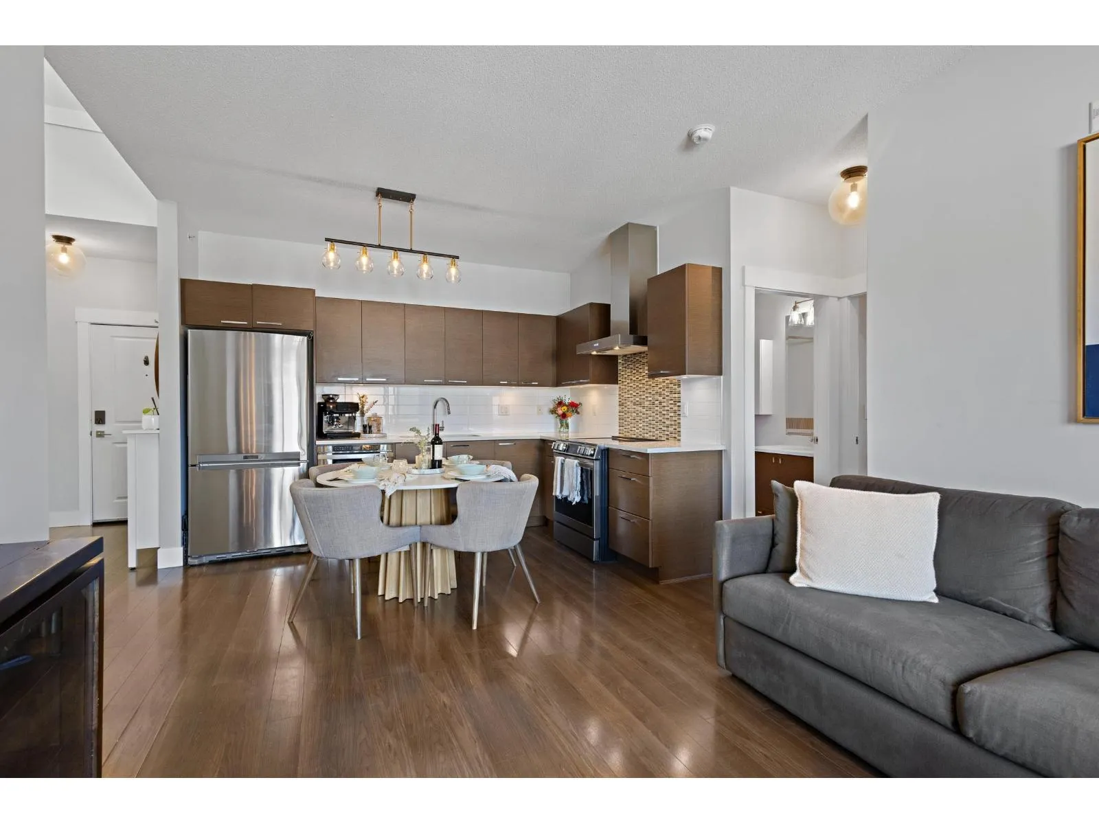 Spacious, bright and unique two level residence featuring 2 bedrooms and 2 full bathrooms. This home offers soaring ceilings, expansive windows and a abundance of natural light throughout. Thoughtfully curated from custom built-in closets, detailed bathroom features to generous in-suite storage and convenient same floor additional storage area. Enjoy 3 private outdoor spaces, including a spectacular rooftop patio with panoramic mountain views - perfect for entertaining, gardening, or just relaxing in complete privacy. Additional balconies extend your living space and invite indoor/outdoor living. Parking includes 2 underground side-by-side spots. Perfectly situated near the Cloverdale Core, Fairgrounds, Polytechnic University and future Hospital. (id:27476)