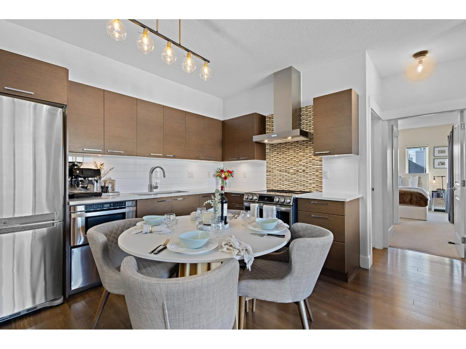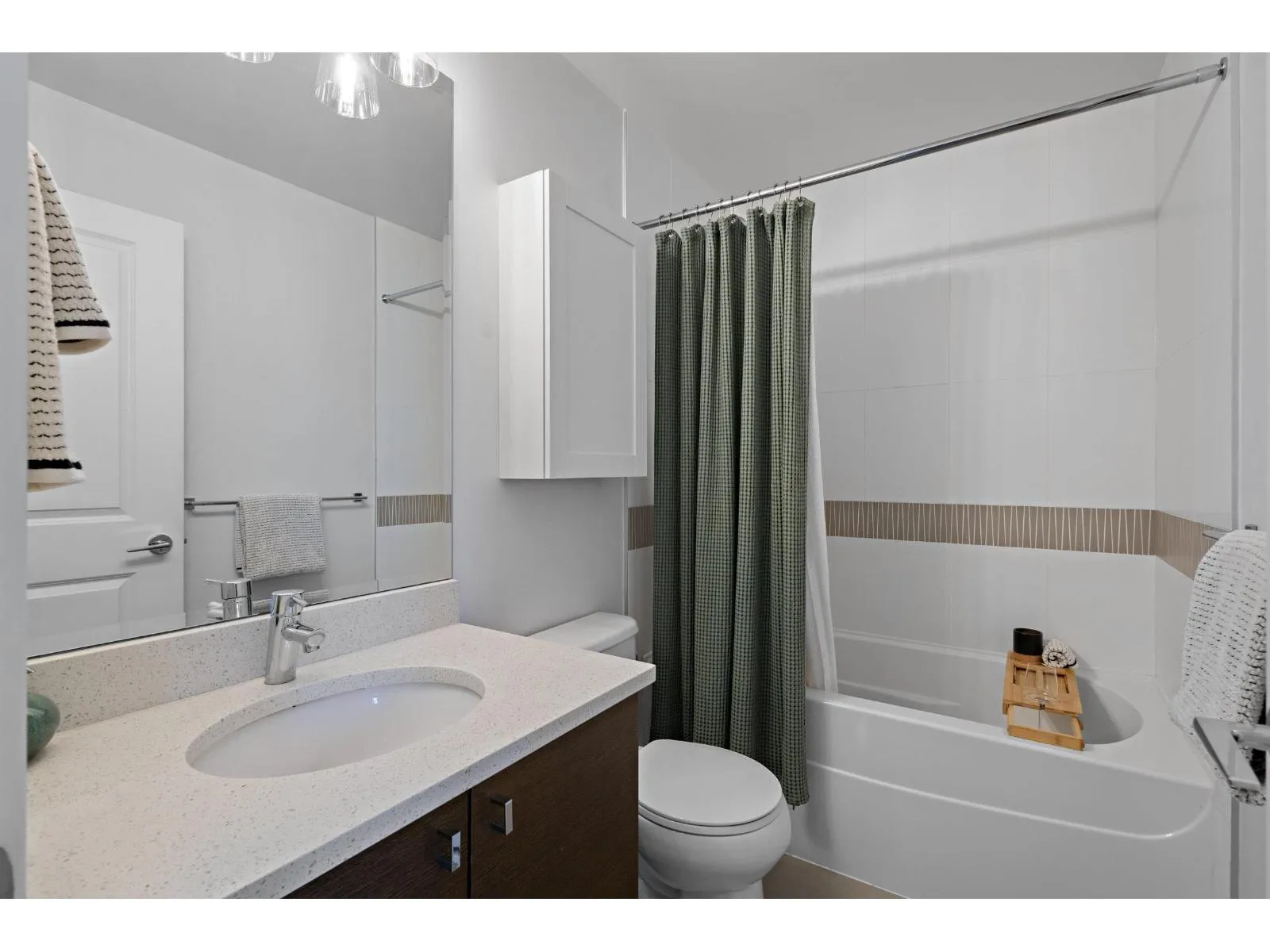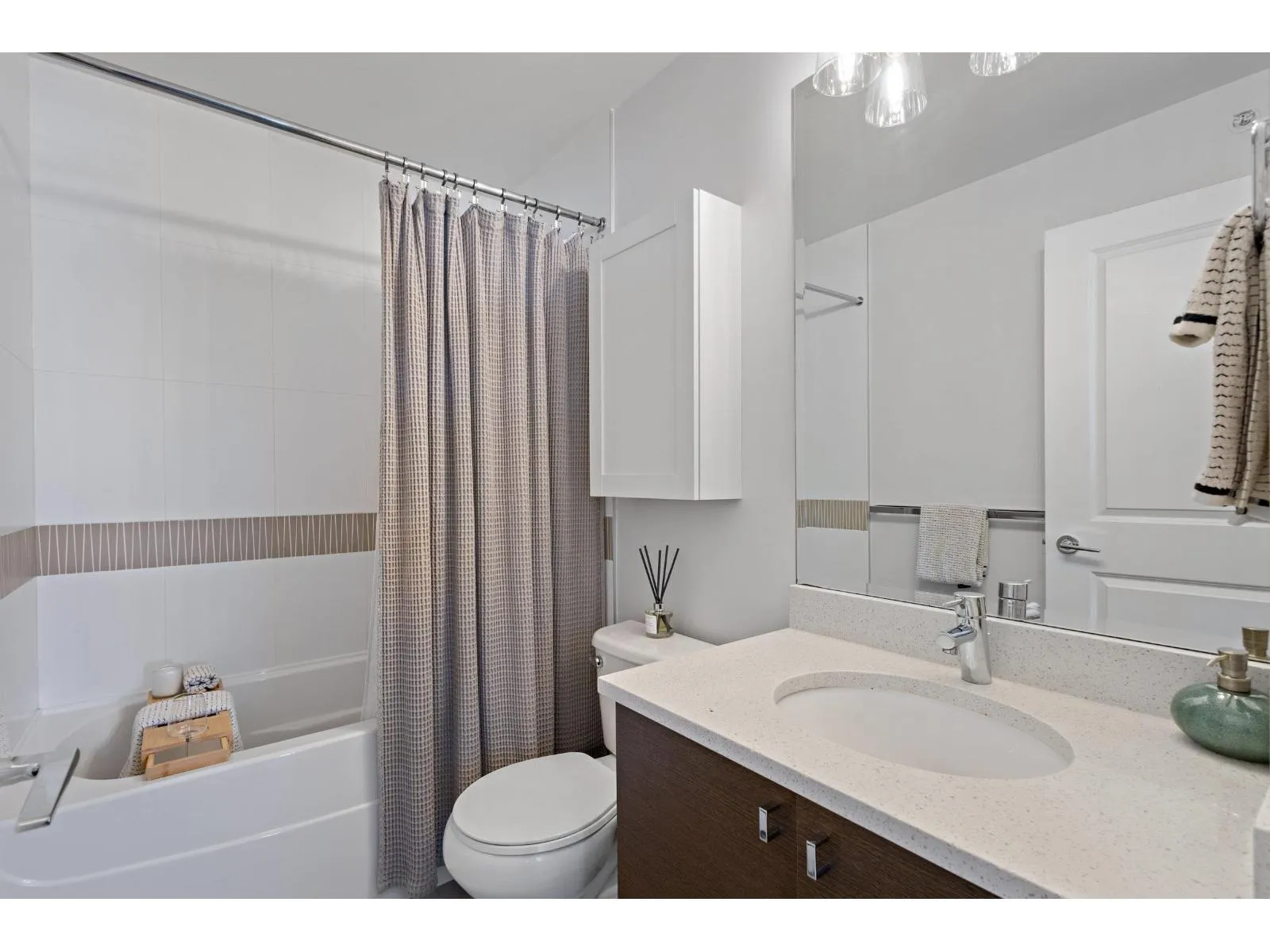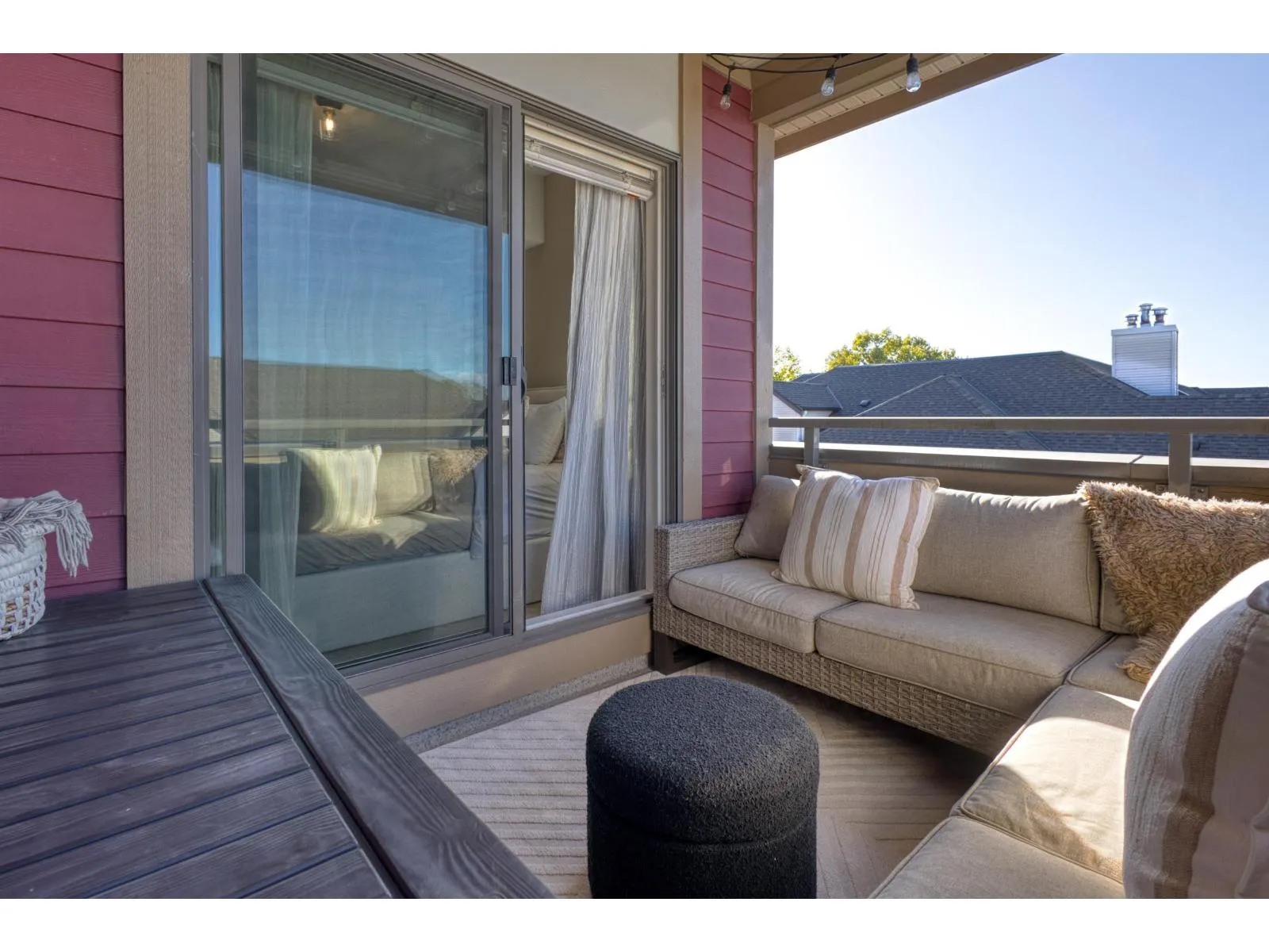 Spacious, bright and unique two level residence featuring 2 bedrooms and 2 full bathrooms. This home offers soaring ceilings, expansive windows and a abundance of natural light throughout. Thoughtfully curated from custom built-in closets, detailed bathroom features to generous in-suite storage and convenient same floor additional storage area. Enjoy 3 private outdoor spaces, including a spectacular rooftop patio with panoramic mountain views - perfect for entertaining, gardening, or just relaxing in complete privacy. Additional balconies extend your living space and invite indoor/outdoor living. Parking includes 2 underground side-by-side spots. Perfectly situated near the Cloverdale Core, Fairgrounds, Polytechnic University and future Hospital. (id:27476)