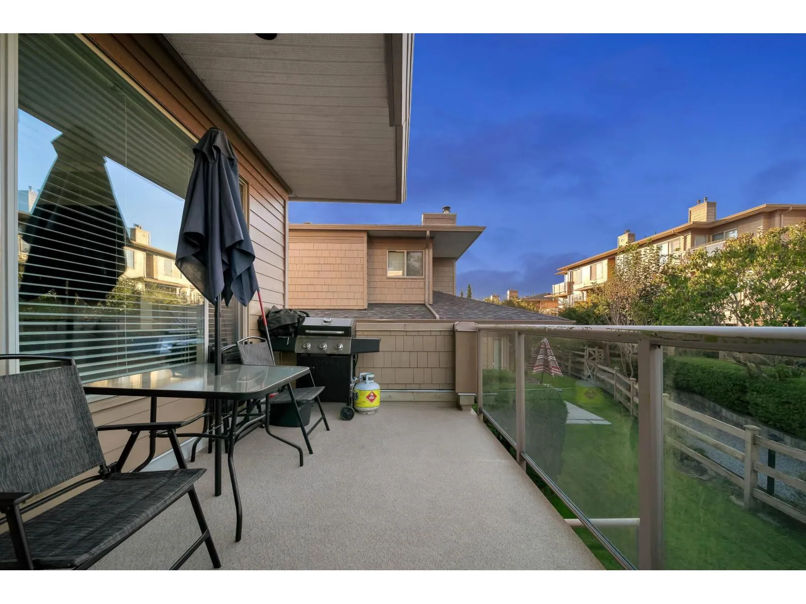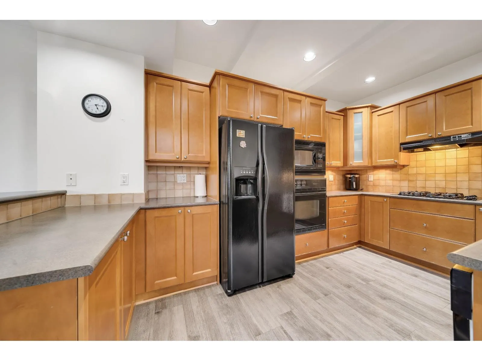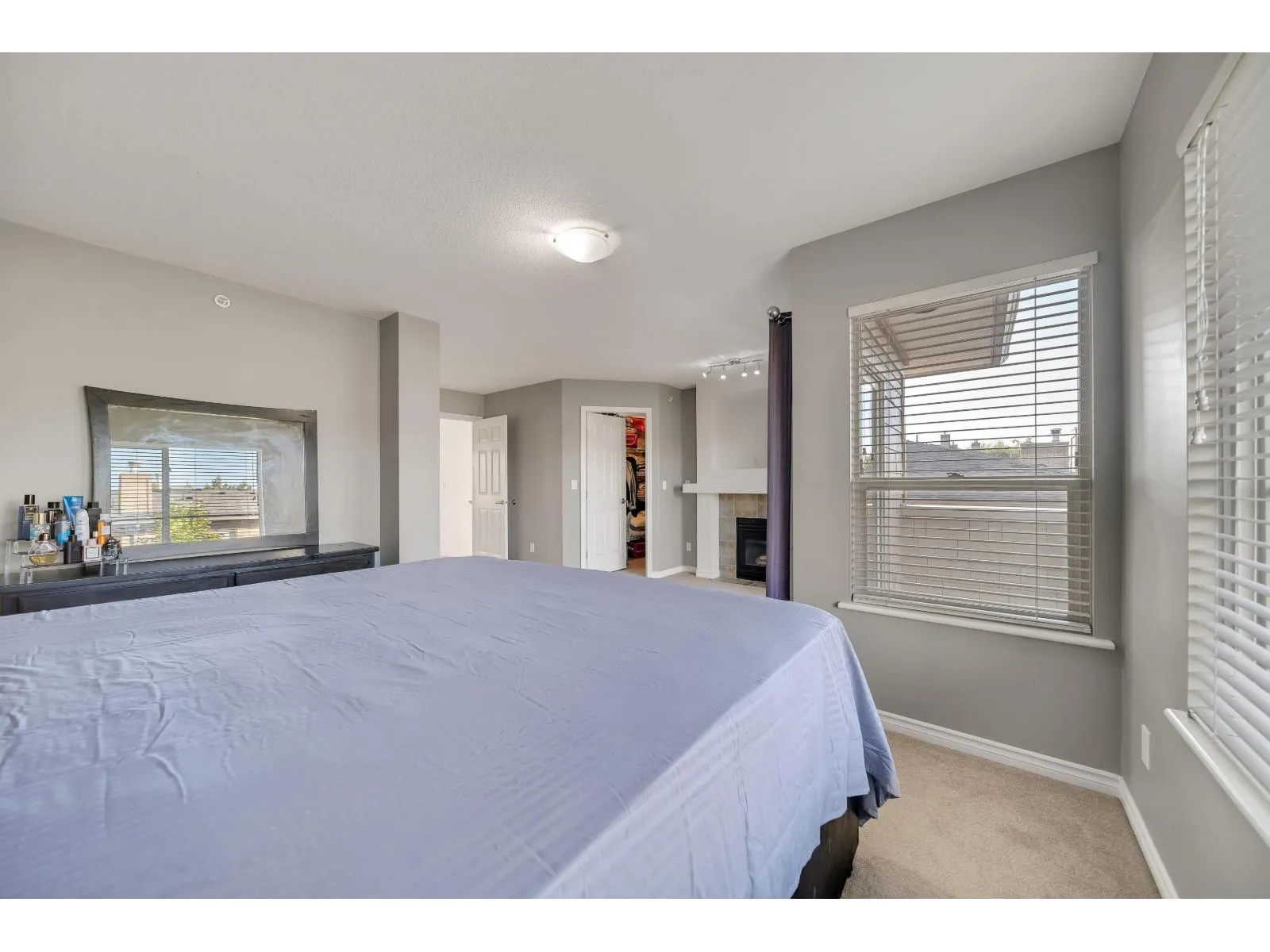Welcome to Ridgewoods- a beautifully maintained air-conditioned end-unit townhouse offering nearly 2,200 sqft of elegant living in a highly desirable Cloverdale location. The bright, open-concept main floor features large windows, skylights, a cozy gas fireplace, spacious dining area, and a sunny deck. The modern kitchen offers abundant cabinetry and workspace, perfect for entertaining. Upstairs awaits a luxurious primary suite with fireplace, private balcony, walk-in closet, and spa-style ensuite with heated floors. Two additional bedrooms plus a full basement with recreation and games rooms add flexibility for family living. Double side-by-side garage, updated roof (2021), and resort-style amenities- clubhouse, guest suites, and fitness centre. Steps to Northview Golf Club. (id:27476)