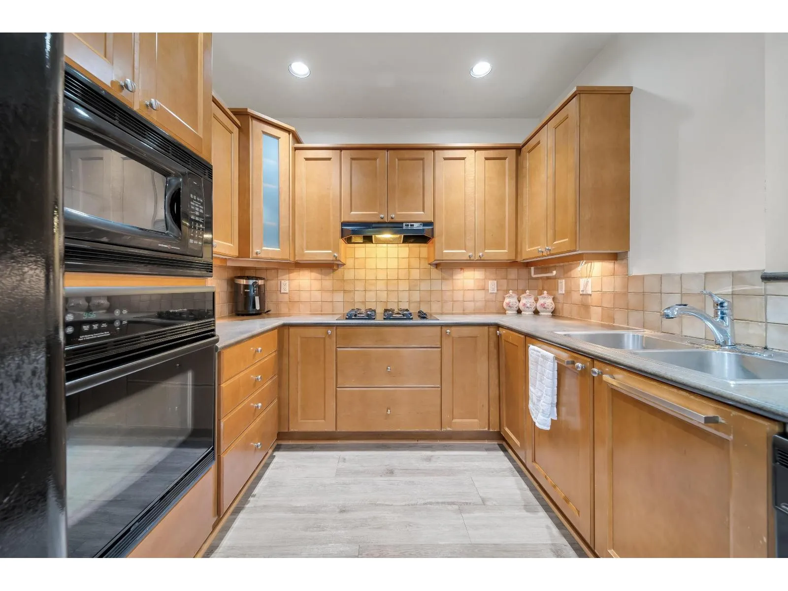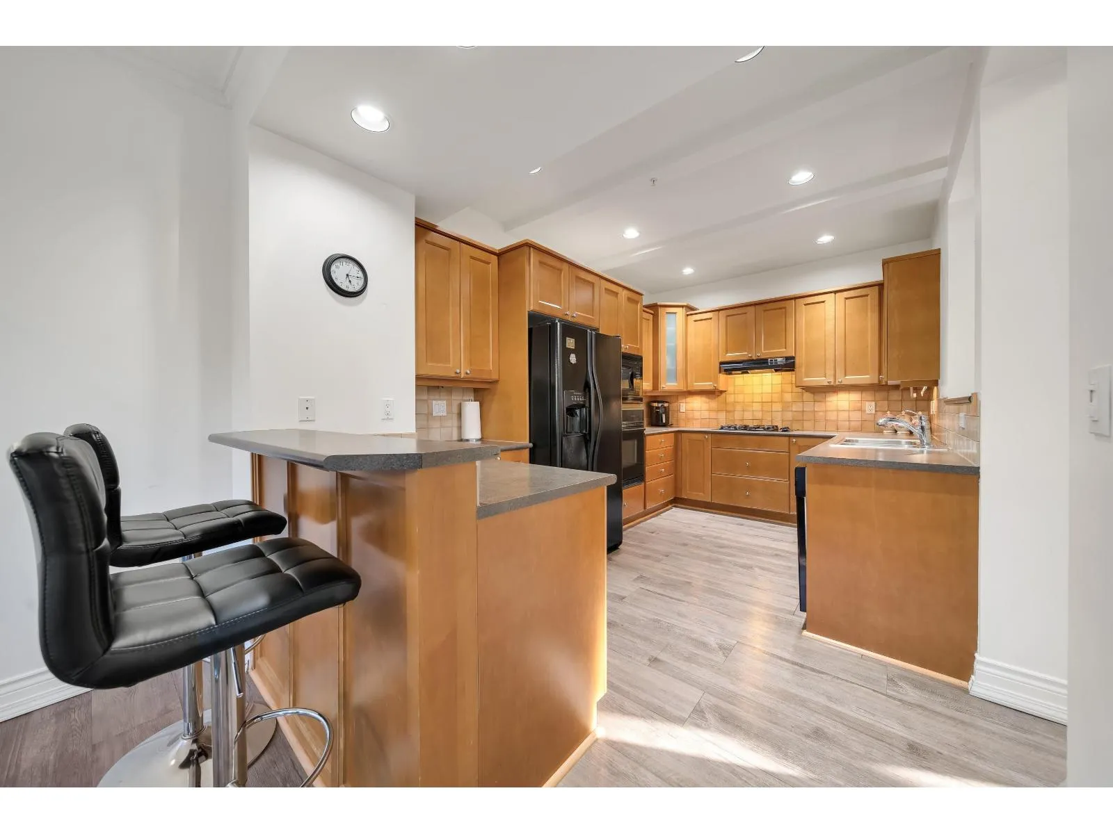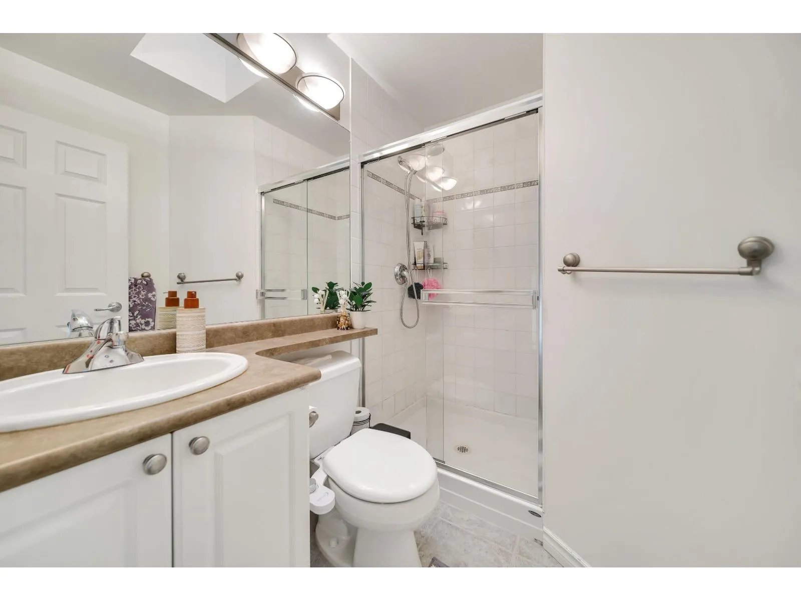 Welcome to Ridgewoods- a beautifully maintained air-conditioned end-unit townhouse offering nearly 2,200 sqft of elegant living in a highly desirable Cloverdale location. The bright, open-concept main floor features large windows, skylights, a cozy gas fireplace, spacious dining area, and a sunny deck. The modern kitchen offers abundant cabinetry and workspace, perfect for entertaining. Upstairs awaits a luxurious primary suite with fireplace, private balcony, walk-in closet, and spa-style ensuite with heated floors. Two additional bedrooms plus a full basement with recreation and games rooms add flexibility for family living. Double side-by-side garage, updated roof (2021), and resort-style amenities- clubhouse, guest suites, and fitness centre. Steps to Northview Golf Club. (id:27476)