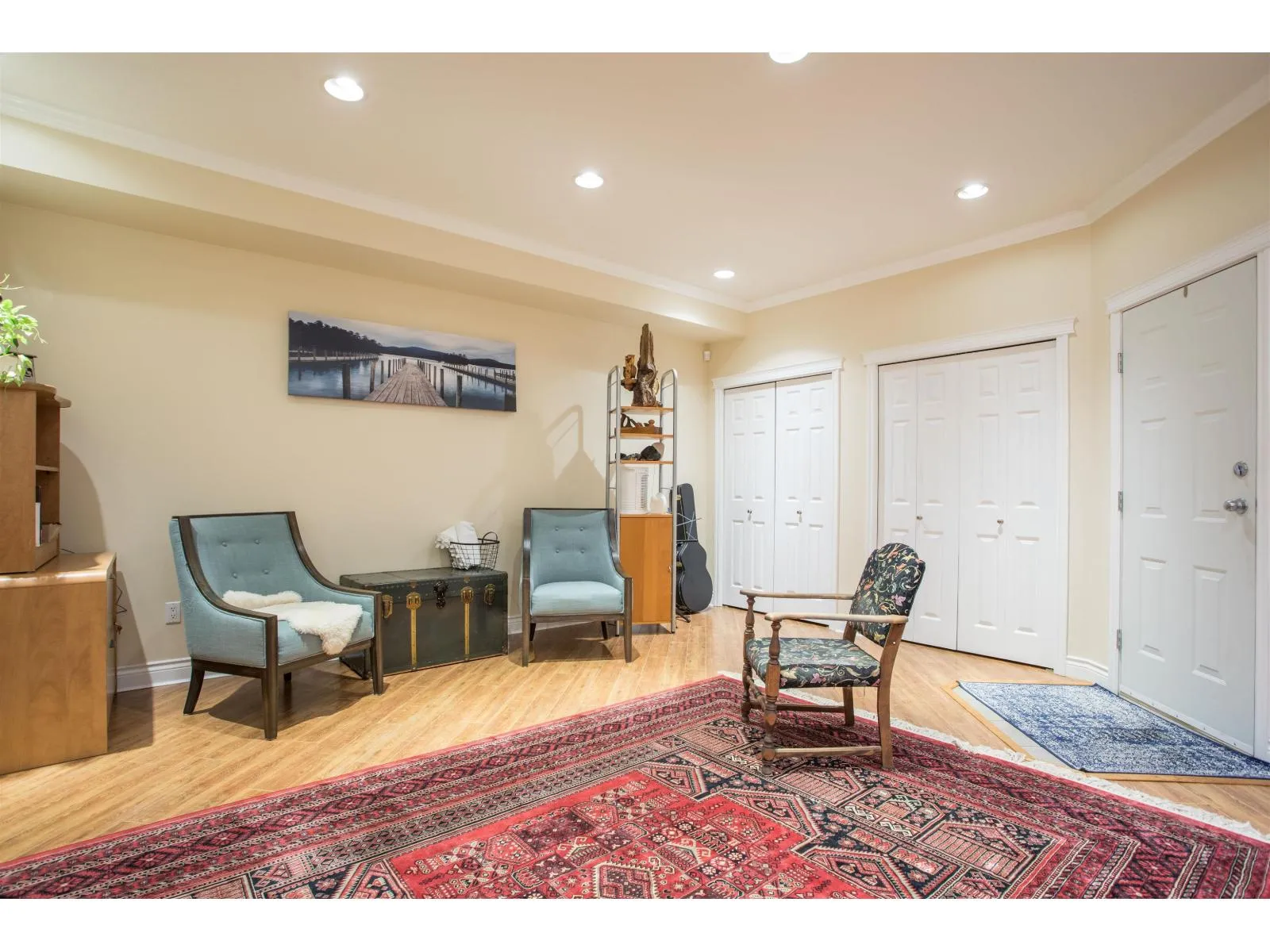 Craftsman Family home ready for you to move right in. Close to shopping, recreation, parks and easy access to hwy. 99. Bright home with efficient floor plan, impressive millwork, coffered ceiling and hardwood floors showcase the quality. Downstairs has its own entrance, recreation room, bedroom and full bathroom easy to suite. Perfect for Nanny, Granny or student returning home. West facing backyard has Trek deck leading to a double car garage with lane access. (id:27476)