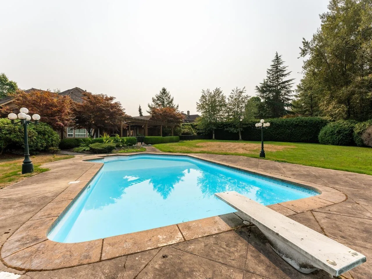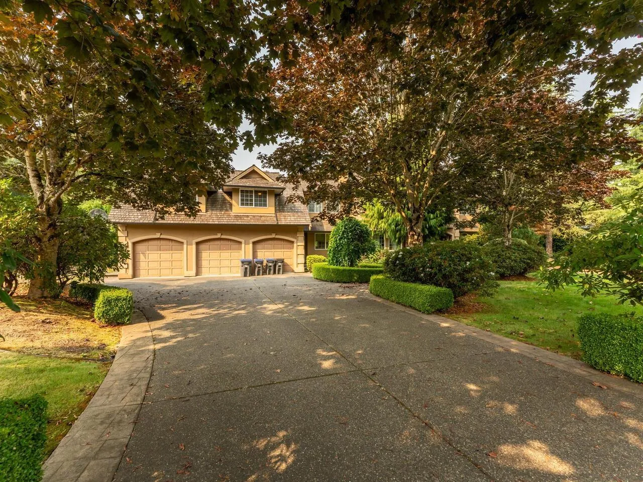 Rarely available over 1 acre lot, privately gated, exquisite French Manor Estate at Grandview Heights. Beautifully park-like landscaping with heated salt swimming pool and hot tub/spa. Impressive entrance hall leads to double-height formal dining room. Custom-built with master bdrm on the main with his/her closet. Functional kitchen with wet bar and butler pantry for your creative renovation ideas. Family room has fireplace and French doors open to extensive exposed concrete patios and pergola. 2nd staircase leads to upstairs game room and 4 large bdrms. Central location, close to Southridge School, golf course, shopping centre and new aquarium centre. (id:27476)