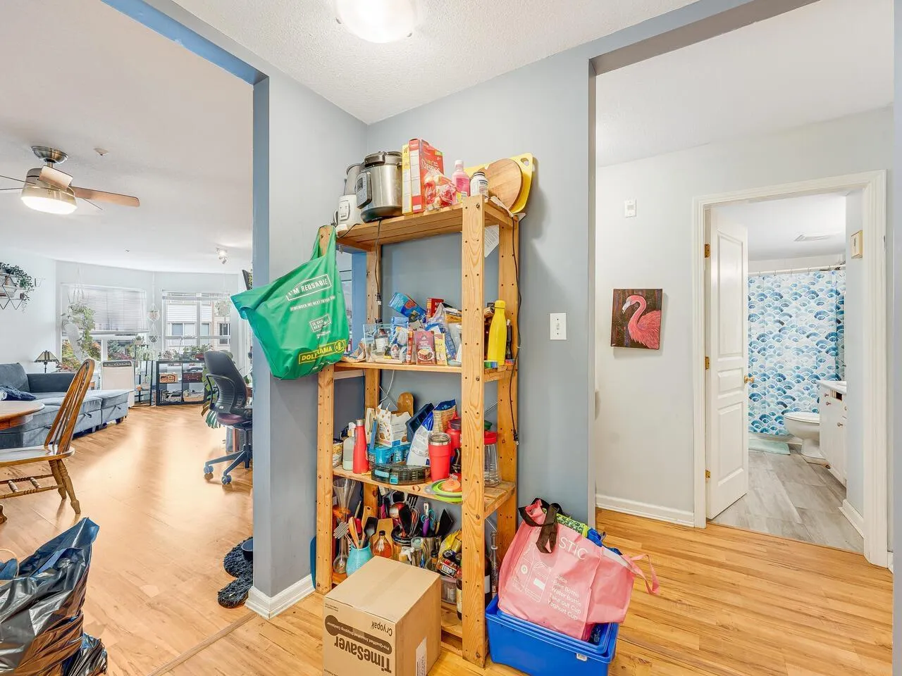 Almost a 2 bedroom there is so much space! This 1bed and Den is ready for you to move in! Walking distance to shopping, groceries, transit, restaurants, parks and recreation! Enjoy your peaceful covered balcony facing the courtyard. The Building is tucked away from busy Scott road in a quiet cul-de-sac. Use the XL Den as an office or spare room. There is plenty of space to entertain, or book the shared amenity room for larger functions. This home comes with 1 covered parking and 1 very large storage locker, making moving all of your treasured items a breeze! Call today to book your viewing! (id:27476)