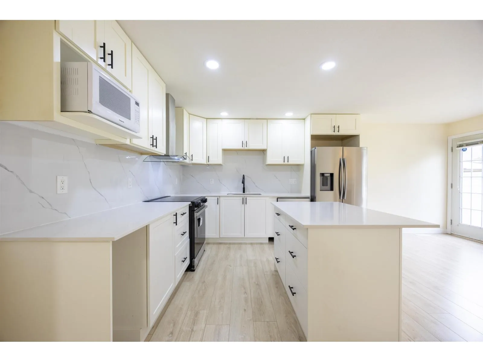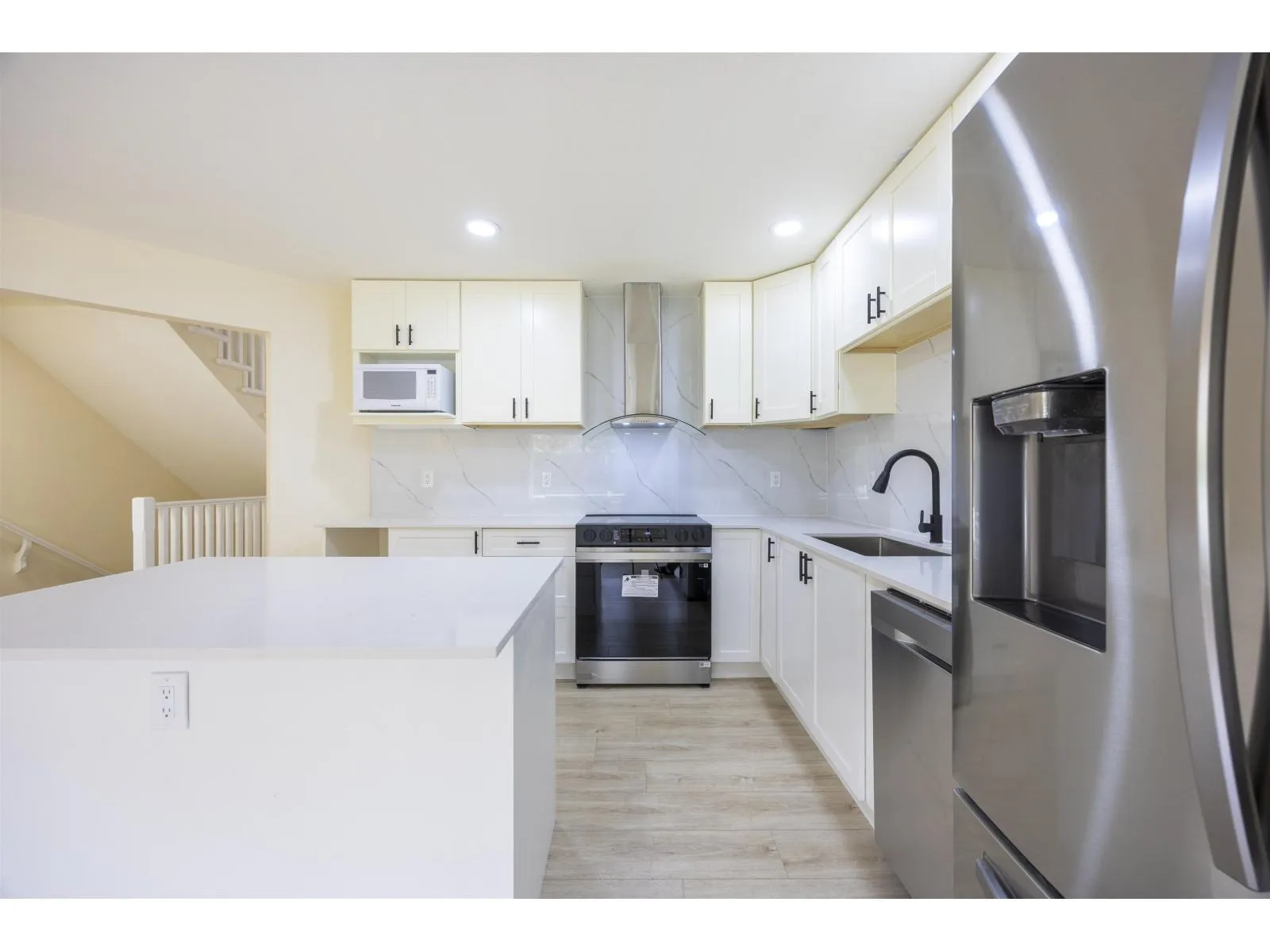 Meticulously renovated large Lexington Townhome Double side by side garage gem nested in the finest area of Cloverdale. Open concept main floor offers bright living room with gas fireplace, welcoming dinning room, warm family room with another gas fire place, Chef-favourite gourmet kitchen with high end stainless steel appliances, large island, quartz countertops throughout, Cozy master bedroom with luxury ensuite full bath. Upper floor has two decent sized bedrooms with full bath, quiet office plus another living area. Fully finished basement provides big bedroom with full bath and a spacious recreation/flexible room. Excellent gated complex located in a super convenient location, which close to public transits, Golf course, Parks, Schools, Shoppings, Restaurants & more (id:27476)