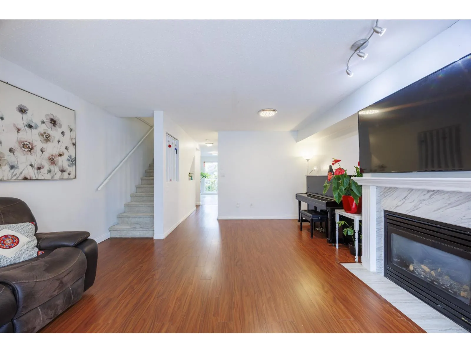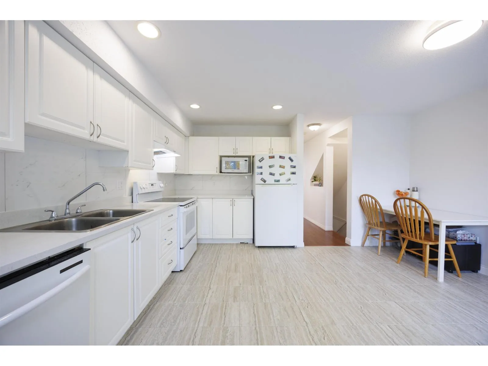 Welcome to Camelot Village! Well-kept 2-bedroom, 2-bath townhouse in the heart of Fleetwood. Walking distance to Frost Road Elementary, Surrey Sports & Leisure Centre, library, shopping, and bus; SkyTrain coming soon! Bright extra-wide living room with gas fireplace and bay window-perfect for relaxing or reading. Spacious primary bedroom with ensuite, plus main bath and laundry upstairs. Oversized tandem garage fits 2 cars with window and storage, plus private yard with access to 164 Street. New carpet, new water-resistant kitchen & bath floors, and new countertops. Quiet, bright, and move-in ready! (id:27476)