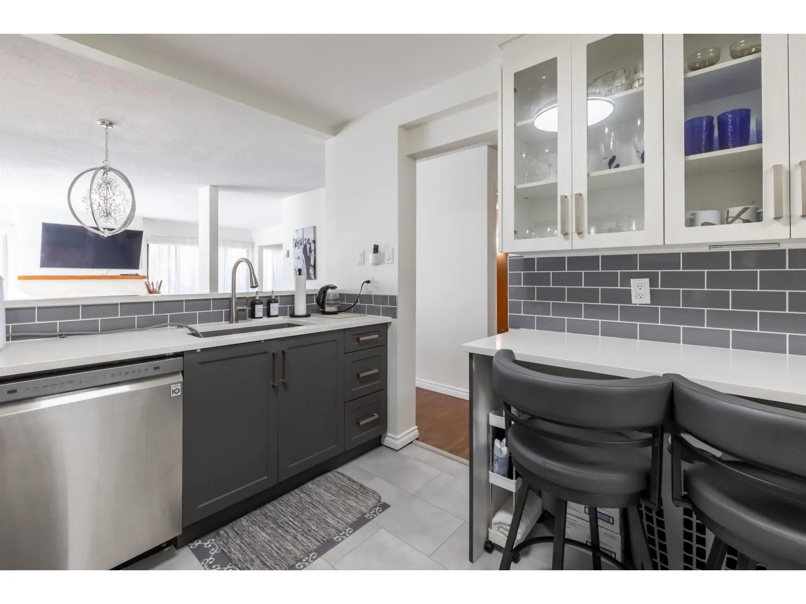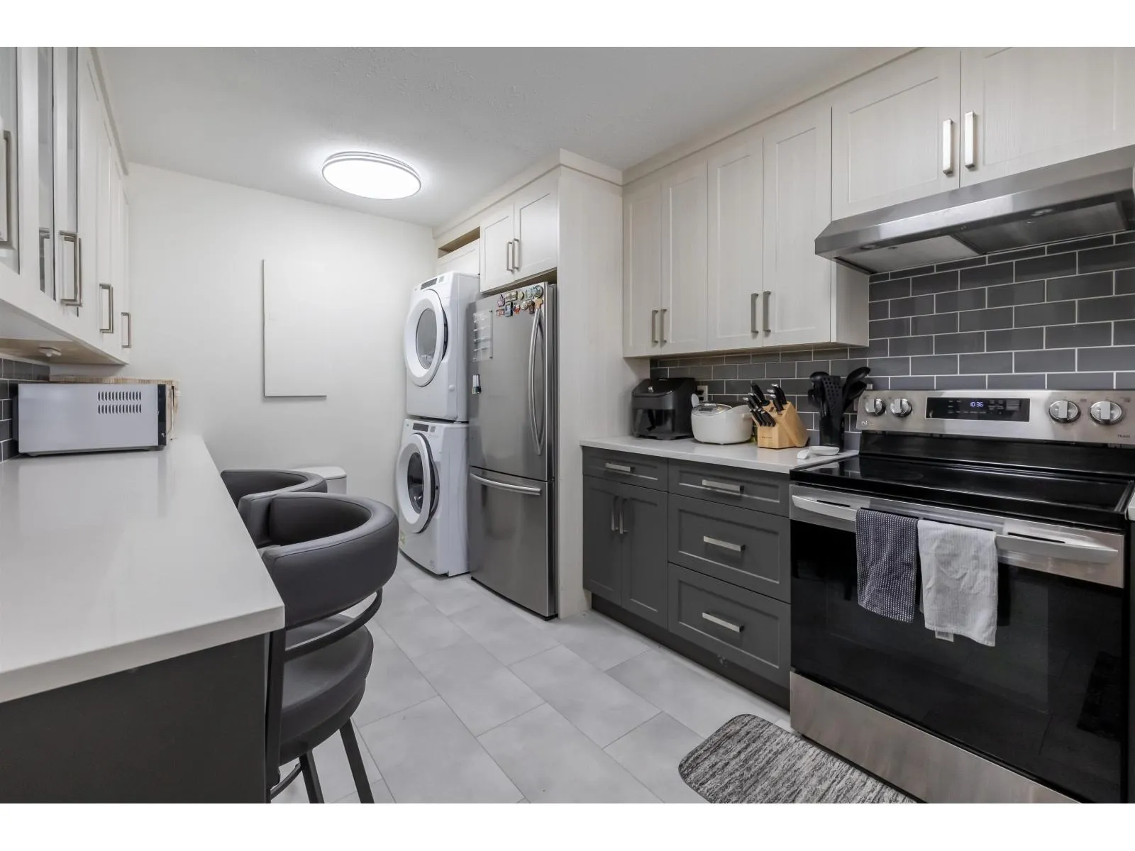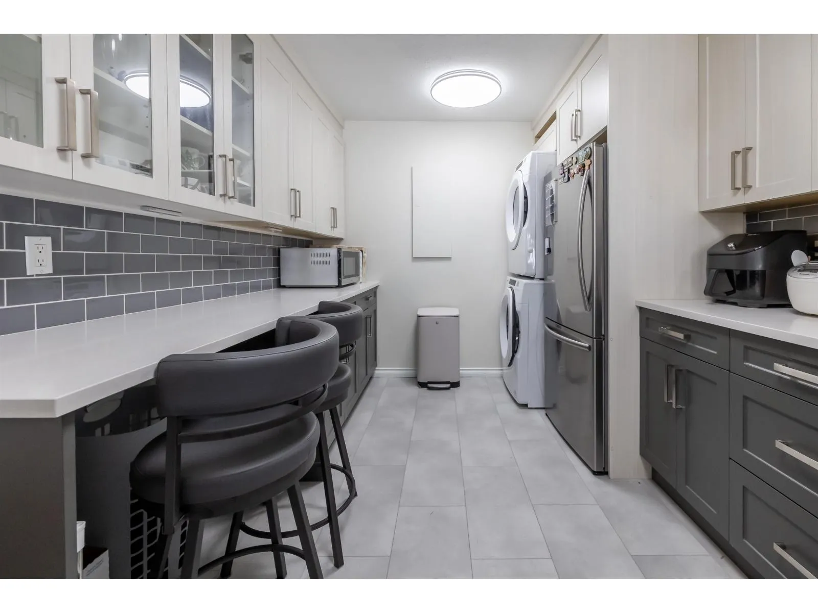 Welcome to the beautifully maintained "Village Terrace" in the heart of South Surrey! This spacious 2-bedroom, 2-bathroom condo offers a bright, open-concept layout with just under 1,300 sq.ft. of living space. Featuring a large living room with a cozy gas fireplace, a well-equipped kitchen, and a serene balcony with park-like views. The primary bedroom boasts a large closet and ensuite bathroom. Includes in-suite laundry, secure underground parking, and access to fantastic amenities. Located steps from shopping, parks, schools, and transit. Perfect for downsizers or first-time buyers! Click Virtual Tour URL for full tour! (id:27476)