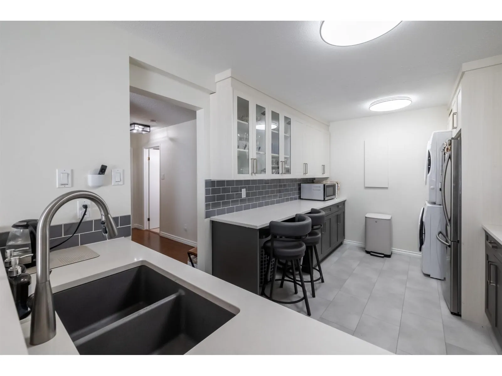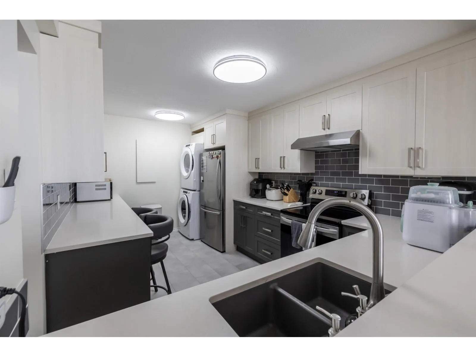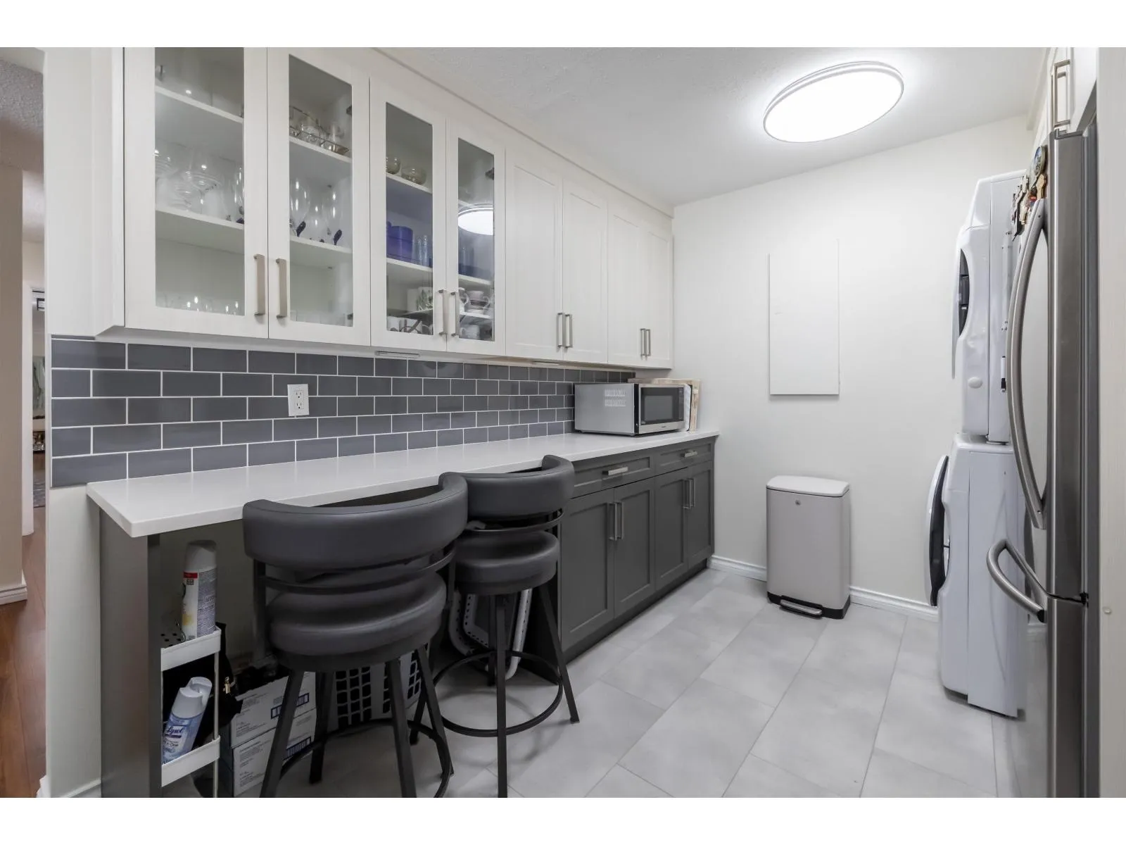 Welcome to the beautifully maintained "Village Terrace" in the heart of South Surrey! This spacious 2-bedroom, 2-bathroom condo offers a bright, open-concept layout with just under 1,300 sq.ft. of living space. Featuring a large living room with a cozy gas fireplace, a well-equipped kitchen, and a serene balcony with park-like views. The primary bedroom boasts a large closet and ensuite bathroom. Includes in-suite laundry, secure underground parking, and access to fantastic amenities. Located steps from shopping, parks, schools, and transit. Perfect for downsizers or first-time buyers! Click Virtual Tour URL for full tour! (id:27476)