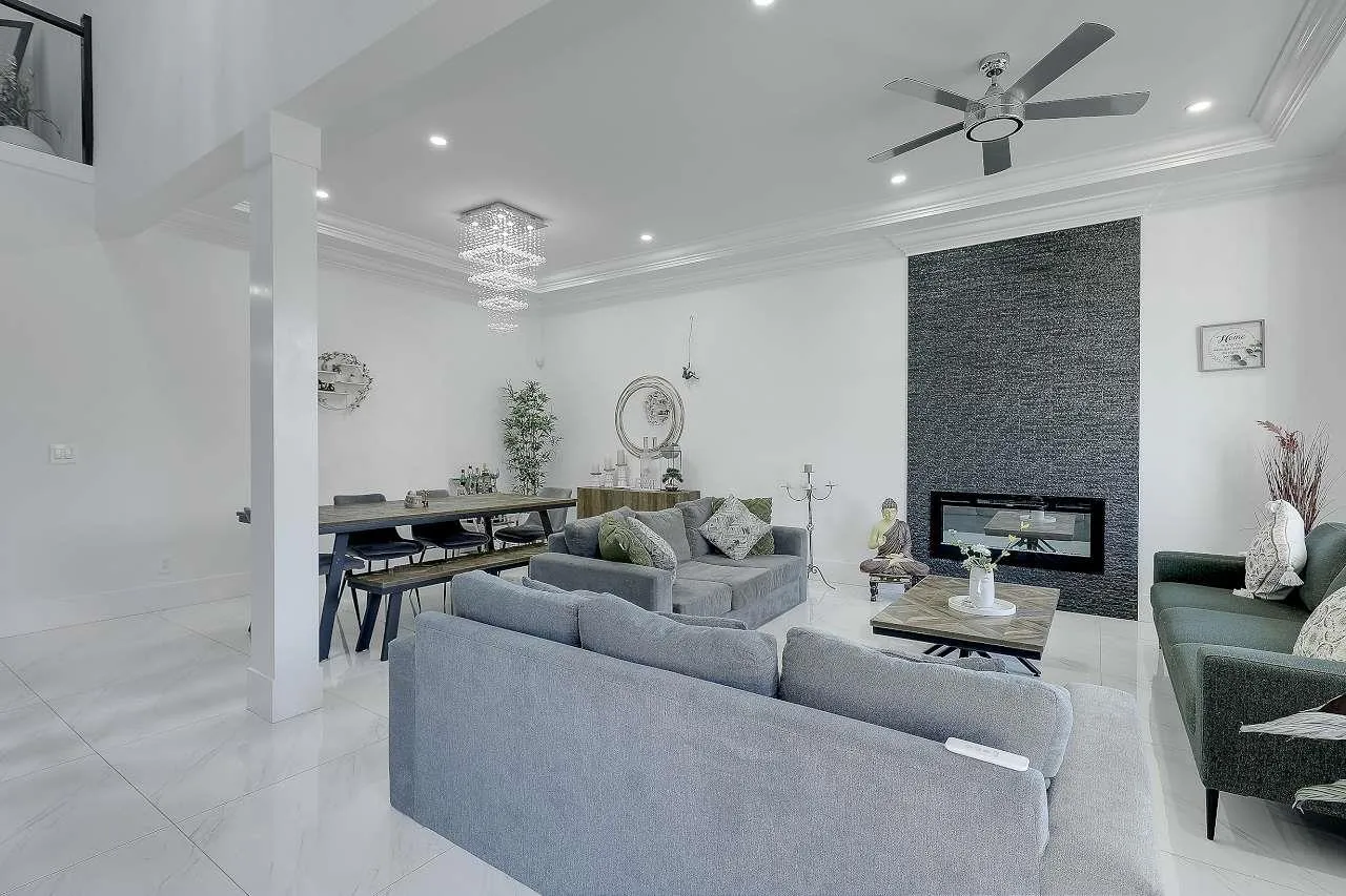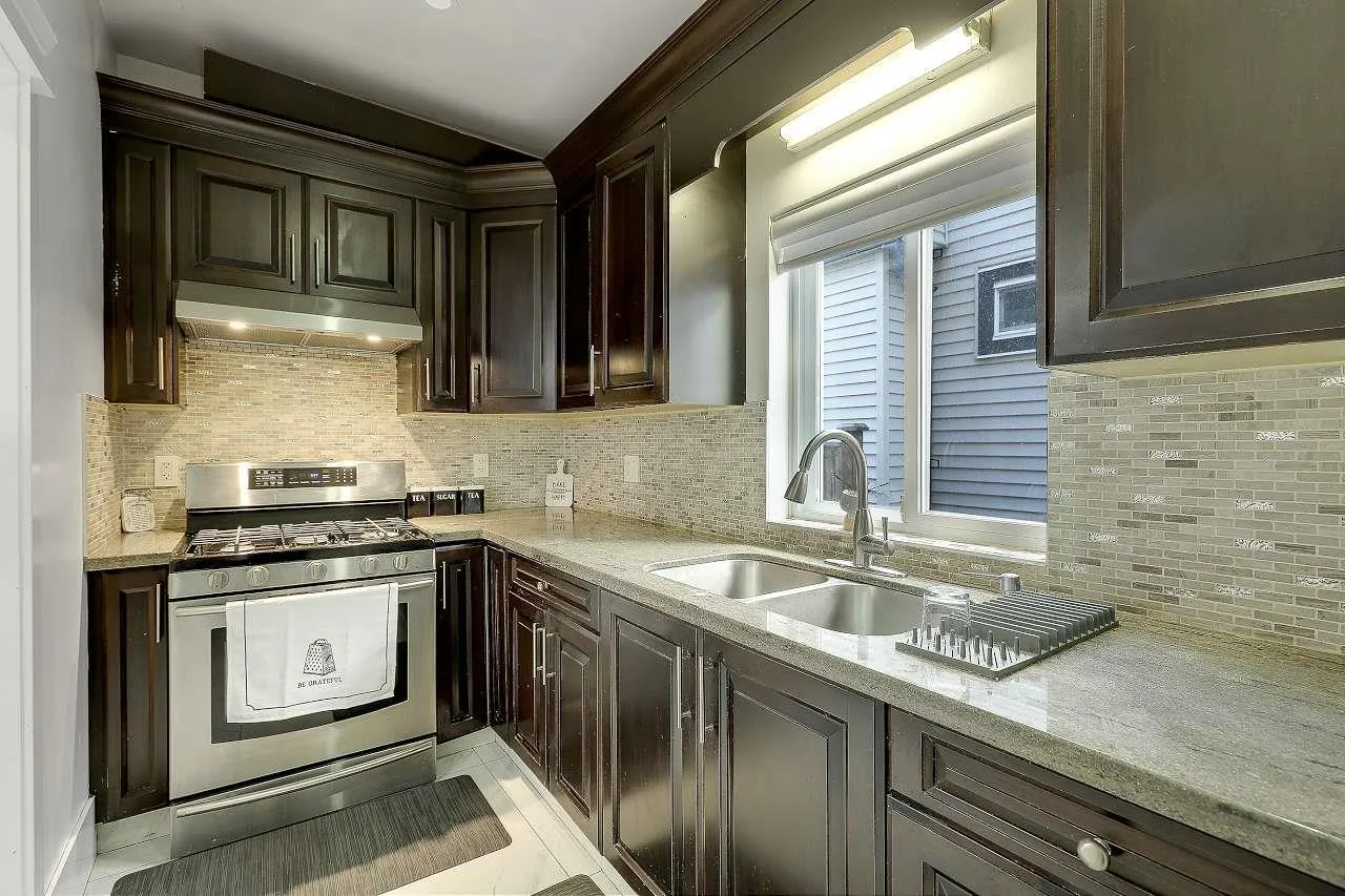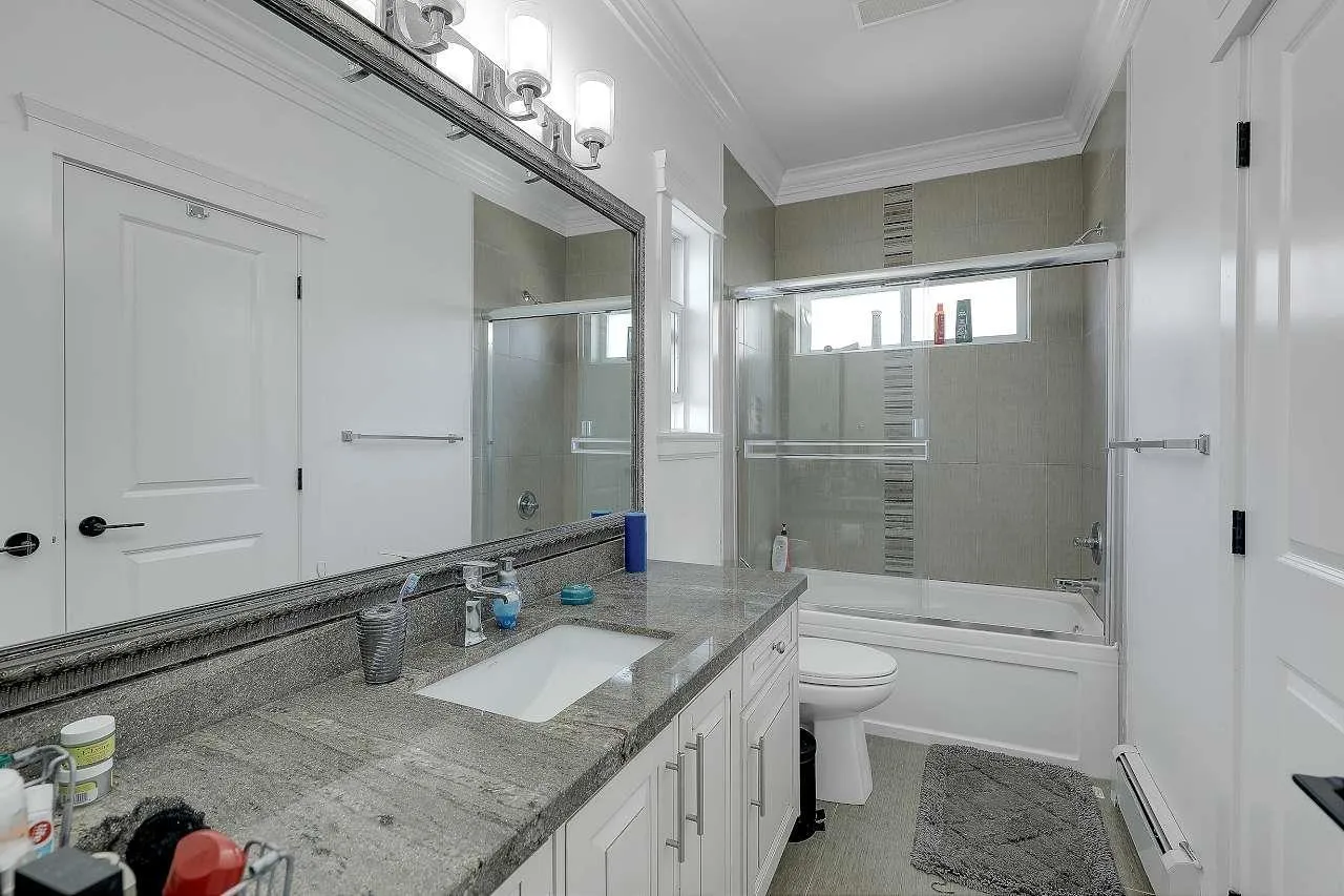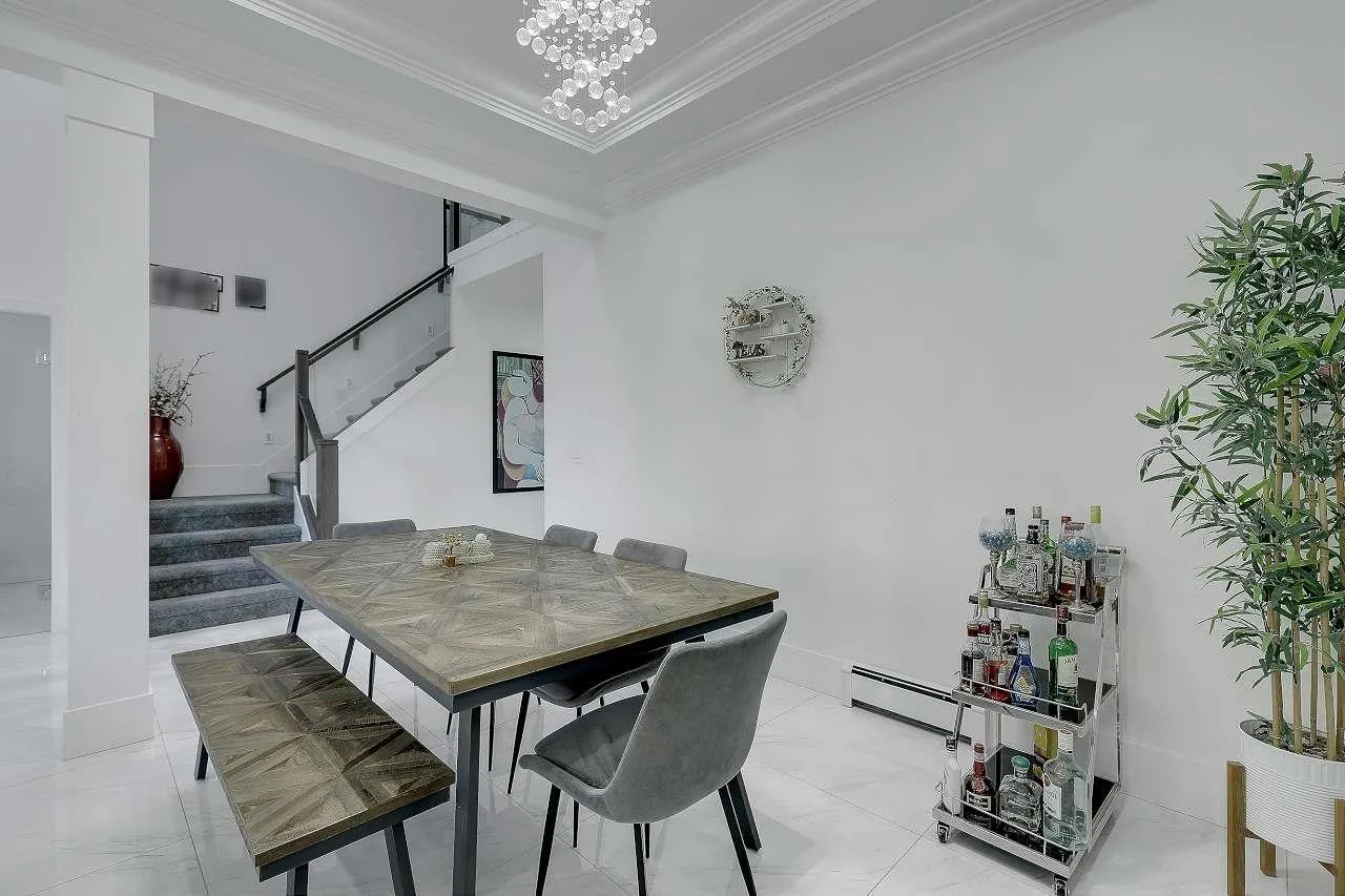 Welcome to this stunning custom-built 3-level home on a 6,167 sq.ft. lot, perfectly positioned backing onto a lush greenbelt for ultimate privacy and tranquility. Freshly renovated and move-in ready, this gem offers 7 bedrooms, 7 bathrooms, and two mortgage-helper basement suites (2+1 unauthorized) bringing in $3,500/month in rental income. Step inside to discover modern updates throughout - fresh paint, flooring, and sleek blinds. The heart of the home is a gorgeous open-concept gourmet kitchen, featuring high-end cabinetry, premium appliances, and a bonus spice kitchen for culinary enthusiasts. Enjoy cozy nights in the media room, drinks in the bar room, and outdoor entertaining on your private deck overlooking the greenbelt.With a gated driveway, ample parking. (id:27476)