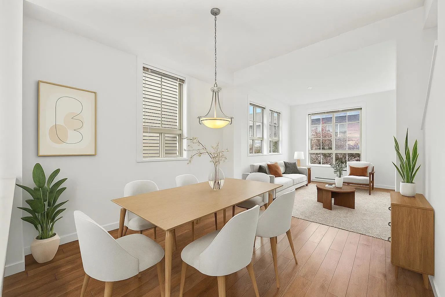 THE MORGAN - A classic Georgian-style townhome developed by the prestigious Mosaic. This bright and spacious 3-bedroom, 2.5-bath 1,314 sqft corner townhome feels like a detached home. Featuring high ceilings and an open-concept layout with large windows, it's filled with natural light and offers plenty of space for family living. The modern kitchen flows seamlessly into the dining and living areas, perfect for entertaining. Upstairs, you'll find 3 bedrooms including a relaxing primary suite with ensuite bath. Enjoy your patio off the kitchen for outdoor relaxation. Located in a highly sought-after area surrounded by parks, great schools, and the everyday amenities of Morgan Crossing. this home offers comfort, style, and convenience in one exceptional package. (id:27476)