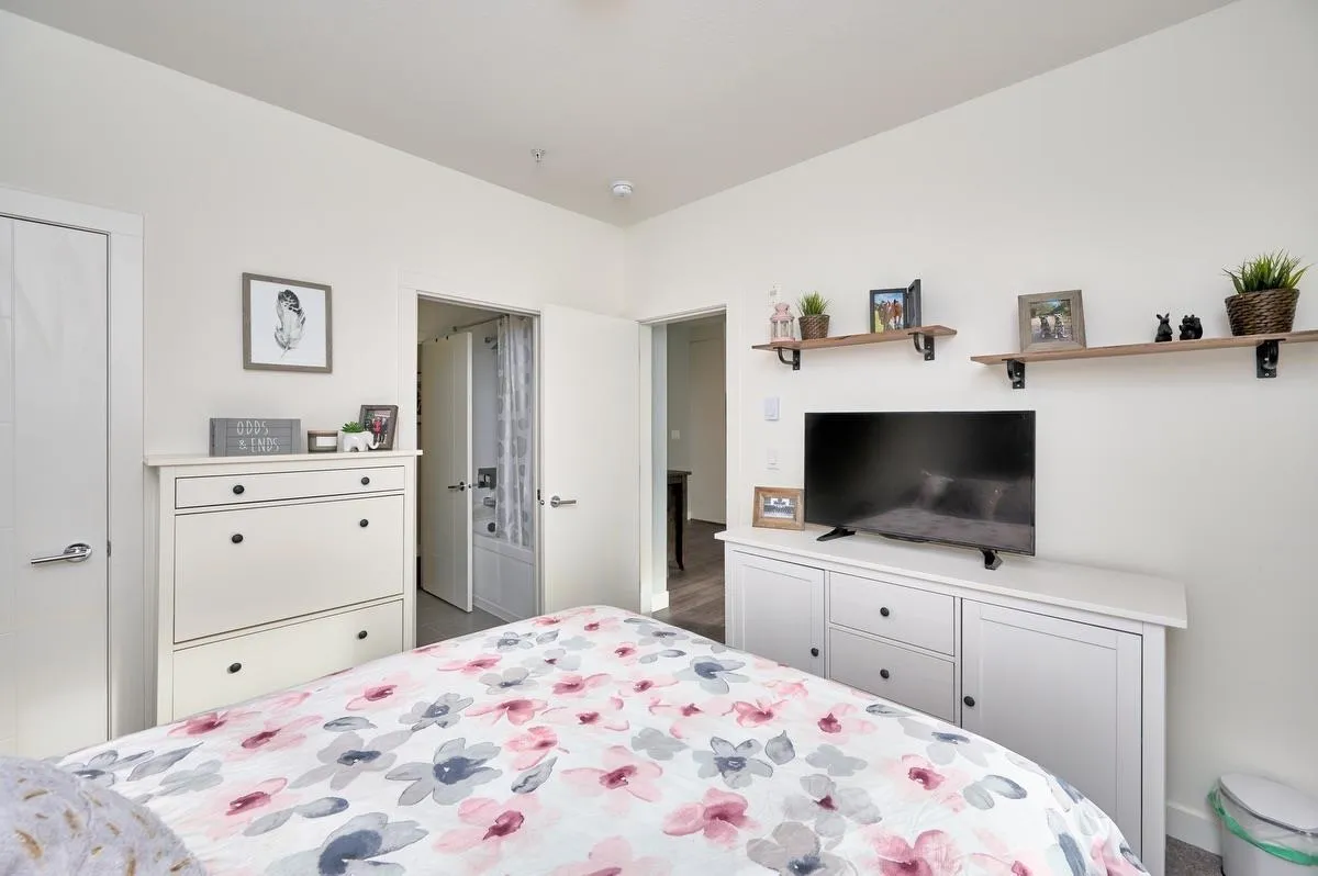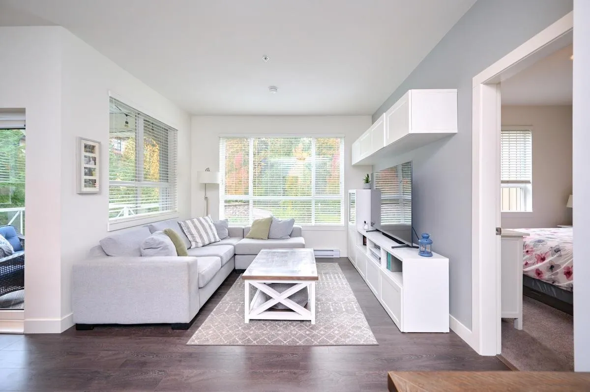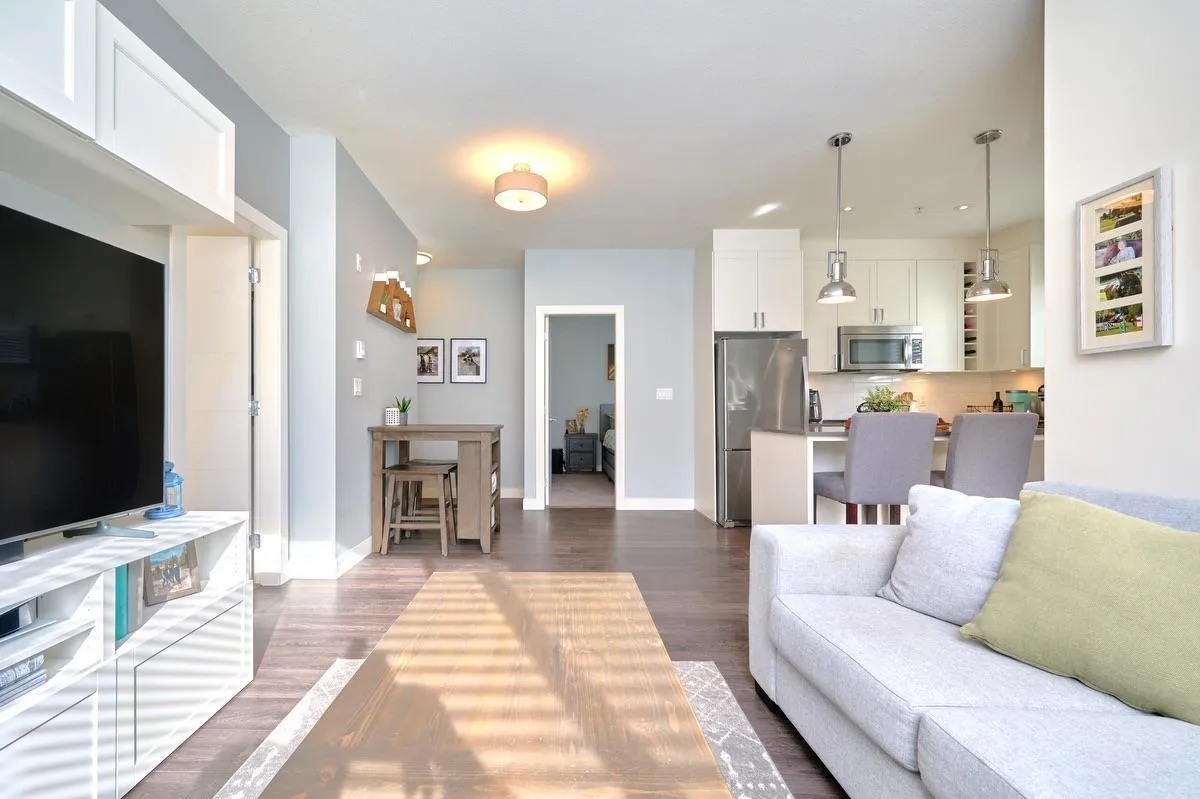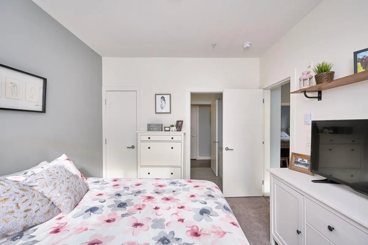 Priced $45,100 below assessed value!2 BED+2 BATH The Ridge at Bose Farms! Surrounded by scenic farmland w/ easy access to the amenities of Surrey, Cloverdale and Clayton. You get country charm & city convenience. This corner unit home has a covered patio & access to Bose Forest Park trails,underground parking, & a secure storage locker. Features new carpet The amenities here can't be beat with a vast community garden, party room with a full chefs kitchen including over the range microwave and adjoining heritage barn that's a beautiful backdrop for family celebrations! The list goes on.. Gym, yoga studio, library, theatre and craft room. (id:27476)