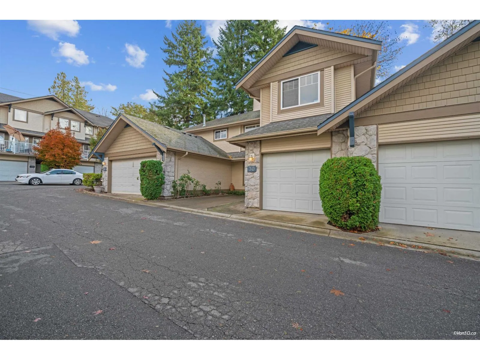 PRICED TO SELL! Don't miss this incredible opportunity at Carlingwood, a sought-after gated community in the heart of Fleetwood. This spacious 3-bedroom, 3-bath townhouse is your blank canvas-ready for your decorating ideas! The moment you walk in, the soaring high ceilings in the living room create an airy, elegant feel that sets this home apart. The main floor features a formal dining area, powder room, and a bright south-facing L-shaped kitchen with plenty of counter space, seamlessly connected to the cozy family room and patio access. Upstairs offers three generous bedrooms, including a primary suite with walk-in closet and private ensuite. Maintenance fee includes sewer, water, and garbage collection. Private showings only-book your appointment today! (id:27476)