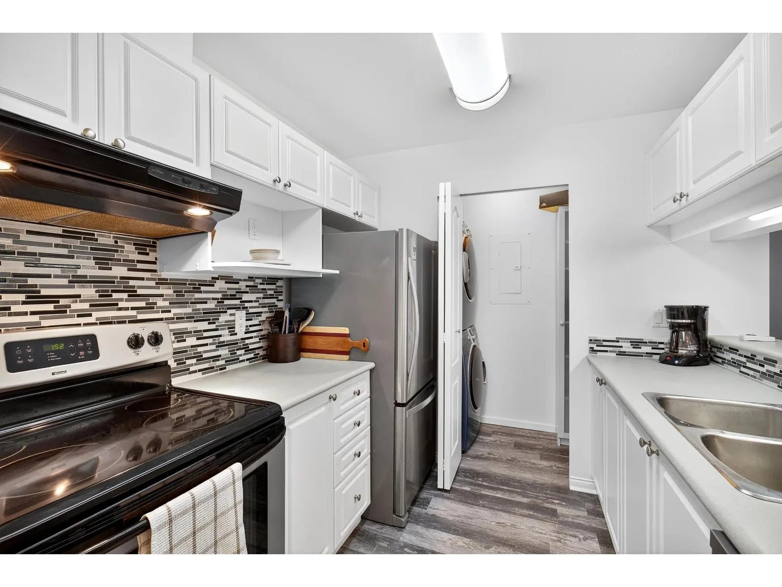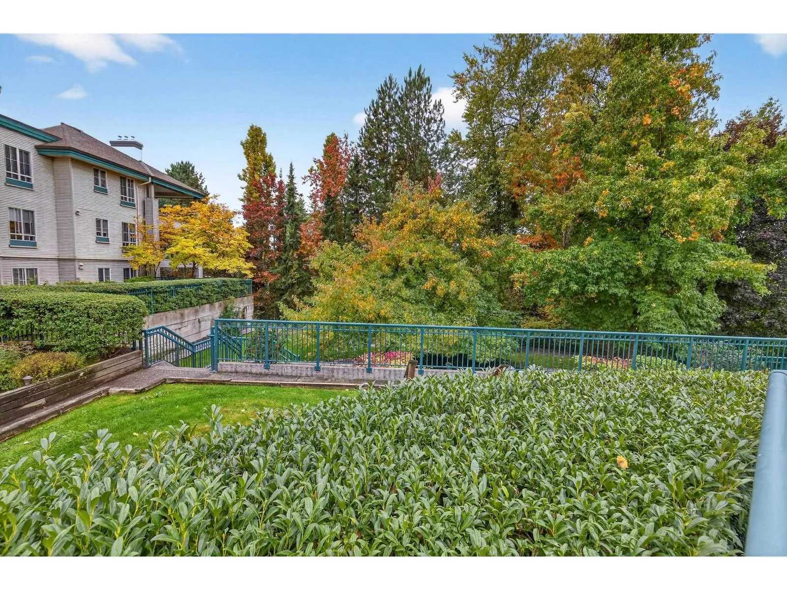 Top Floor at The Fairmont. Get inside this fabulous Top Floor 2 bed unit situated far back from the Fraser Hwy and at the back of the building with 10 foot ceilings close to everything in beautiful Langley. This unit offers an amazing floor plan with a spacious open living/dining area with a cozy gas fireplace and sliders leading to a covered balcony (SW) w beautiful courtyard and manicured gardens to enjoy year round. The bedrooms are located at opposite ends of the unit for extra privacy and the Primary has a nice walk in closet. The bright kitchen has enough room for 4 barstools at the breakfast bar and separate laundry/pantry area behind bifold doors. Steps to Langley's future skytrain, amazing restaurants, transit, shopping and the list goes on. Gas/Hot Water Included. (id:27476)