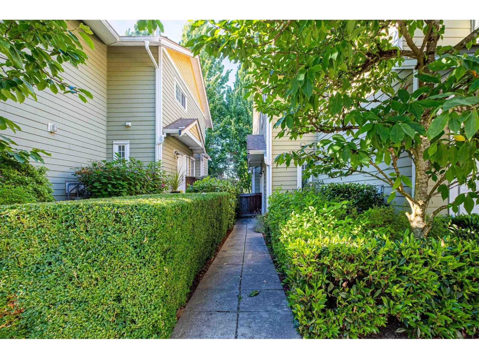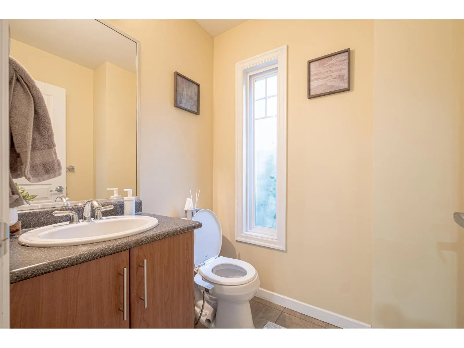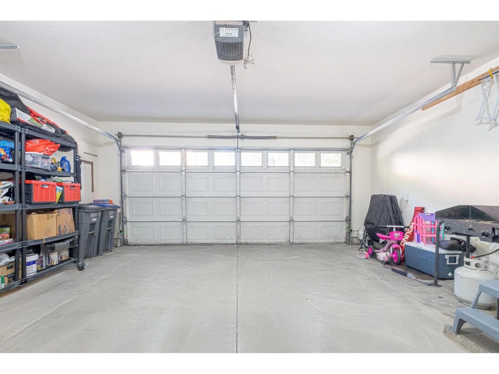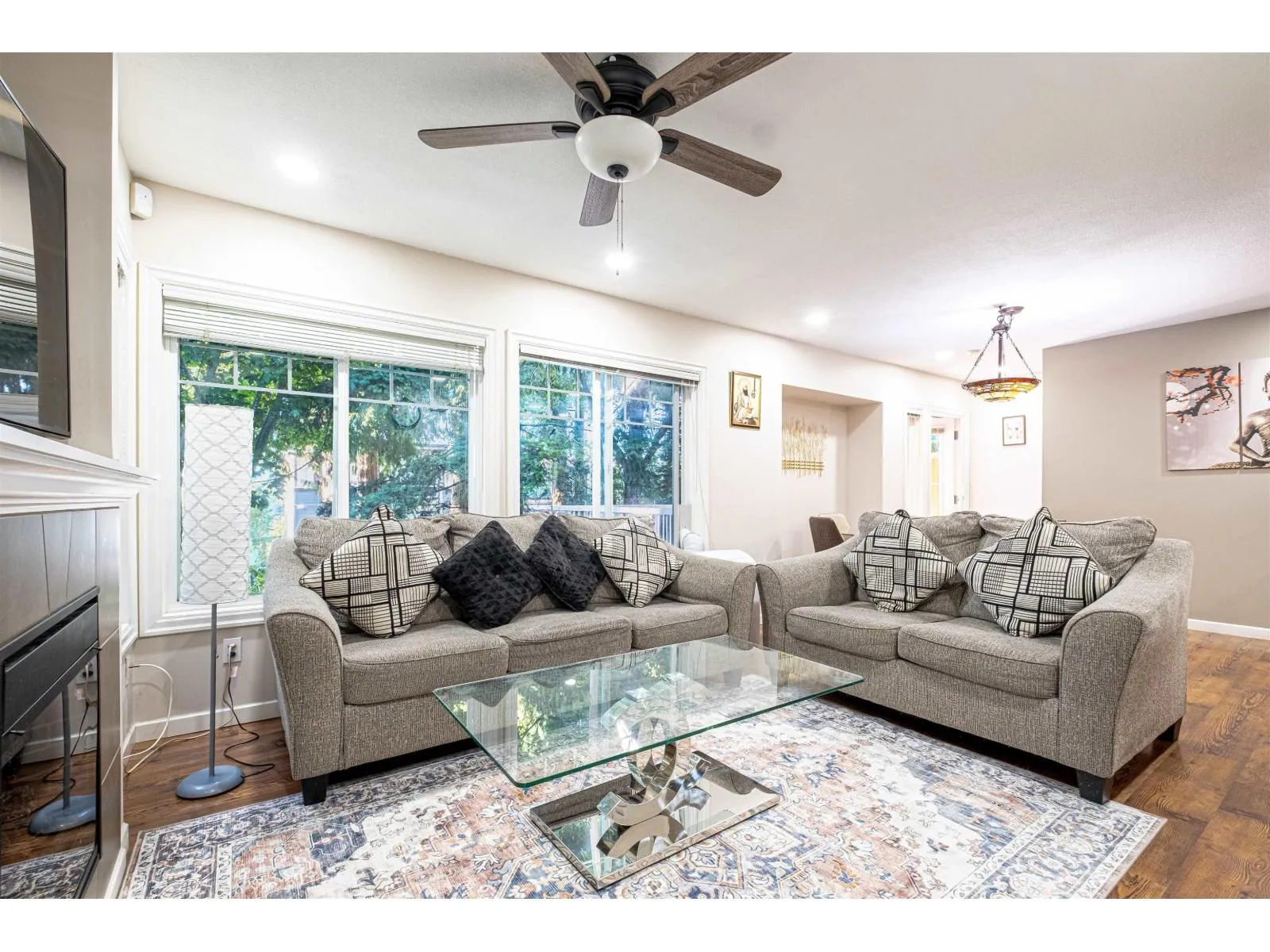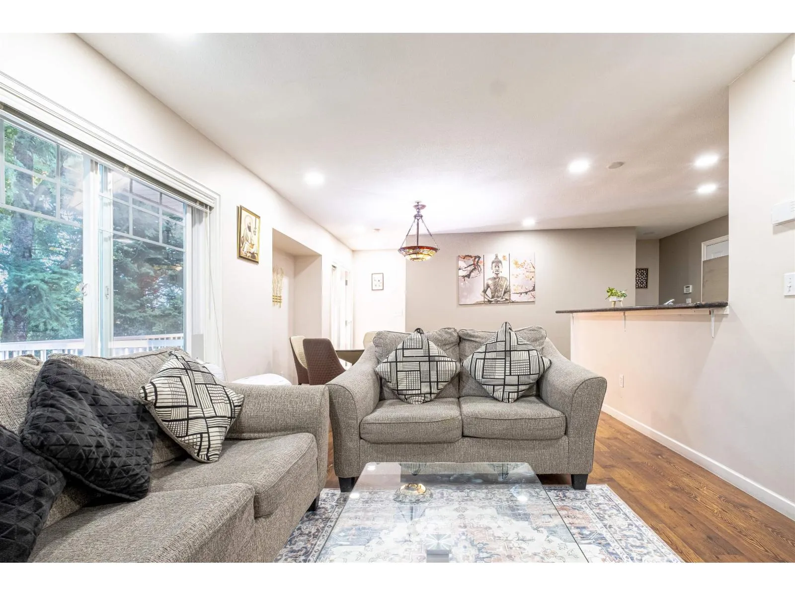 Nestled in the desirable community of Seneca Woods, this well-maintained duplex-style townhome offers over 2,000 sq ft of functional living space, with a fully fenced yard backing onto greenbelt for added privacy. The bright main floor features large windows, a spacious layout, and access to both a patio and deck-ideal for indoor-outdoor living. Recent updates include laminate flooring on the main and upper levels, new stairwell carpet, updated kitchen appliances, washer/dryer (approx. 2 years), and newer furnace and hot water tank. The generous lower-level rec room offers flexible use and can easily be converted into a fourth bedroom. Complete with a powder room on the main and a double garage. Family-friendly complex with a small community garden, close to schools, transit, and shopping. (id:27476)