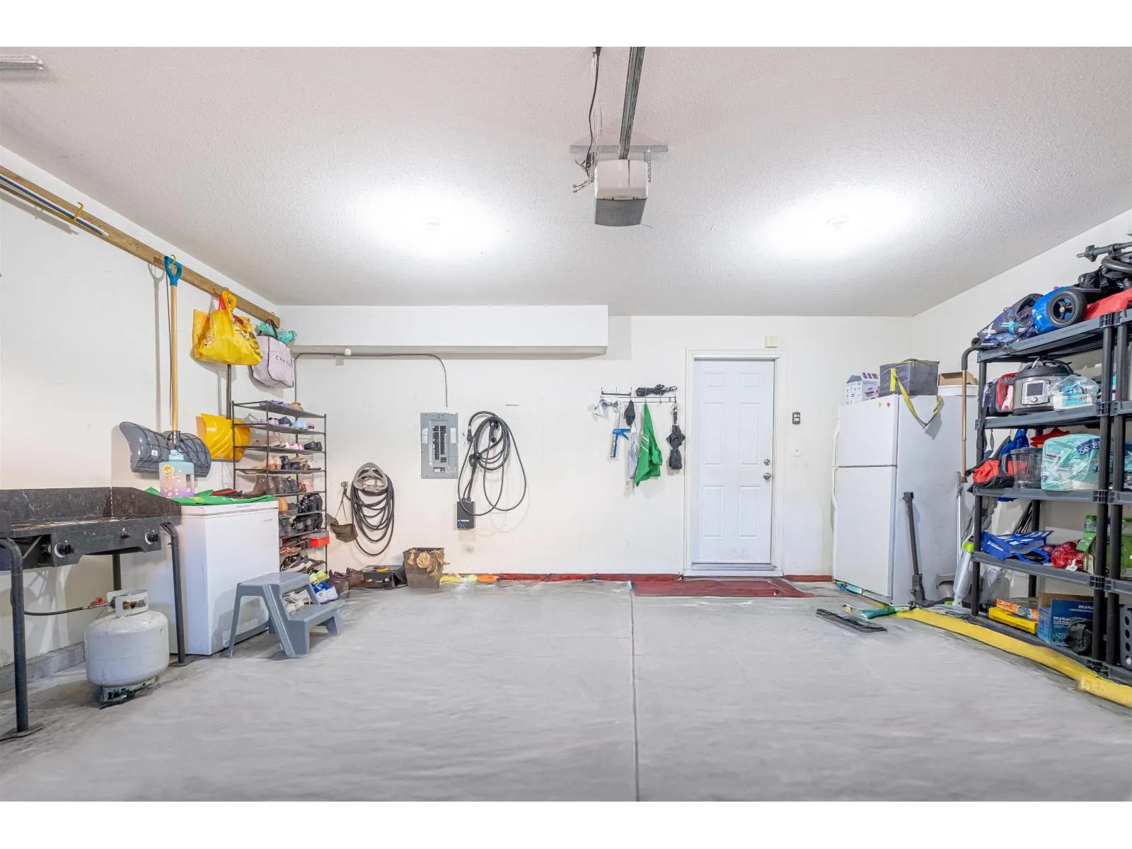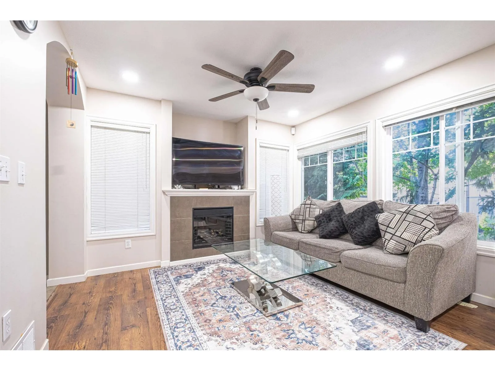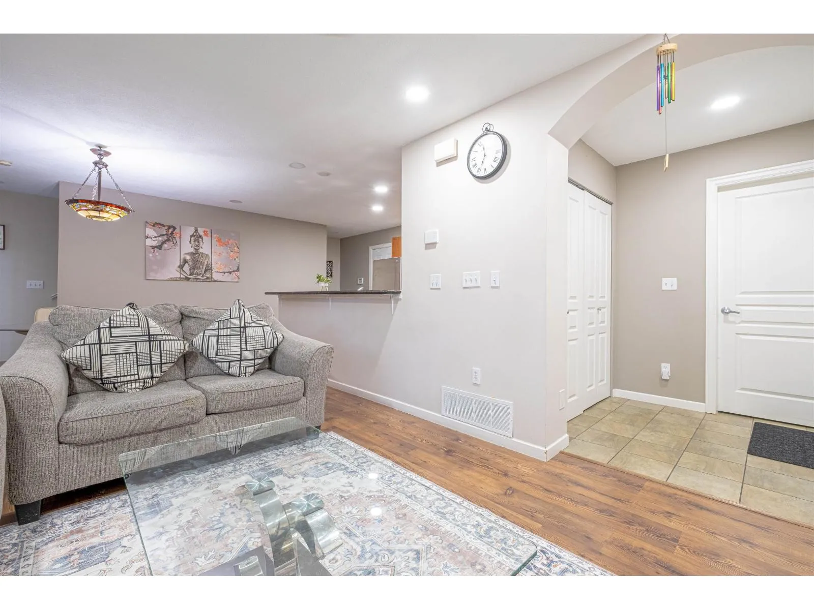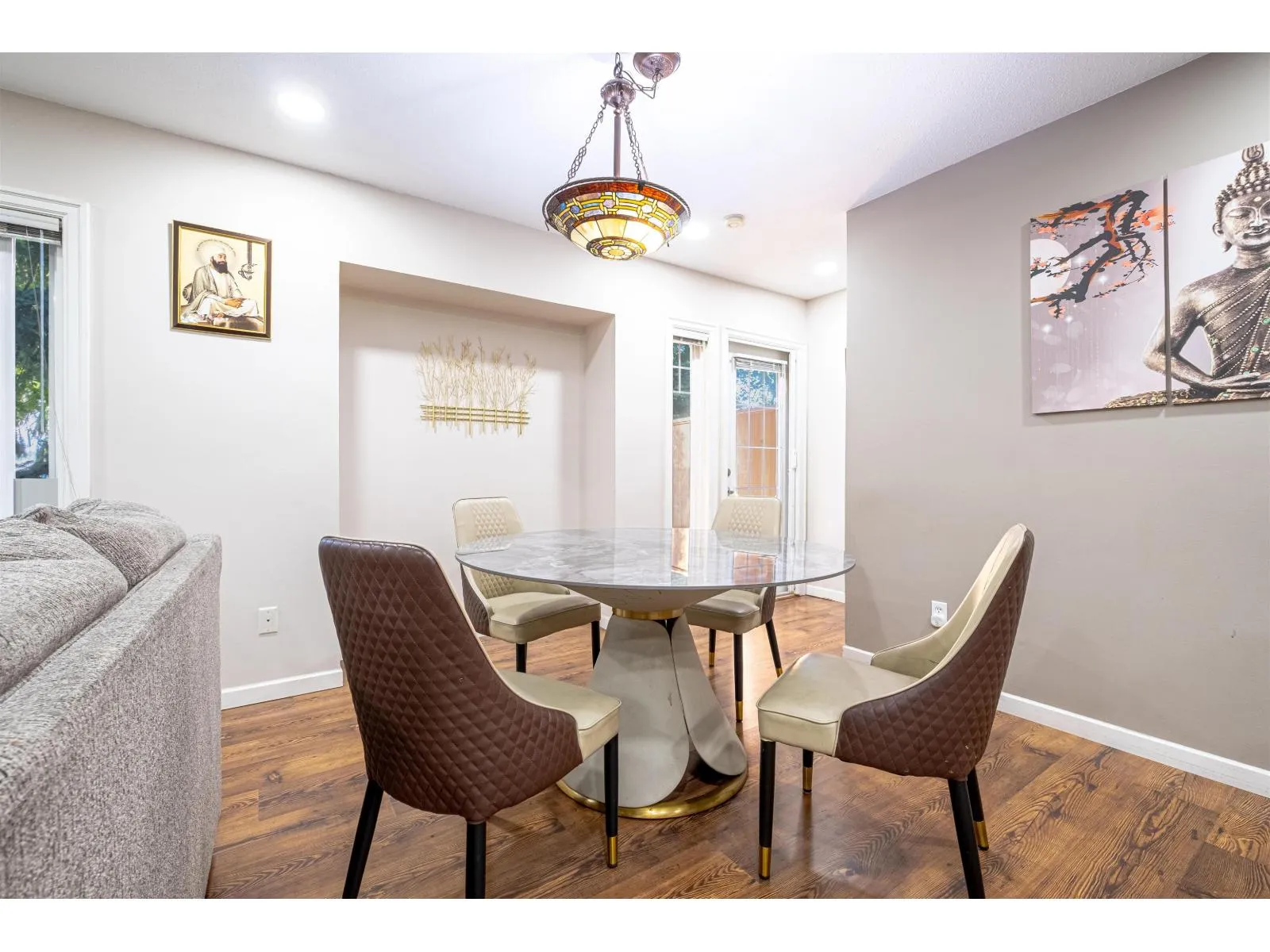 Nestled in the desirable community of Seneca Woods, this well-maintained duplex-style townhome offers over 2,000 sq ft of functional living space, with a fully fenced yard backing onto greenbelt for added privacy. The bright main floor features large windows, a spacious layout, and access to both a patio and deck-ideal for indoor-outdoor living. Recent updates include laminate flooring on the main and upper levels, new stairwell carpet, updated kitchen appliances, washer/dryer (approx. 2 years), and newer furnace and hot water tank. The generous lower-level rec room offers flexible use and can easily be converted into a fourth bedroom. Complete with a powder room on the main and a double garage. Family-friendly complex with a small community garden, close to schools, transit, and shopping. (id:27476)
