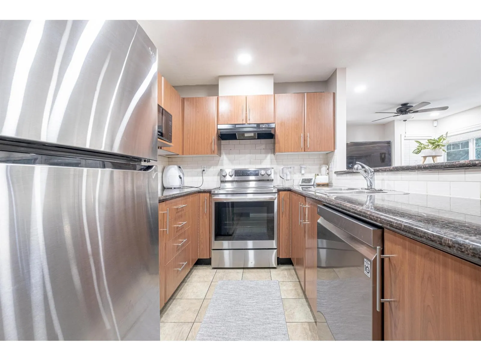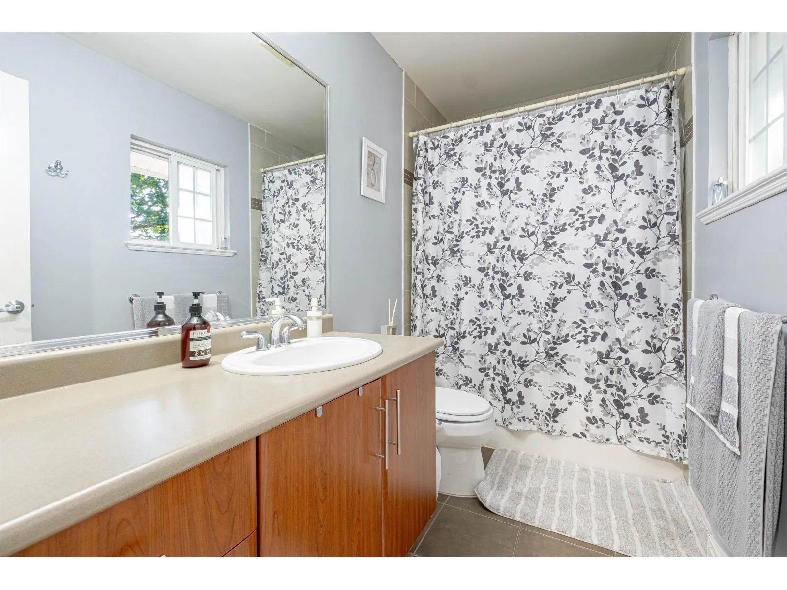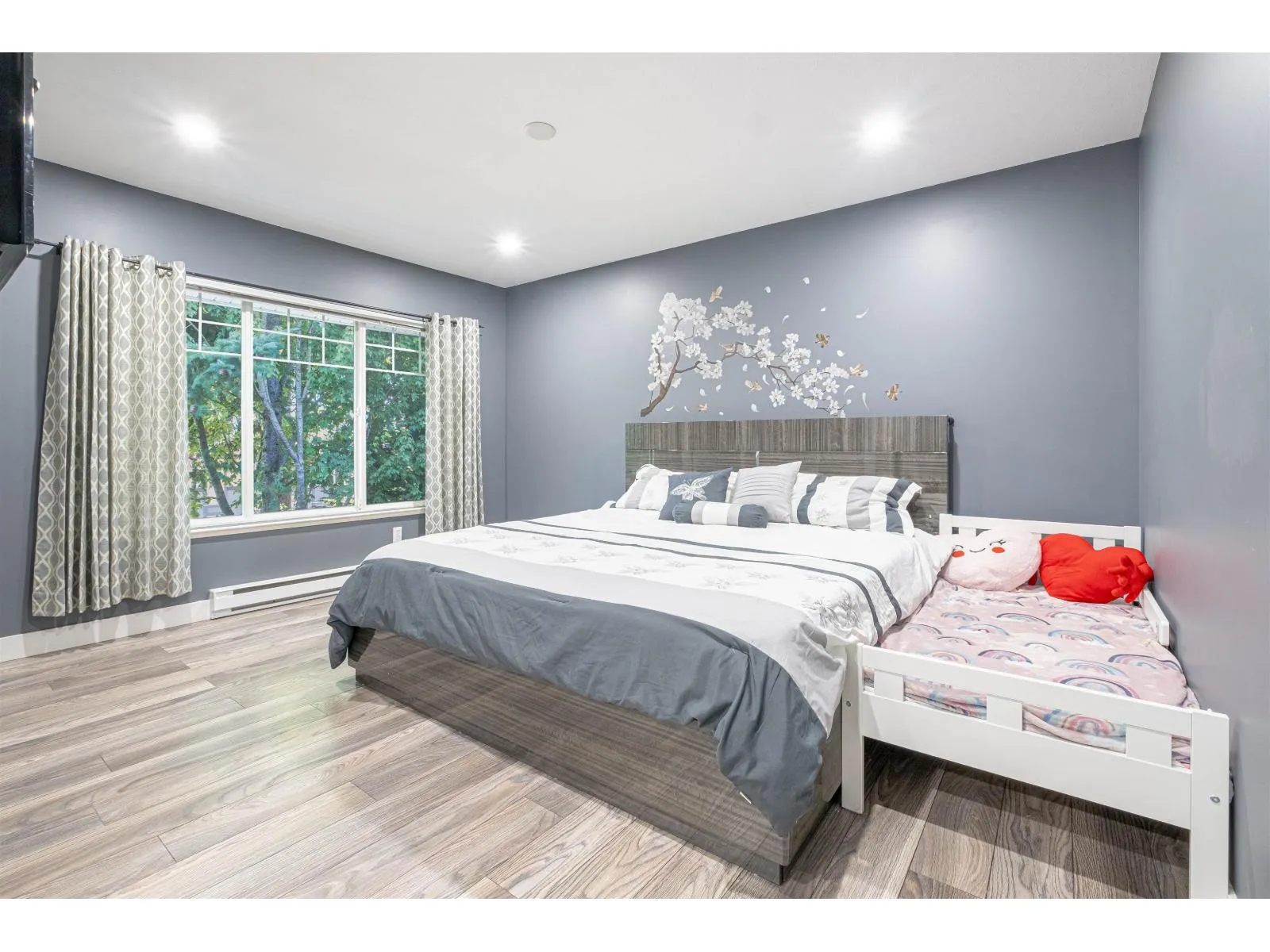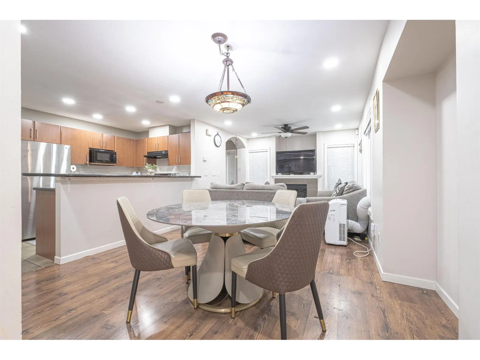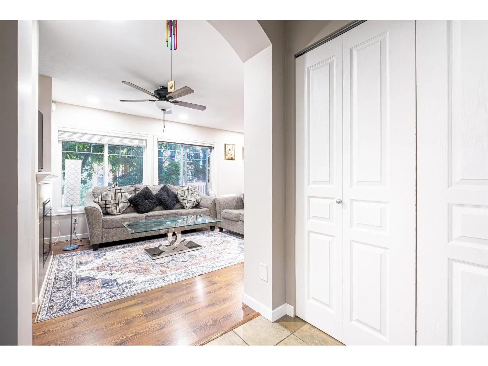 Nestled in the desirable community of Seneca Woods, this well-maintained duplex-style townhome offers over 2,000 sq ft of functional living space, with a fully fenced yard backing onto greenbelt for added privacy. The bright main floor features large windows, a spacious layout, and access to both a patio and deck-ideal for indoor-outdoor living. Recent updates include laminate flooring on the main and upper levels, new stairwell carpet, updated kitchen appliances, washer/dryer (approx. 2 years), and newer furnace and hot water tank. The generous lower-level rec room offers flexible use and can easily be converted into a fourth bedroom. Complete with a powder room on the main and a double garage. Family-friendly complex with a small community garden, close to schools, transit, and shopping. (id:27476)