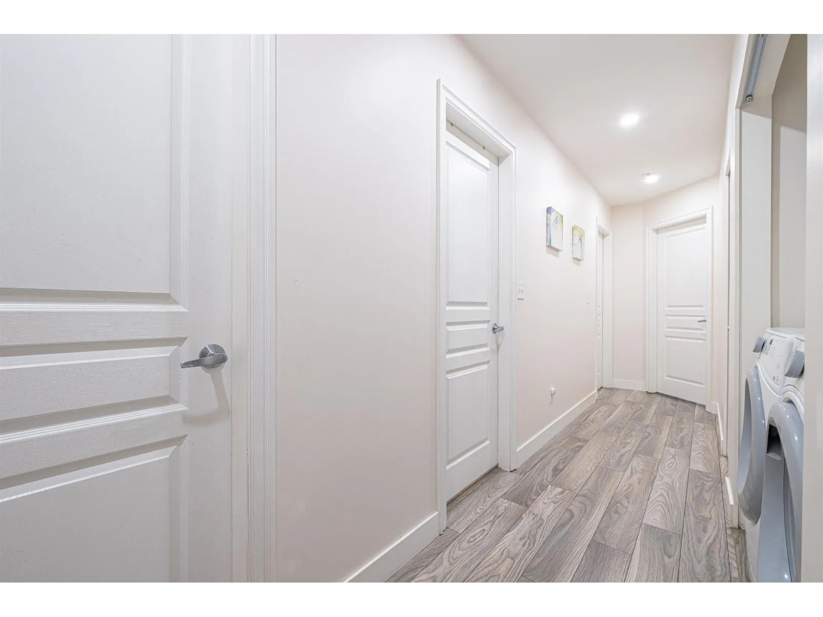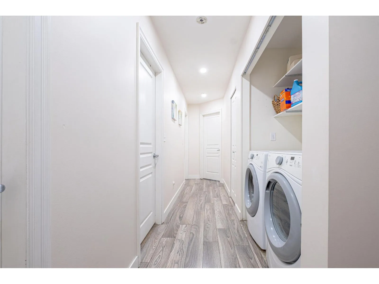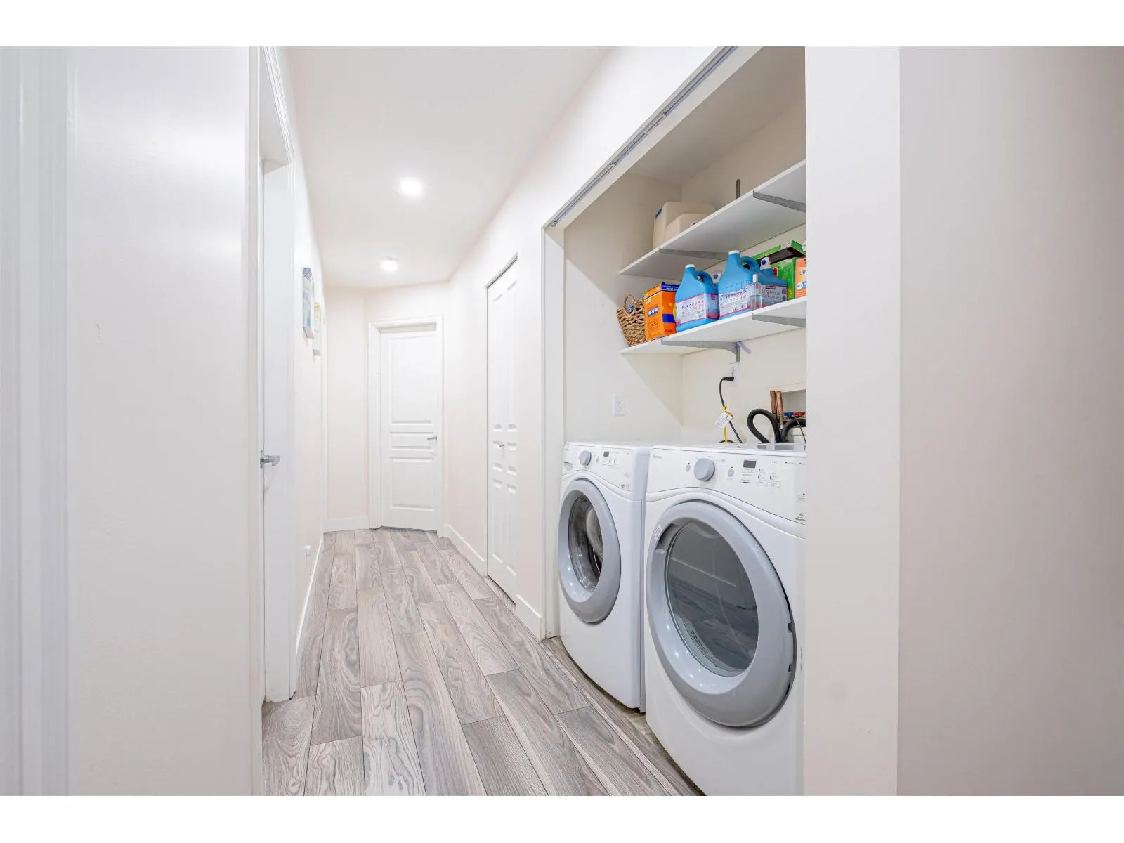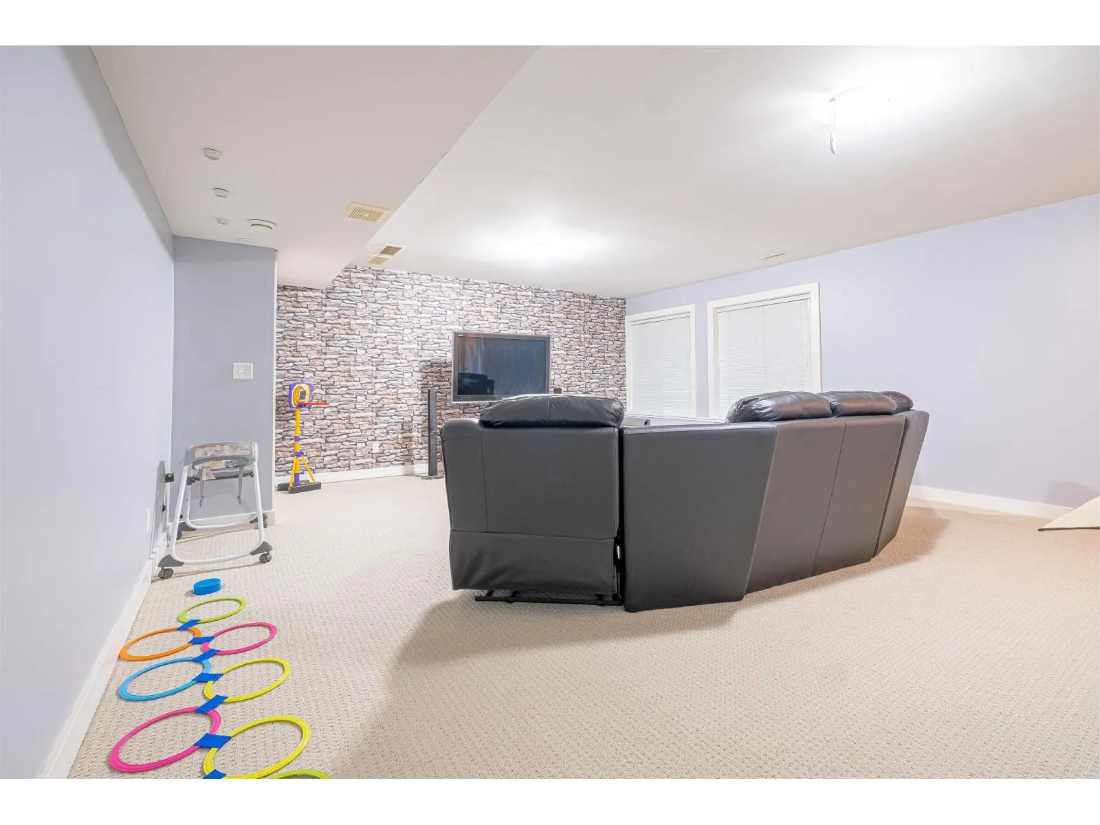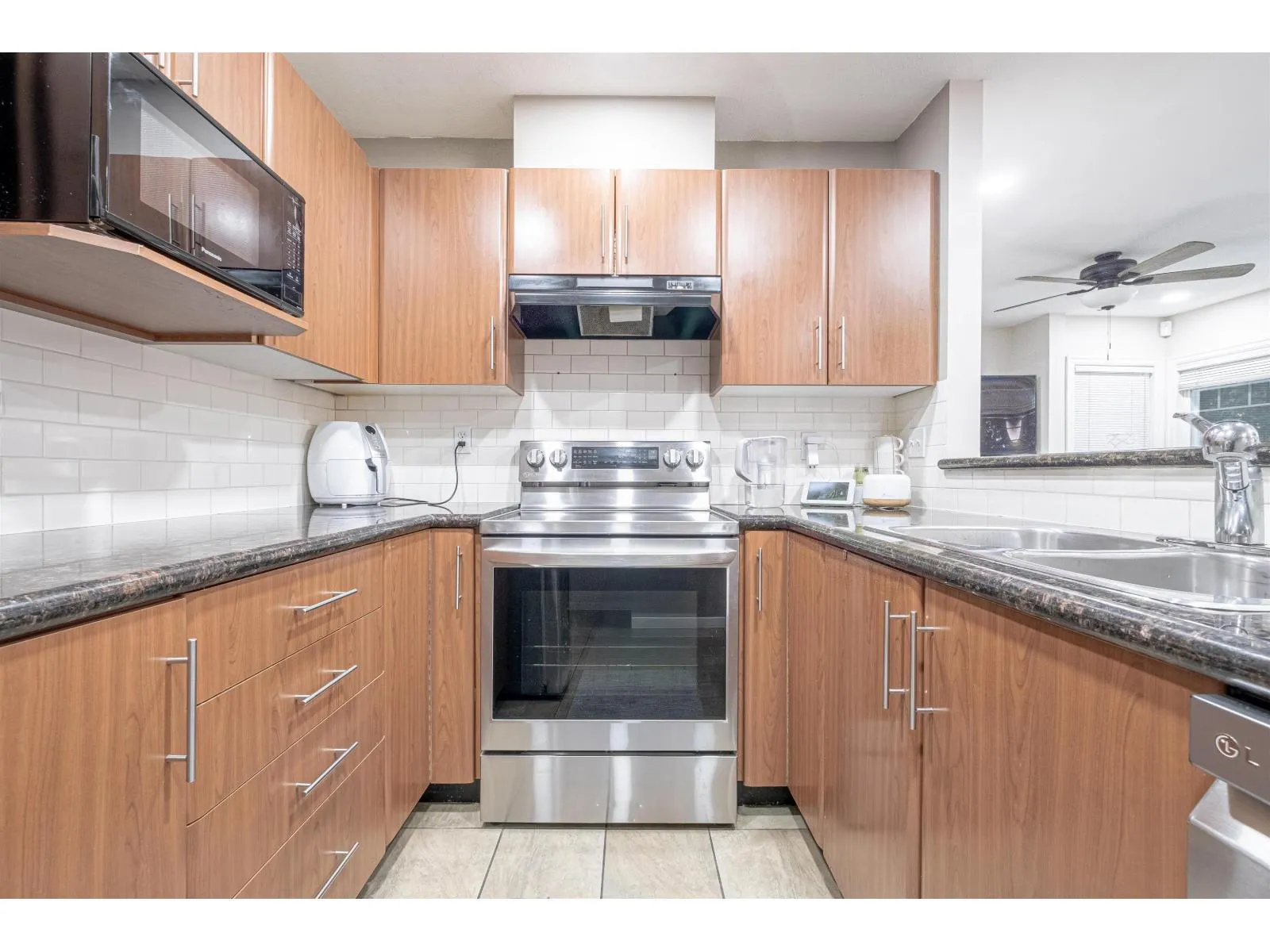 Nestled in the desirable community of Seneca Woods, this well-maintained duplex-style townhome offers over 2,000 sq ft of functional living space, with a fully fenced yard backing onto greenbelt for added privacy. The bright main floor features large windows, a spacious layout, and access to both a patio and deck-ideal for indoor-outdoor living. Recent updates include laminate flooring on the main and upper levels, new stairwell carpet, updated kitchen appliances, washer/dryer (approx. 2 years), and newer furnace and hot water tank. The generous lower-level rec room offers flexible use and can easily be converted into a fourth bedroom. Complete with a powder room on the main and a double garage. Family-friendly complex with a small community garden, close to schools, transit, and shopping. (id:27476)