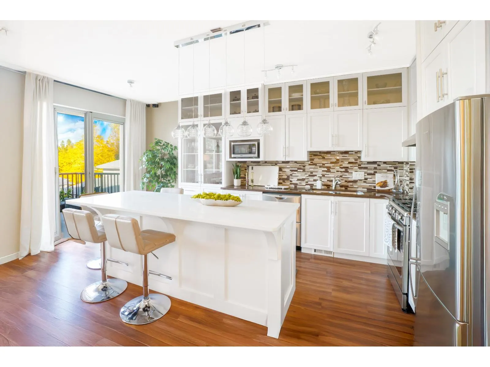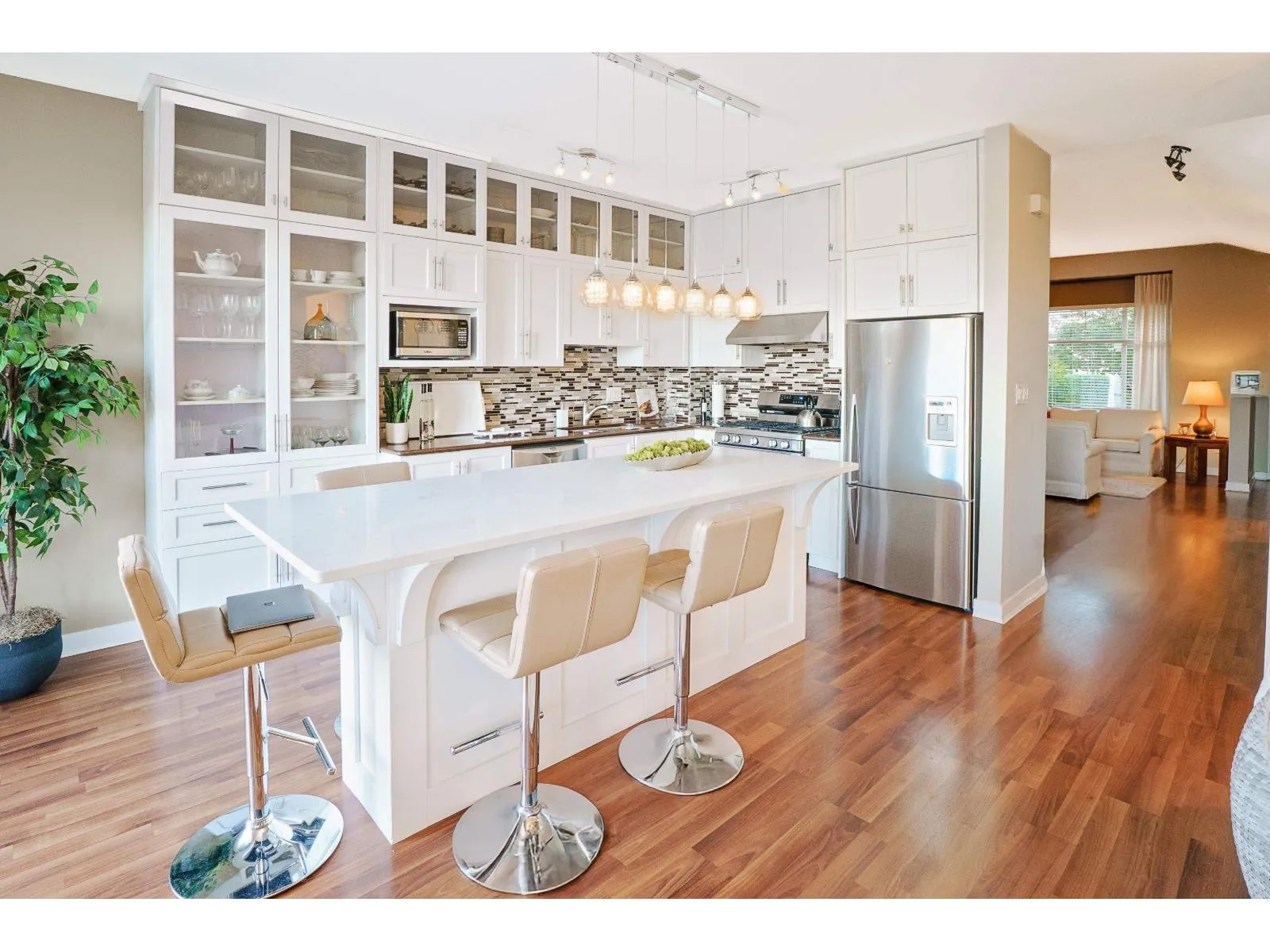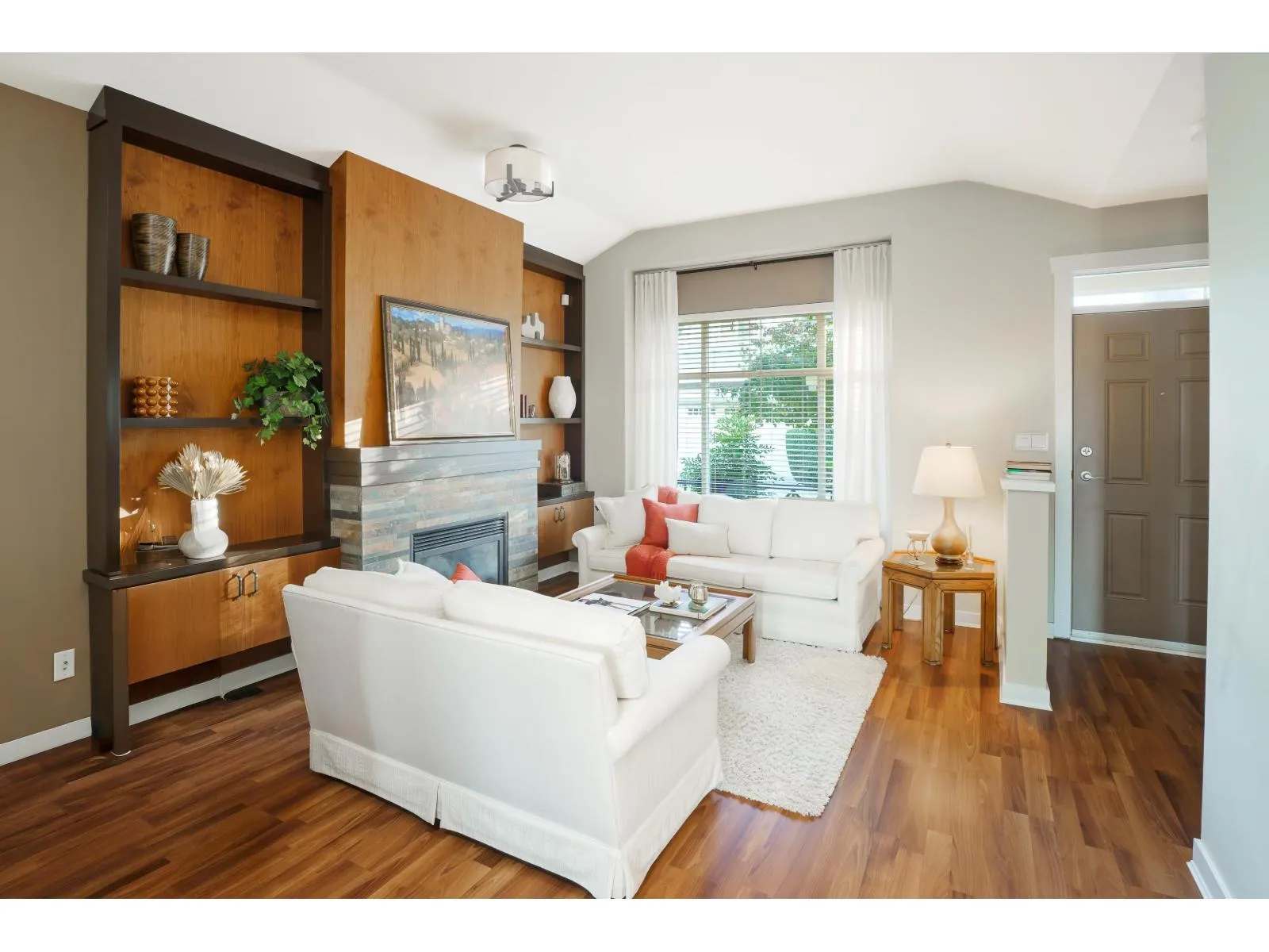 Gorgeous Townhouse stunning rancher w/ a walkout deck offers breathtaking views of the North Shore mountains, featuring a spacious main living area that seamlessly connects to a large deck-perfect for outdoor entertaining and summer barbecues. Enjoy the charm of the small garden and a lower patio area. Inside, vaulted ceilings & built-in cabinets enhancing the elegant ambiance. Customized gas fireplace with beautiful stonework adds a cozy touch. The professionally designed kitchen, luxurious renovated en-suite features double sinks, rain shower w/ professionally installed built-ins. This delightful home feels like a retreat, complete with an office that has custom built-ins. The complex offers exceptional amenities: a resort-like clubhouse, swimming pool, hot tub, outdoor barbecue, two gyms, a rentable clubhouse with a kitchen, bar, pool table, indoor hockey rink, movie theater, and guest suites. Experience the perfect blend of luxury and comfort in this remarkable townhouse (id:27476)