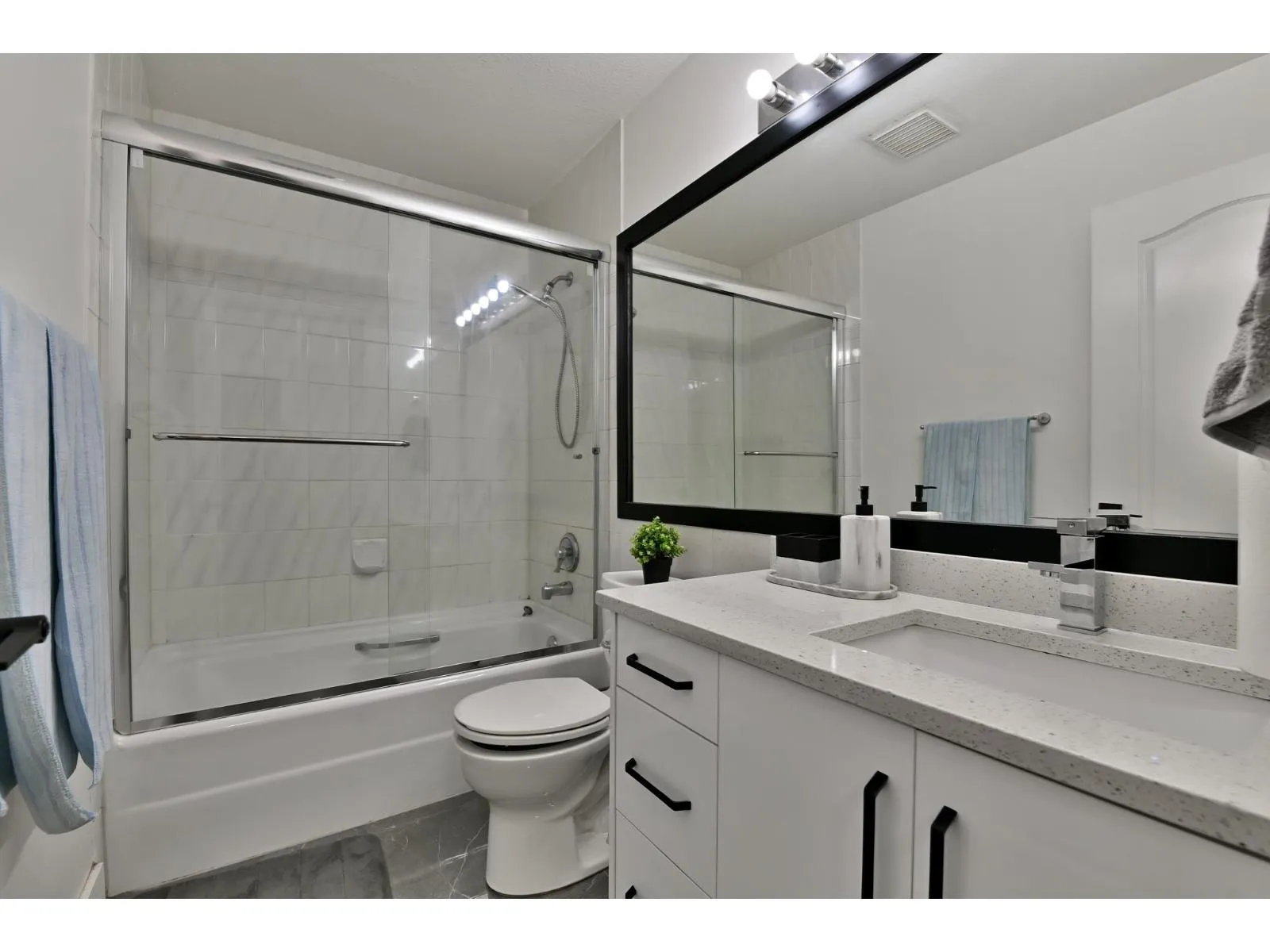 UPPER FLOOR CORNER UNIT! Centrally located in the heart of Newton. Welcome to Tudor Park. Rarely available FULLY RENOVATED 2 bed/2 full bath, 1205 sq.ft open floorplan w/huge private covered patio. It has spacious & bright living area, large bedrooms, separate dining room, insuite laundry & quality finishings throughout, large primary bedroom boasts an ensuite bathroom, walk-in closet & large windows throughout the home allow for an abundance of natural light, creating a warm & inviting atmosphere(gas fireplace, hot water included in strata fee).Amenities; outdoor swimming pool, tennis courts, hot tub, gym, clubhouse/party room & guest suite. Conveniently located within walking distance to grocery stores, shops and Newton Exchange. This one won't last long!! (id:27476)
