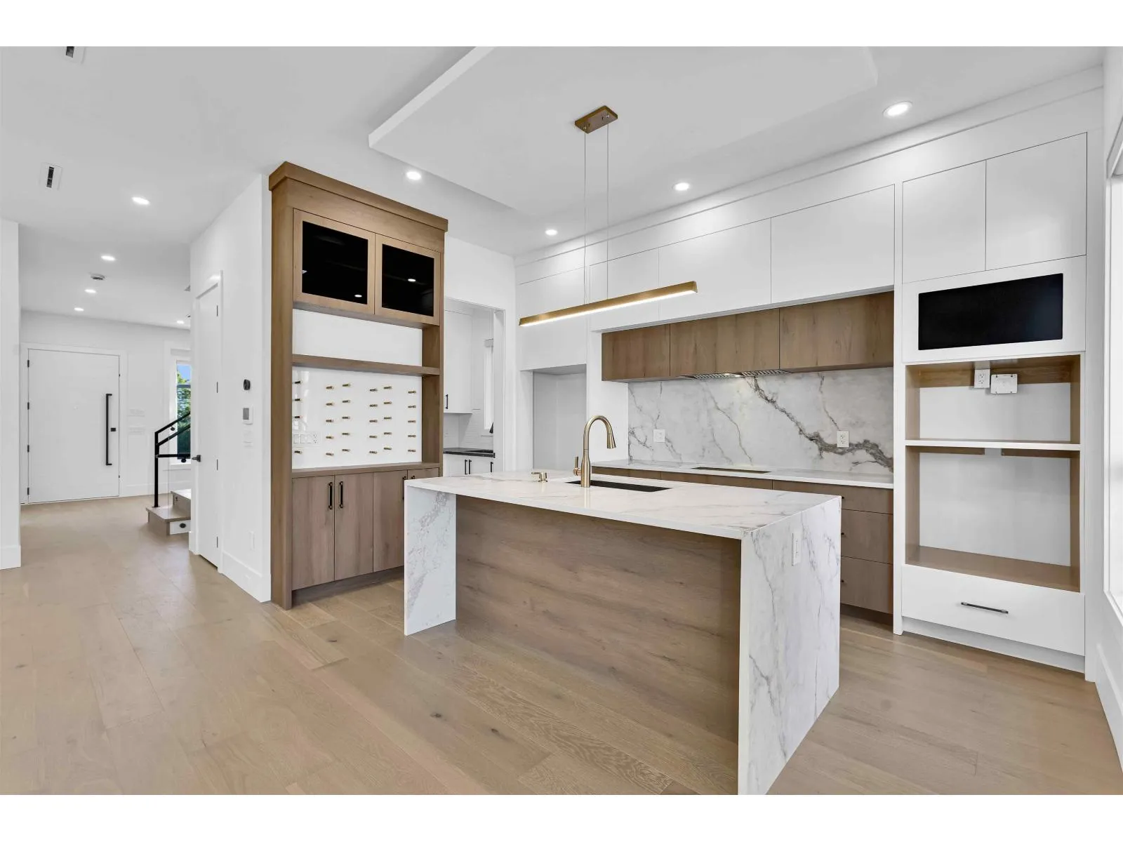 WOW!!Stunning South Surrey home with formal living room, den/office/bedroom & full bath on main, plus cozy family room, gourmet kitchen & bonus wok kitchen. Custom high end finishing throughout. Upstairs boasts 4 bedrooms & 3 baths, including a luxurious primary ensuite & million-dollar ocean views. High end Stainless Steel Appliances, Radiant(floor) Heating, A/C, HRV, Security Cameras & Built in Vacuum. Basement offers 2 bedroom & rec room with separate entrance perfect for in-law suite, plus media room & full bath with its own entrance. Bonus: detached 2-bedroom Coach home above garage with separate energy saving A/C & heat pump for extra mortgage help. Steps to top schools, Recreation Centre, parks, shopping, US border & White Rock Beach!!! Endless Possibilities. Don't miss it. (id:27476)