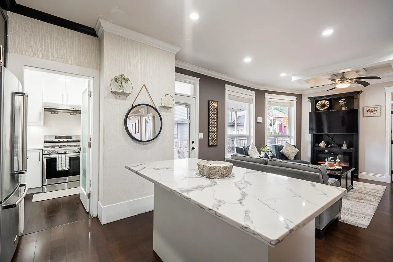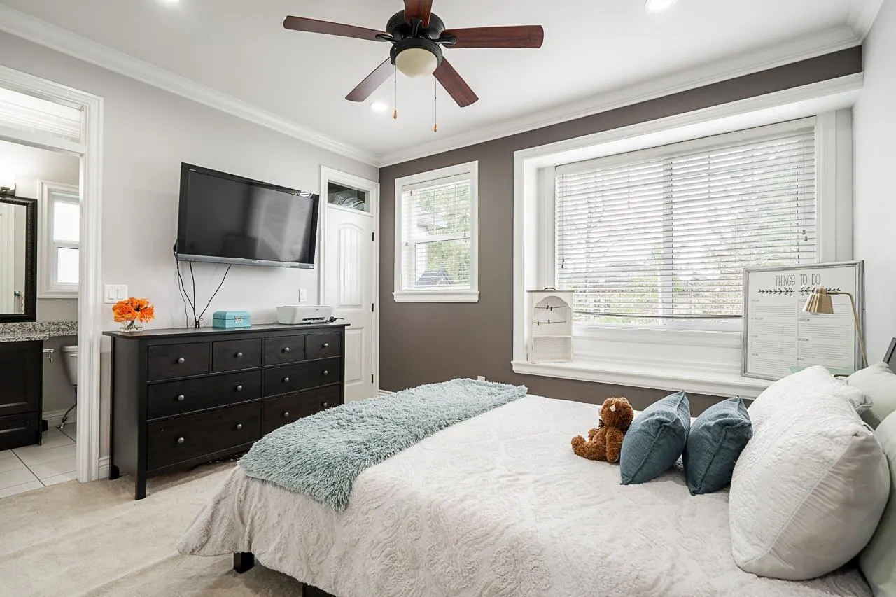 Beautifully maintained family home nestles in a quiet cul-de-sac of Panorama Ridge. Designed for modern living, this spacious residence features an open-concept main floor with a bright living area, 2 cozy fireplaces, and a chef-inspired kitchen + a full spice kitchen. The main floor has a flex room and can be used as a bedroom or office. Upstairs offers 4 generous bedrooms including a luxurious primary suite with a walk-in closet and elegant ensuite. The basement level provides a flexible 2 bed suite layout with an option to keep 1 room. Located close to parks, great schools, and everyday amenities, this home delivers the perfect blend of comfort, convenience, and charm. Custom storage cabinets in the garage. Pride of ownership shows throughout - move-in-ready and a must-see! (id:27476)