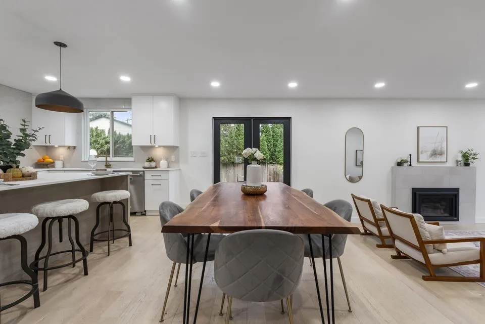 Beautifully refreshed 3BR 2.5BTH Bear Creek residence. Situated within a quiet, tree-lined neighbourhood, this 3 level split home sits atop a spacious 6000+ sqft corner lot. Large windows illuminate a refined, sunken living room surrounded by warm wood tones & chic gold accents that embody modern sophistication. The exquisite, gourmet kitchen will ignite your culinary passions w/ its sleek stainless steel appliances, ample storage & generous island ideal for casual meals or entertaining. Relax in sizable, tranquil bedrooms found alongside tastefully updated, hotel-inspired bathrooms. Fabulously located steps to Bear Creek Park & a few short blocks from schools, grocery stores, shopping & restaurants. Easily commute to neighbouring cities via nearby skytrain stations or several major routes (id:27476)