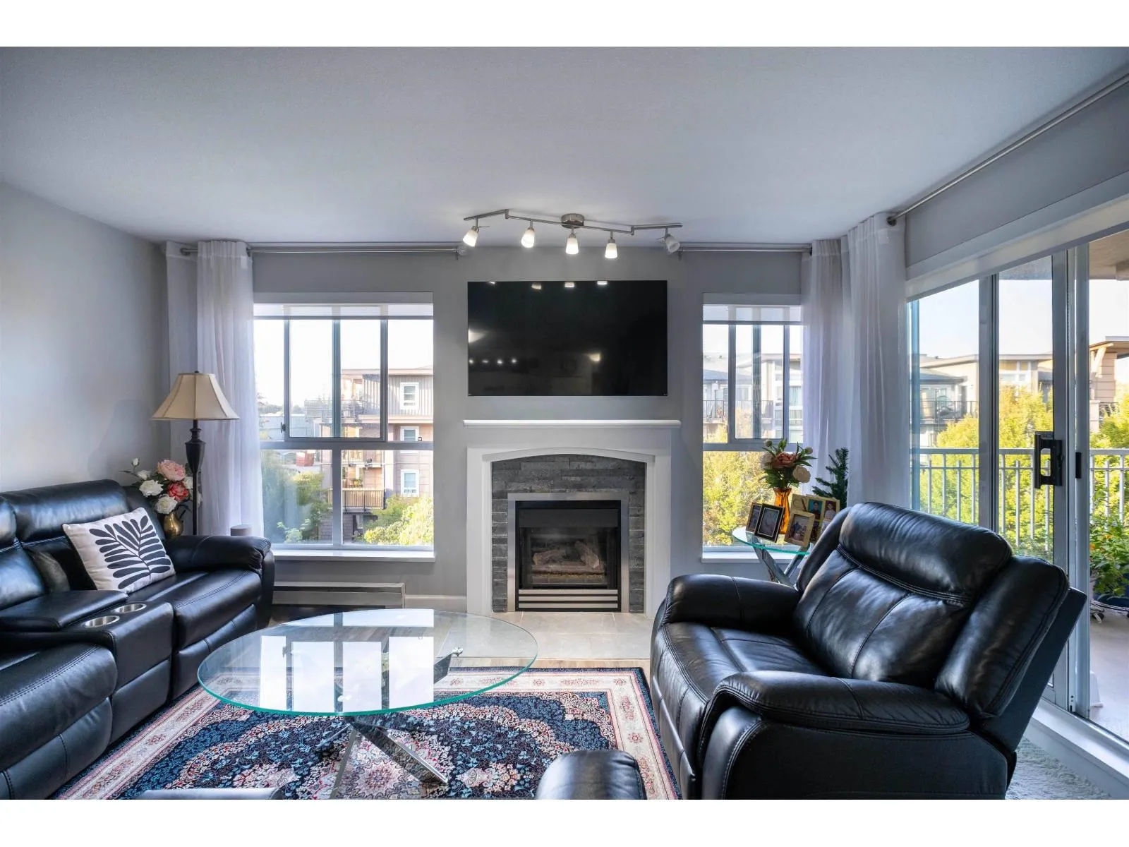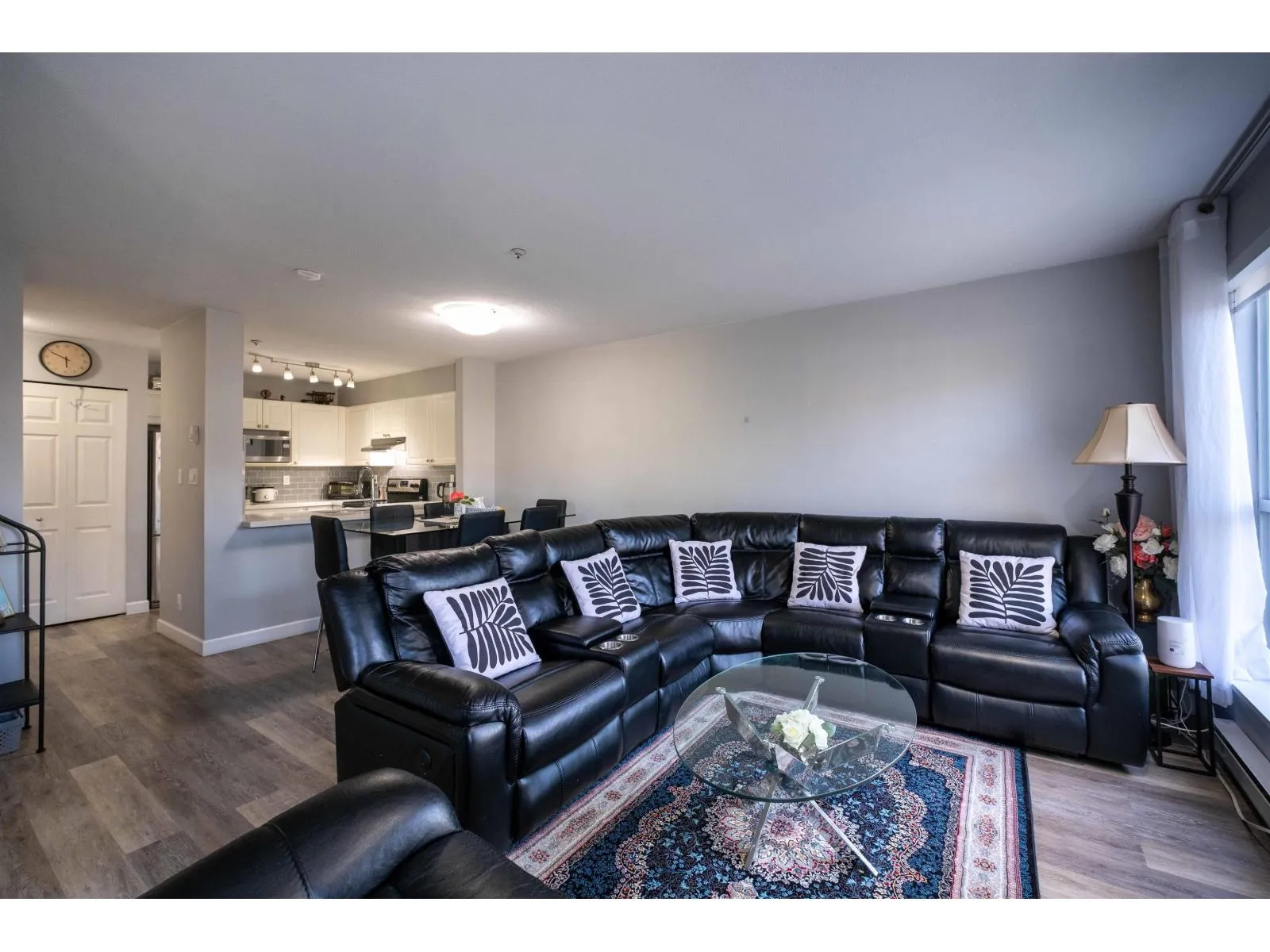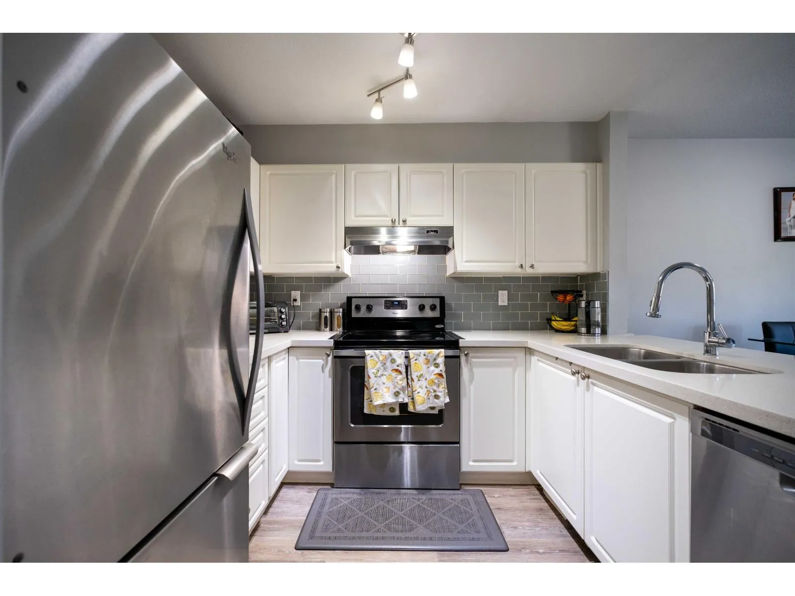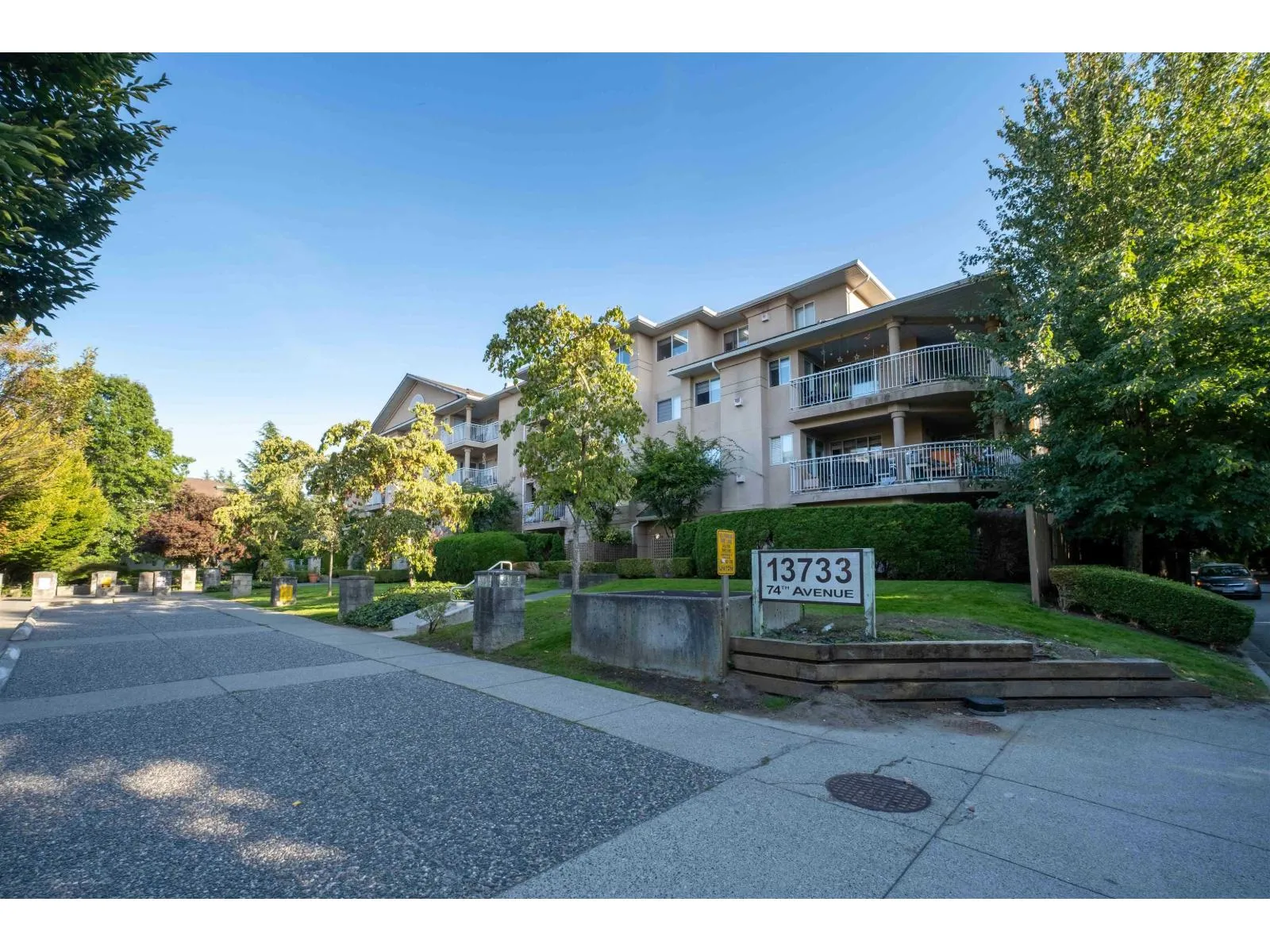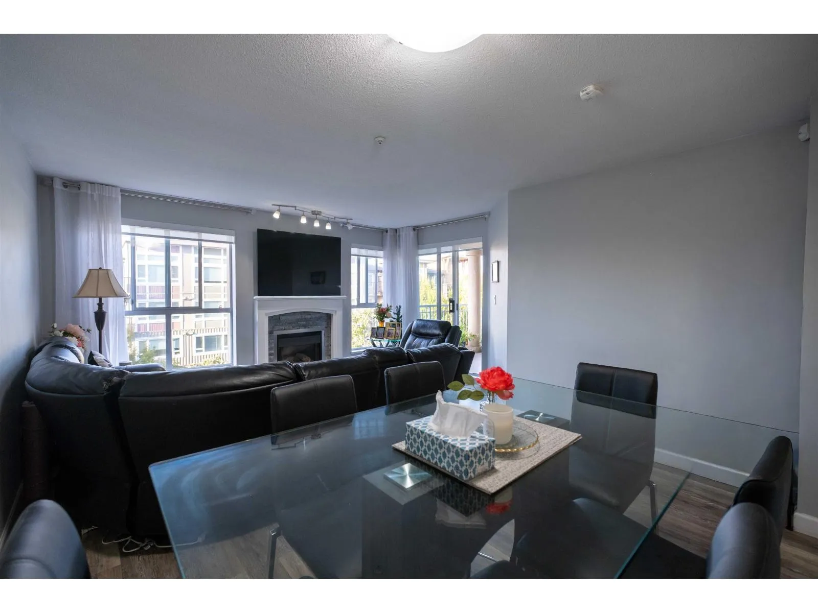 Completely updated 2 bed, 2 bath home with 2 parking! Centrally located and move-in ready, this spacious unit features a large open-concept kitchen with quartz counters, updated baths, cozy gas fireplace, and in-suite laundry. Enjoy an oversized 120 sq.ft. covered private deck with partial views, perfect year-round. Generous rooms fit full-sized furniture with ease. Upgrades include laminate floors, appliances, designer paint, and fireplace surround. Well-maintained complex offers a party room and modern gym, all with a low maintenance fee. Walking distance to Newton Bus Exchange, transit, shops, restaurants, and entertainment! Open House Nov 1 & 2 from 1:00 to 3:00 (id:27476)