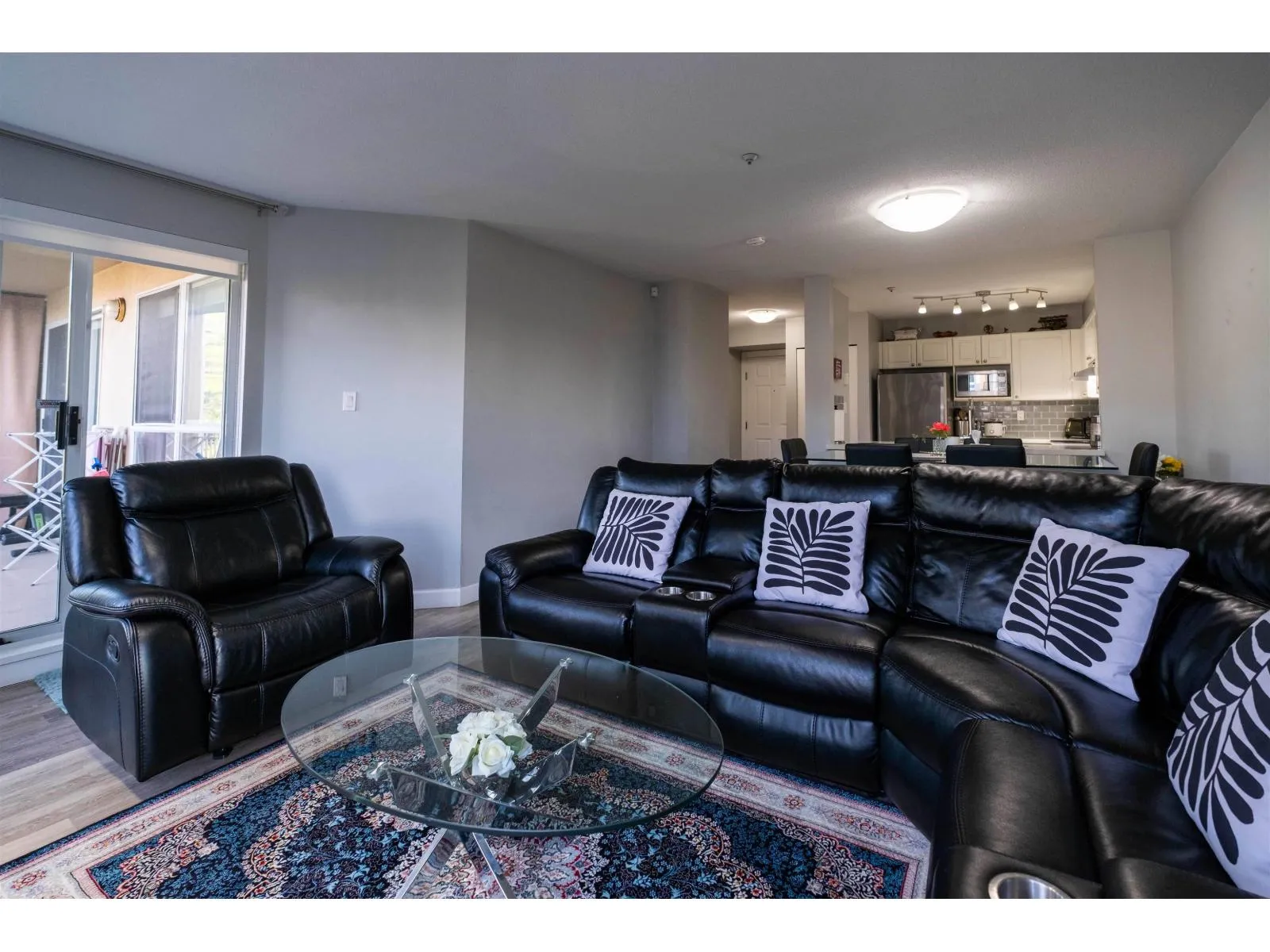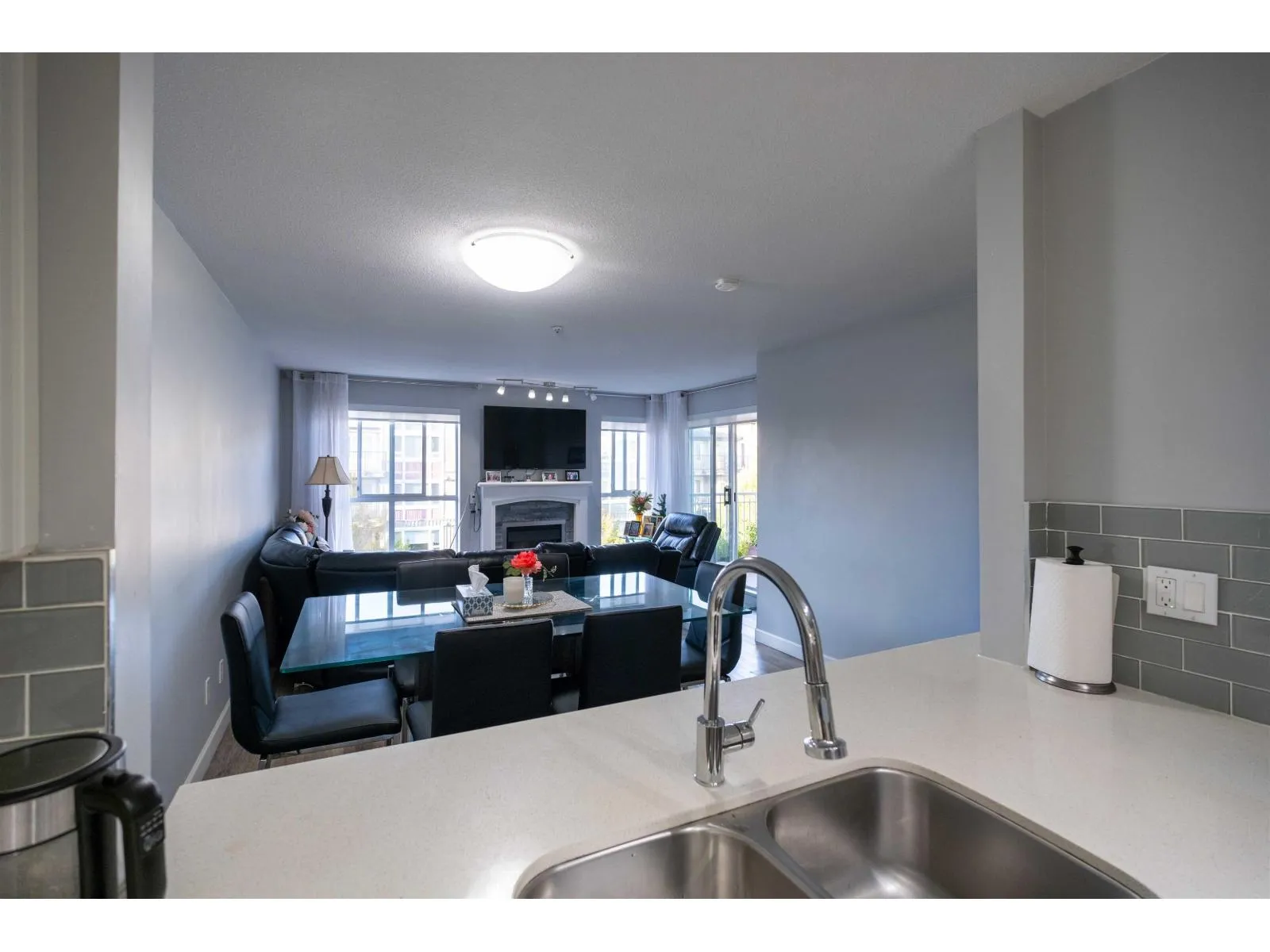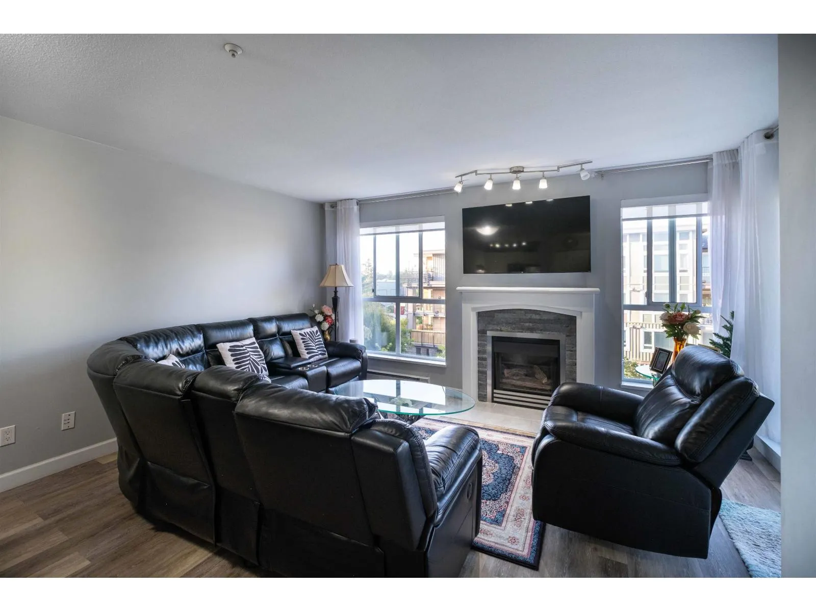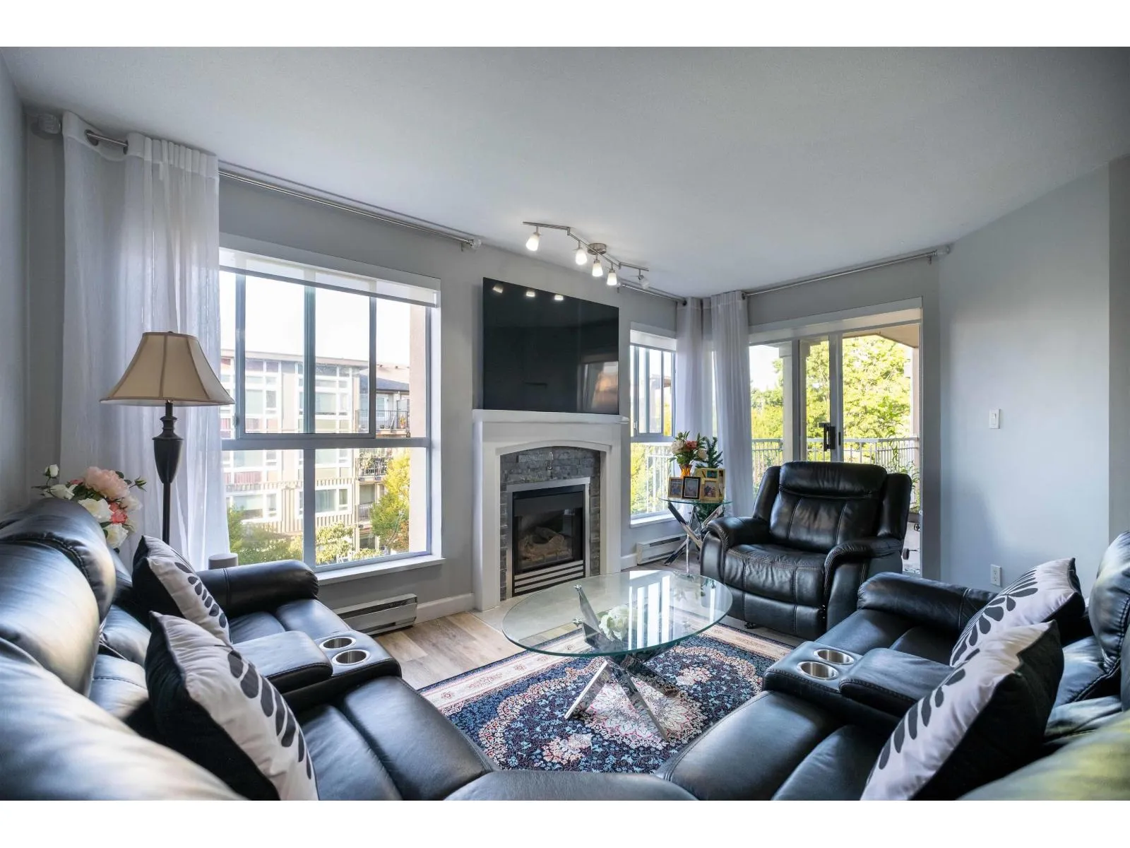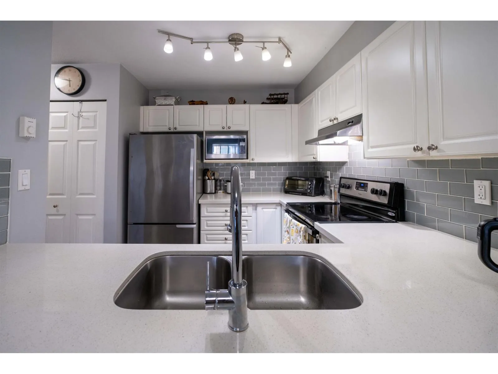 Completely updated 2 bed, 2 bath home with 2 parking! Centrally located and move-in ready, this spacious unit features a large open-concept kitchen with quartz counters, updated baths, cozy gas fireplace, and in-suite laundry. Enjoy an oversized 120 sq.ft. covered private deck with partial views, perfect year-round. Generous rooms fit full-sized furniture with ease. Upgrades include laminate floors, appliances, designer paint, and fireplace surround. Well-maintained complex offers a party room and modern gym, all with a low maintenance fee. Walking distance to Newton Bus Exchange, transit, shops, restaurants, and entertainment! Open House Nov 1 & 2 from 1:00 to 3:00 (id:27476)