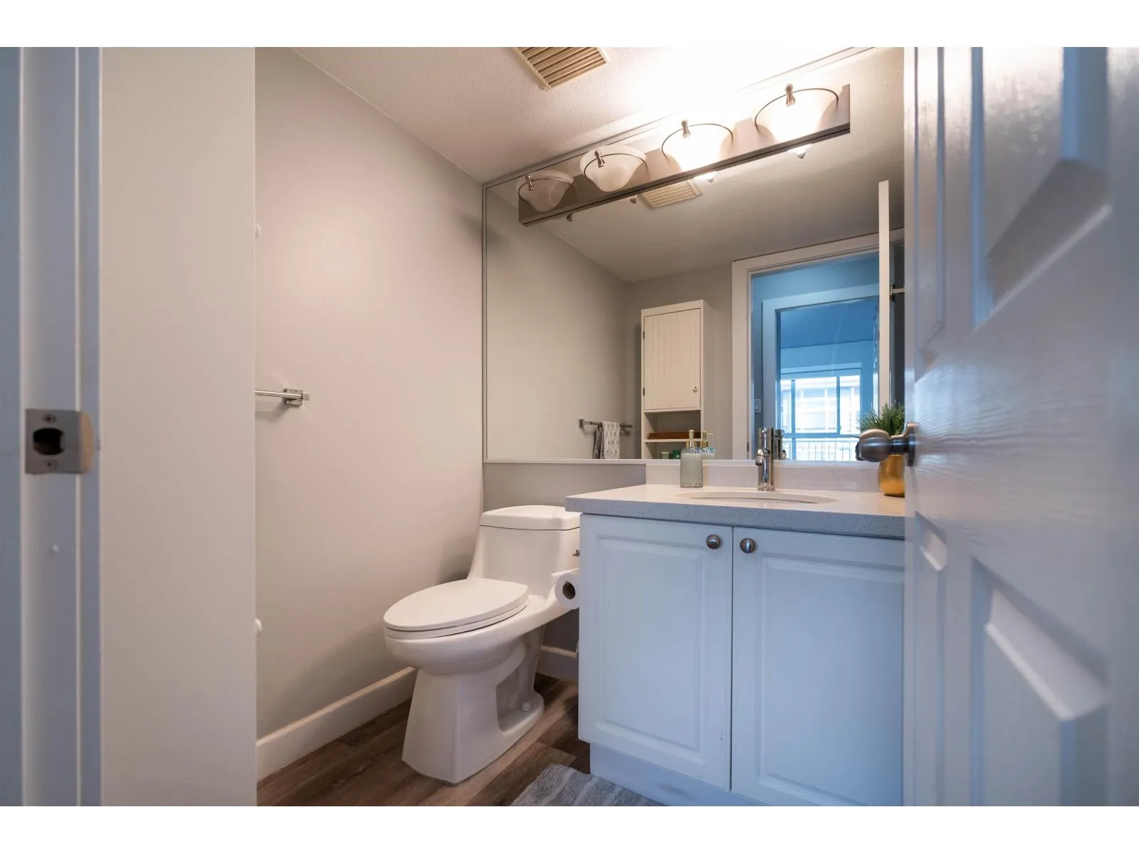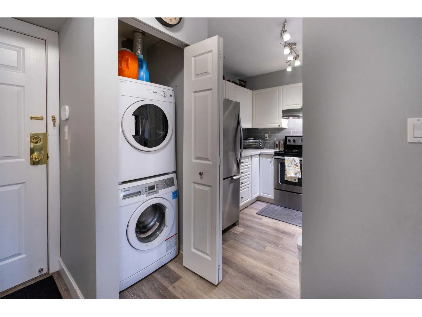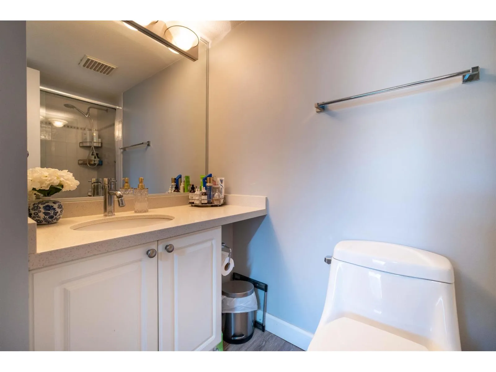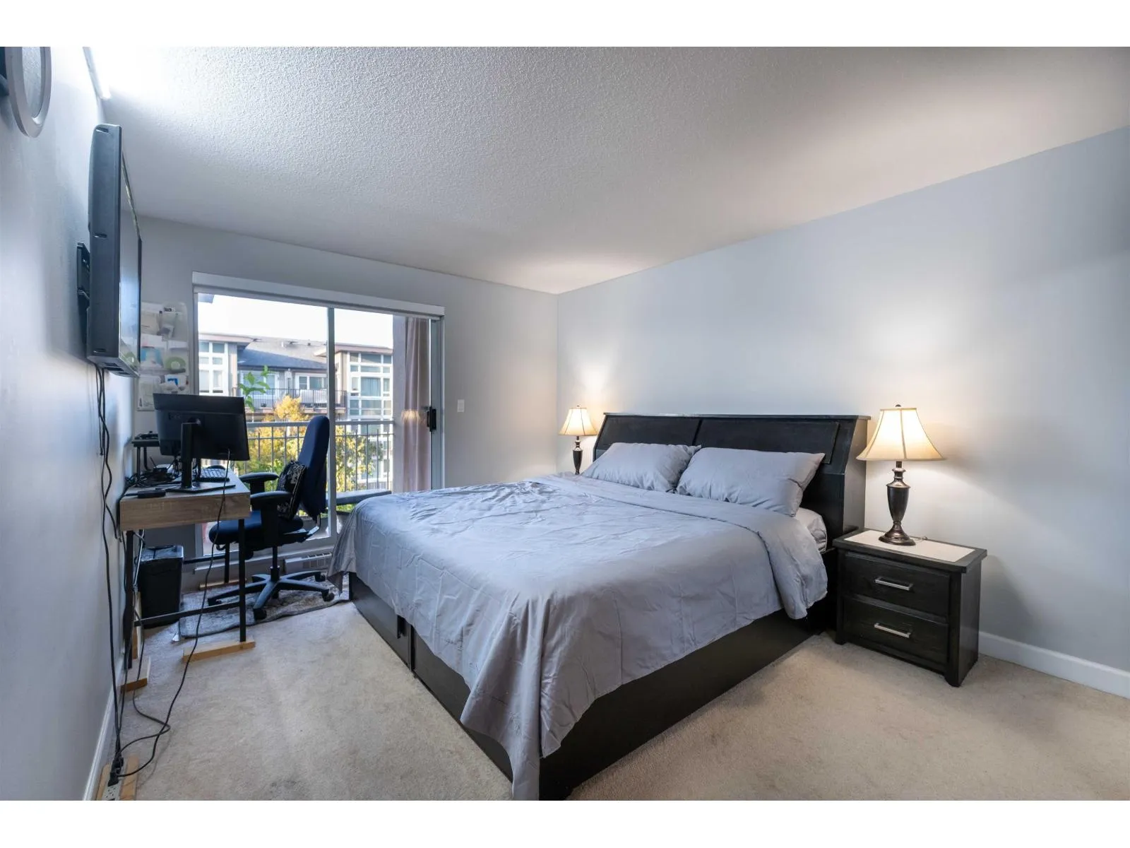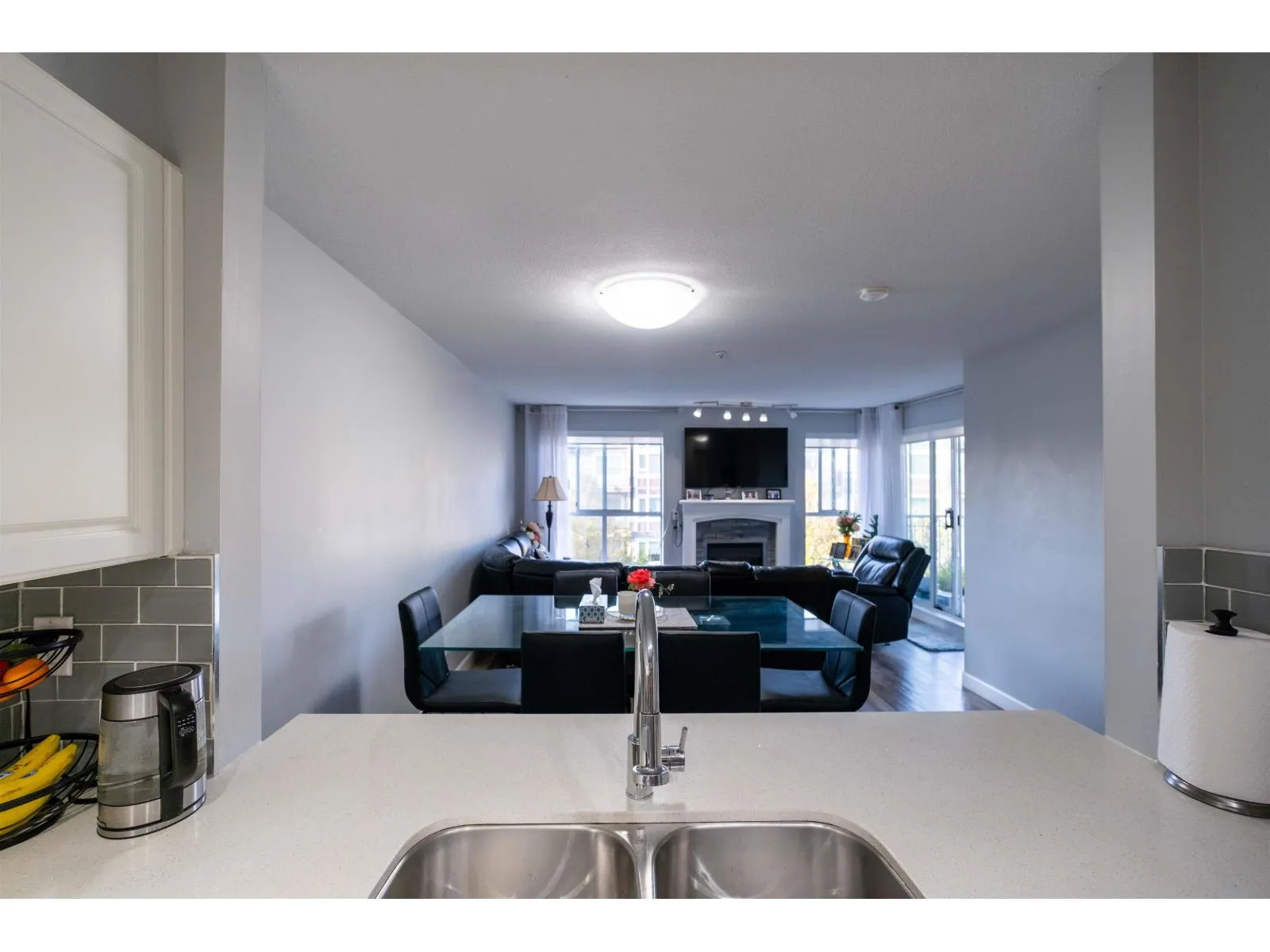 Completely updated 2 bed, 2 bath home with 2 parking! Centrally located and move-in ready, this spacious unit features a large open-concept kitchen with quartz counters, updated baths, cozy gas fireplace, and in-suite laundry. Enjoy an oversized 120 sq.ft. covered private deck with partial views, perfect year-round. Generous rooms fit full-sized furniture with ease. Upgrades include laminate floors, appliances, designer paint, and fireplace surround. Well-maintained complex offers a party room and modern gym, all with a low maintenance fee. Walking distance to Newton Bus Exchange, transit, shops, restaurants, and entertainment! Open House Nov 1 & 2 from 1:00 to 3:00 (id:27476)