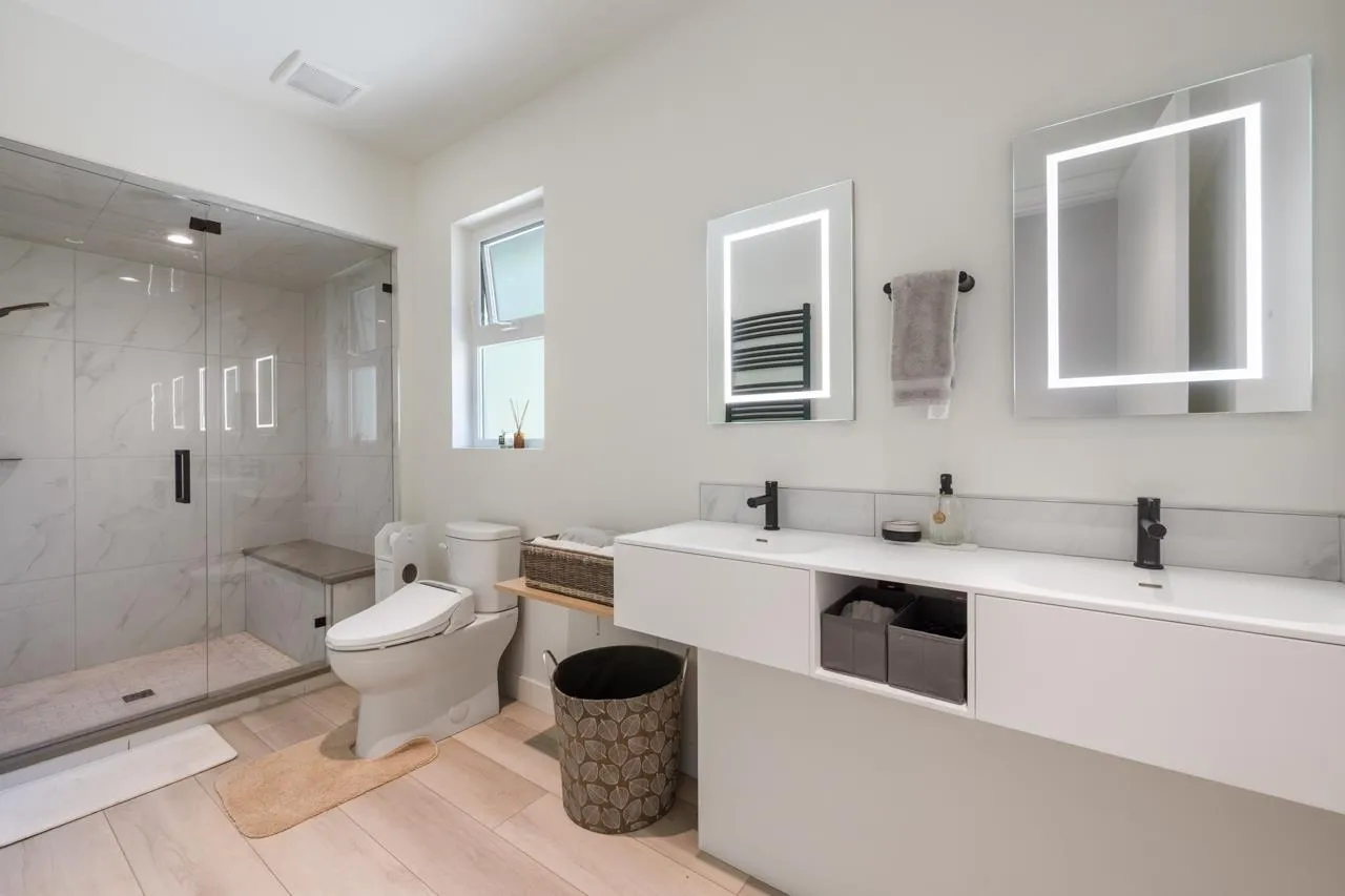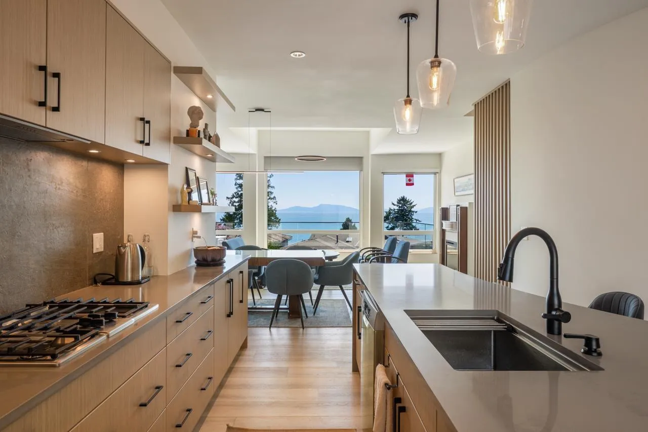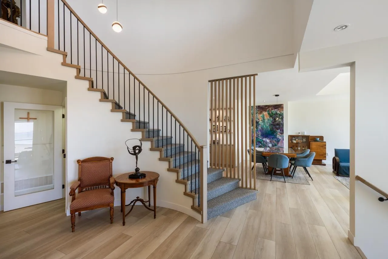 The 4,305 SF home features a Zen-inspired aesthetic blending natural materials, soft tones, minimalist lines, offering a tranquil sanctuary that balances wellness, mindfulness & modern functionality. Main Level: 1,747 SF vaulted ceiling in living rm w/ ocean view, excellent natural light & balcony. A spacious formal dining area between the living rm & open kitchen. Open concept chef's kitchen: ample storage + fully ventilated wok kitchen. Ocean view primary bedroom suite on main, ocean view den - music rm fits a grand piano & balcony. 1,132 SF Above: 3 bedrooms w/ ocean views & 2 balconies. Steam Shower& Towel warmers Below: walk-out bsmt 1426 SF w/ 5th bdrm. 2 full laundry. Quiet cul-de-Sac. Full interior re-design, renovation by Hyer Homes in 2020: new roof, updated electrical-plumbing-gas lines, ect. A Feng Shui Master has certified home design. (id:27476)