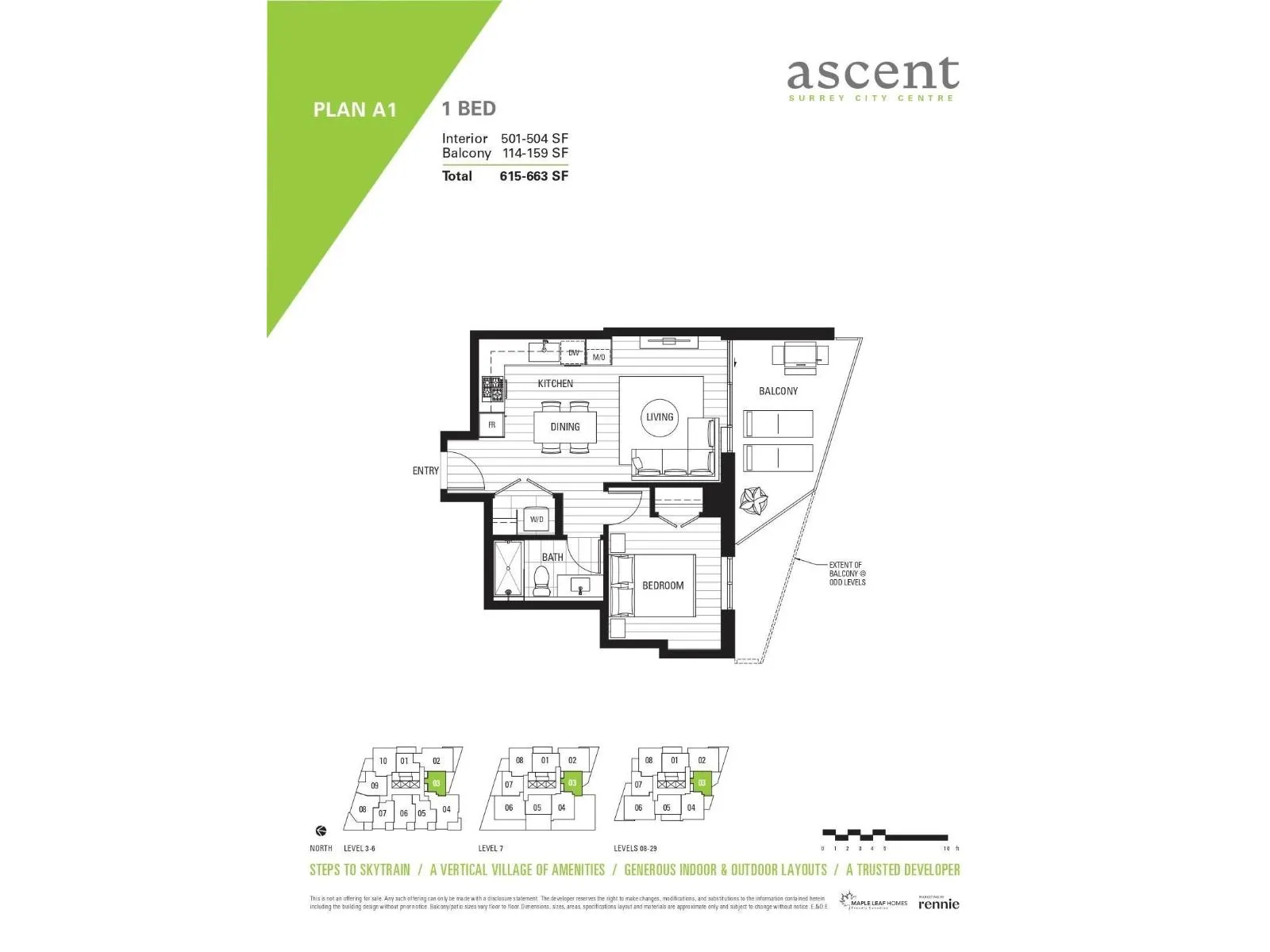 Your Chance to Own a Brand New Home in the Ascent Building at Surrey City Centre! This is your opportunity to own a stunning one-bedroom home in the highly sought-after Ascent building at Surrey City Centre! This home features a spacious 504 sq/ft interior, complemented by a large 159 sq/ft balcony offering beautiful views. Inside, you'll find modern finishes throughout, including air-conditioning for year-round comfort, stone countertops, and wide plank laminate flooring. The gourmet kitchen is equipped with premium Fulgor Milano appliances, perfect for cooking and entertaining. Located just steps from Surrey Central SkyTrain Station, this home offers the ultimate in convenience with easy access to shopping, restaurants, schools, and more. (id:27476)
