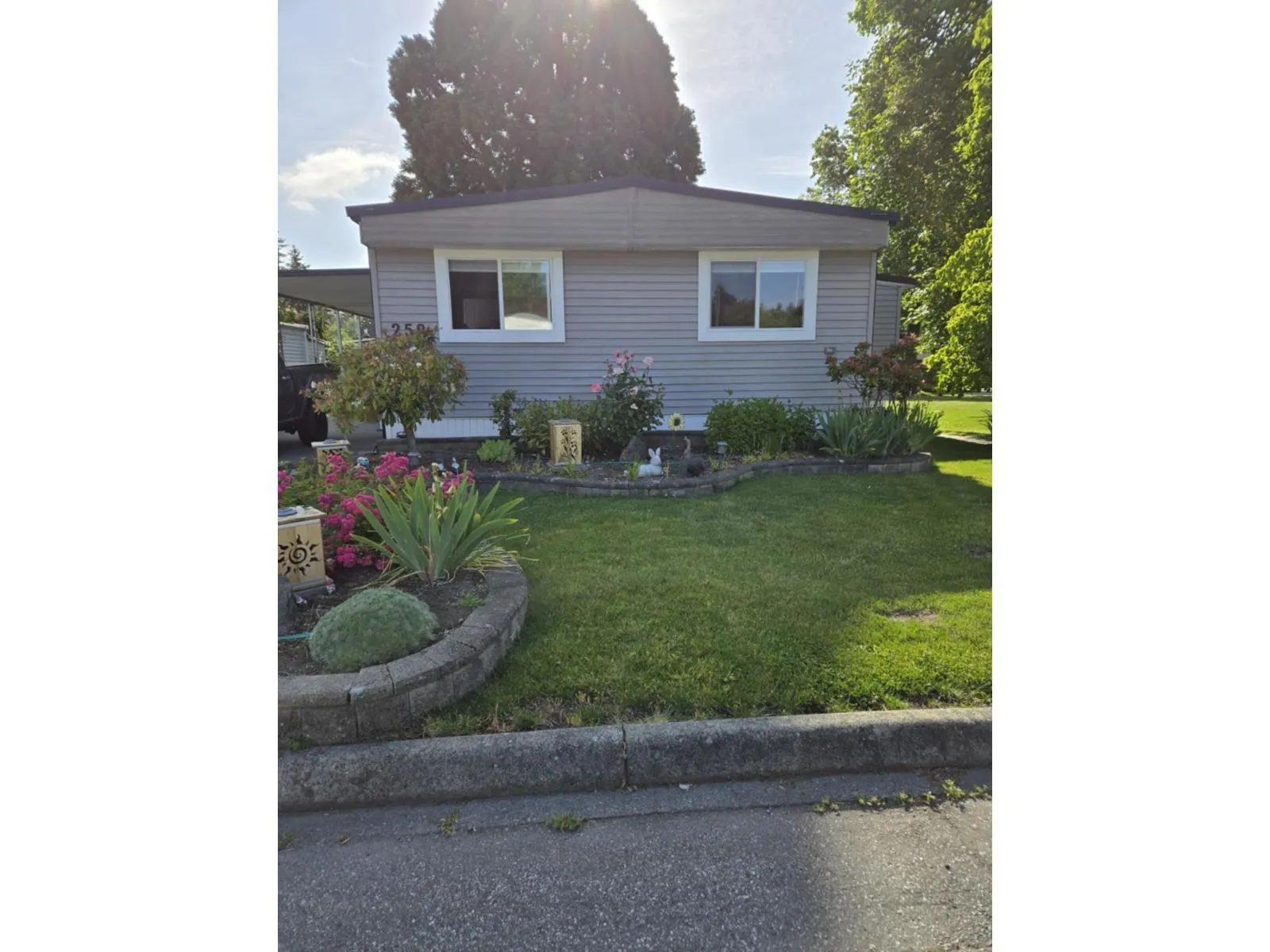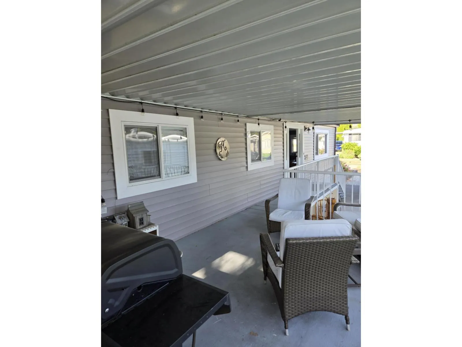 This double-wide manufactured home has 3 good-sized bedrooms plus 2 FULL bathrooms. Extensive renovations from original including: drywall; both bathrooms; windows; large open-plan kitchen with island overlooking the living room. This home has no neighbour to the (sunny) South side, where there's a nice patio overlooking a grass field (you can watch the world go by!). There's also a laundry/mud room to keep those muddy shoes out of the house. North side features a large covered deck (perfect for year-round entertaining), grassy area for the kids to play, covered carport and open driveway. Loads of underdeck storage space, plus the storage shed has power (perfect for pottering around with projects). Breakaway Bays features a clubhouse, outdoor pool, RV parking (check waitlist with management), and a location close to everything - plus there's a bus stop at the Park entrance! Two pets allowed, combination of cats and/or dogs (not to exceed 17 inches shoulder to paw, 35 lbs) (id:27476)