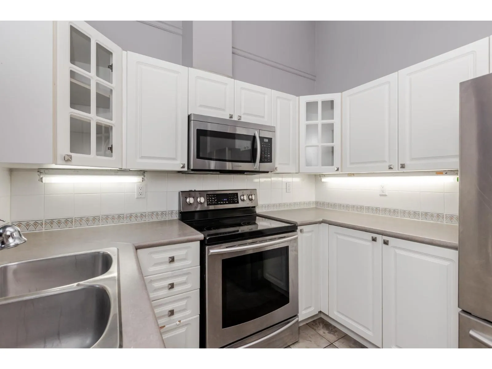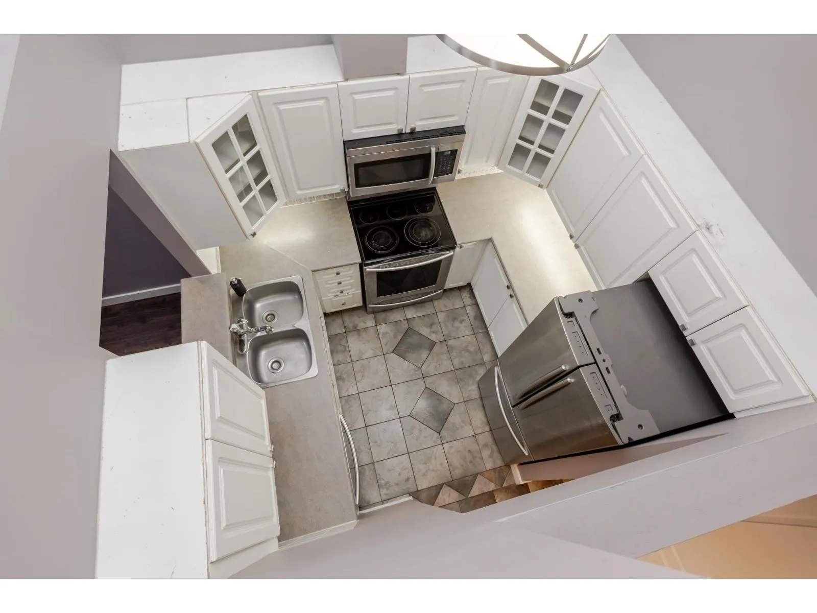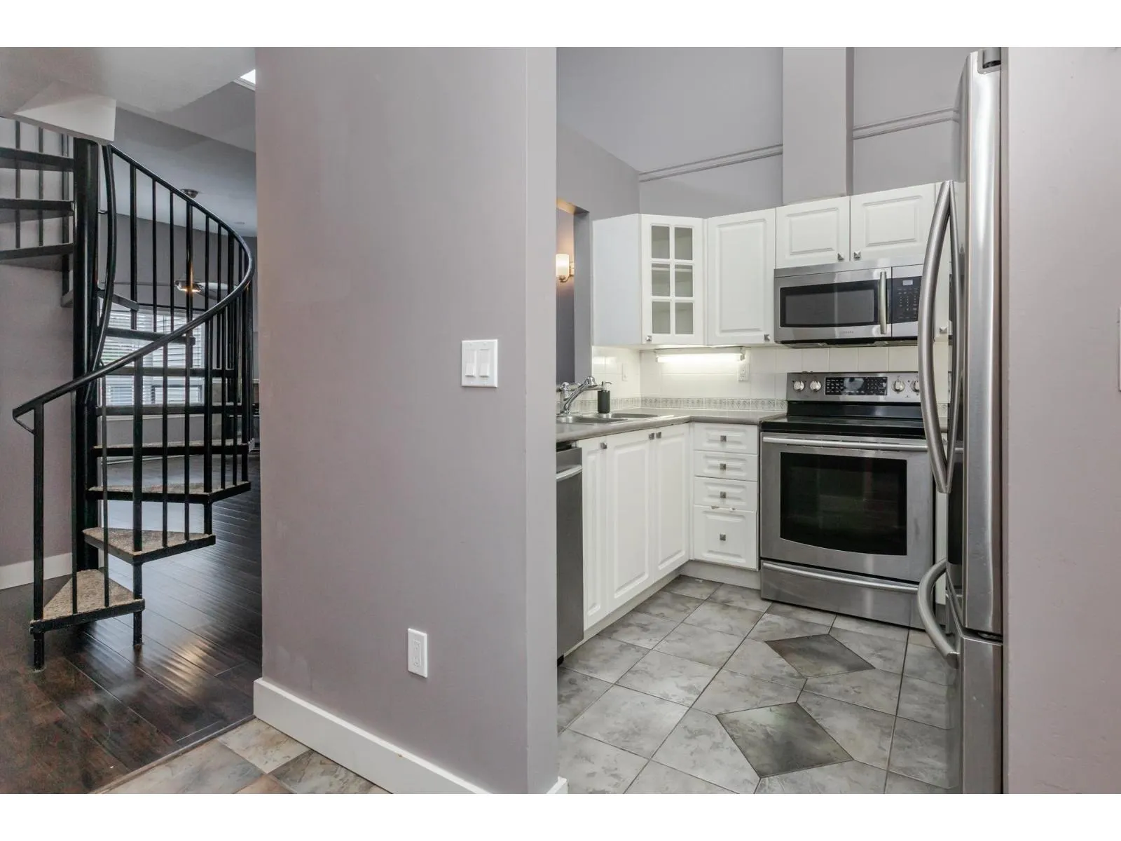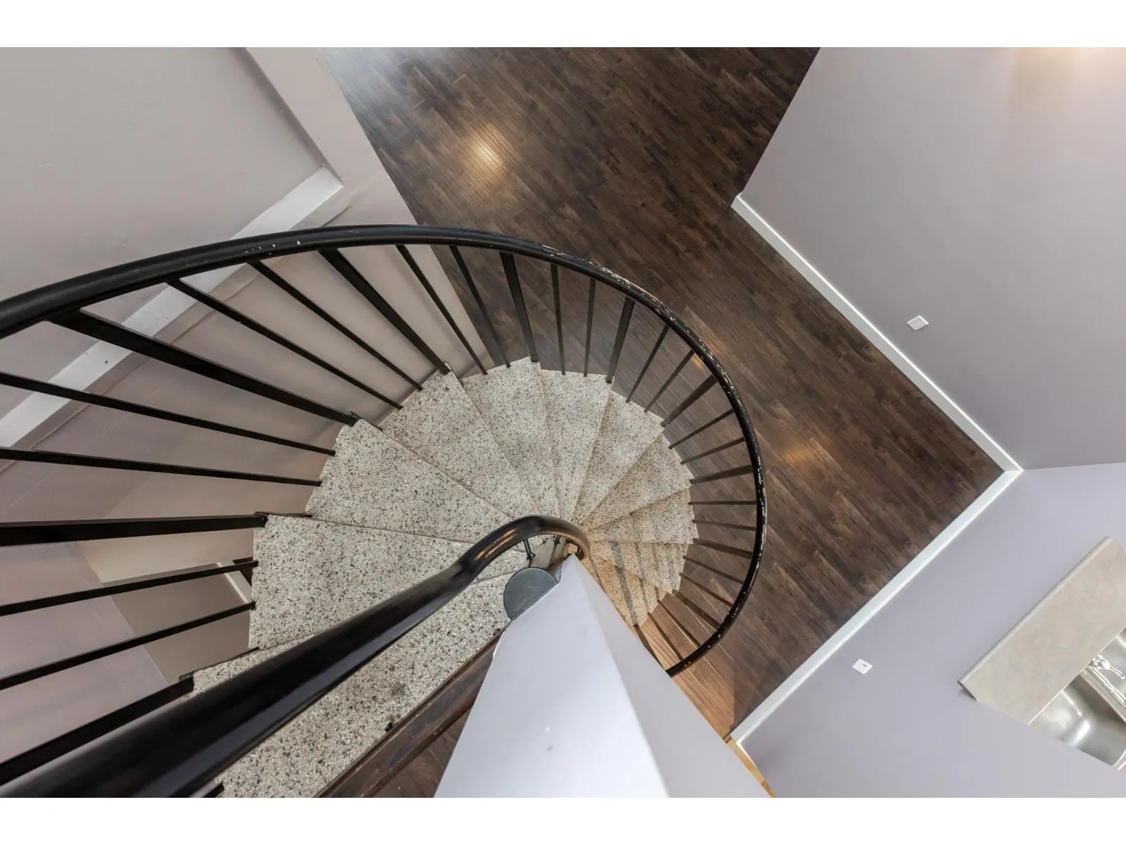 Great opportunity, this large over 1100 sqft unique unit has 2 floors, and 2 bedroom plus loft, that could be 3rd bedroom. This top floor, Penthouse is bright with high ceilings in entrance, kitchen, living and dining room. With new floors, designer paint, stainless steel appliances. Unique spiral staircase takes you upstairs to the loft area. This large area is great for any thing you may need, could be an office, entertainment area, media room, toy room, or even a very large bedroom. Two parking spots side by side with a great location, close to parking entrance. One storage locker. Lots of closets, and in-suite storage. This home is a perfectly located, quiet but very Central location, close to Guildford, from Hwy 1, Skytrain, all school levels. Do not miss this beauty. (id:27476)
